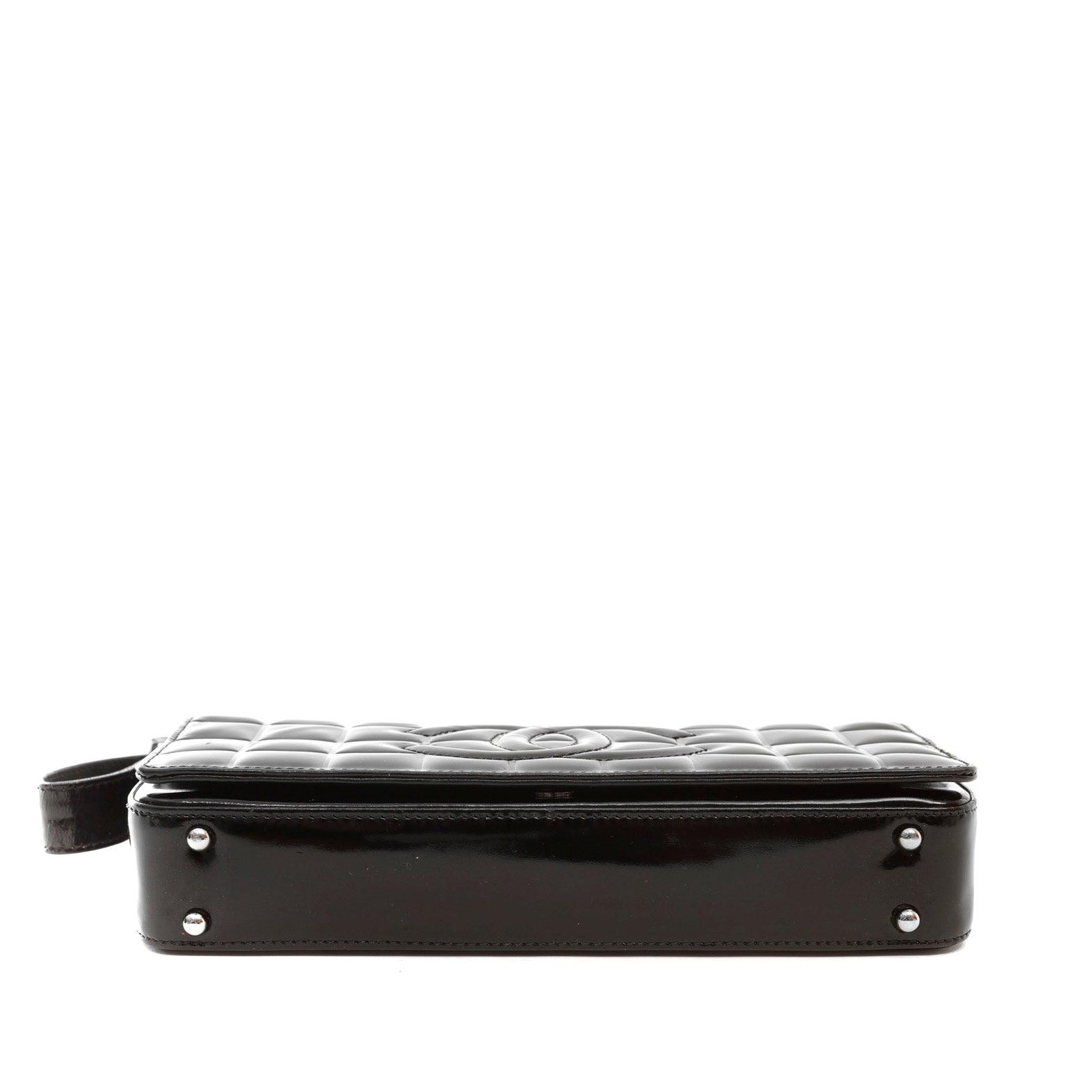 Chanel Black Patent Leather Chocolate Bar Quilted CC Shoulder Bag