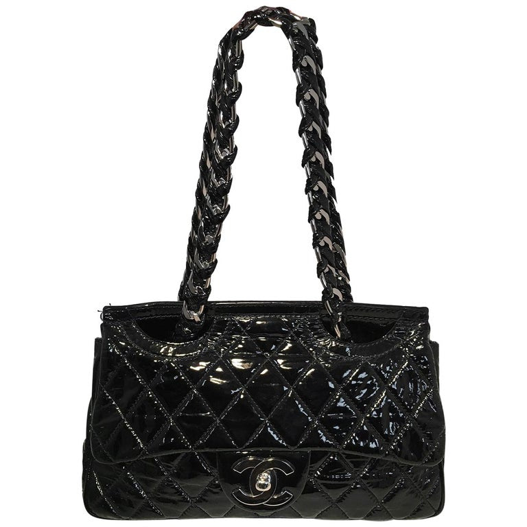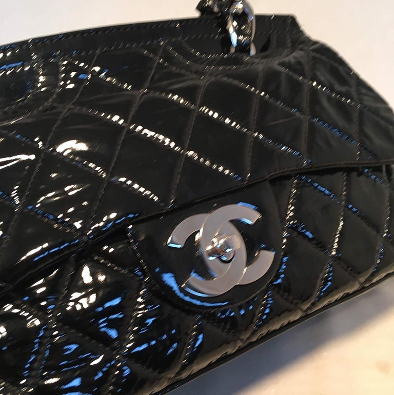 Chanel Black Patent Leather 2 way Classic Flap Shoulder Bag