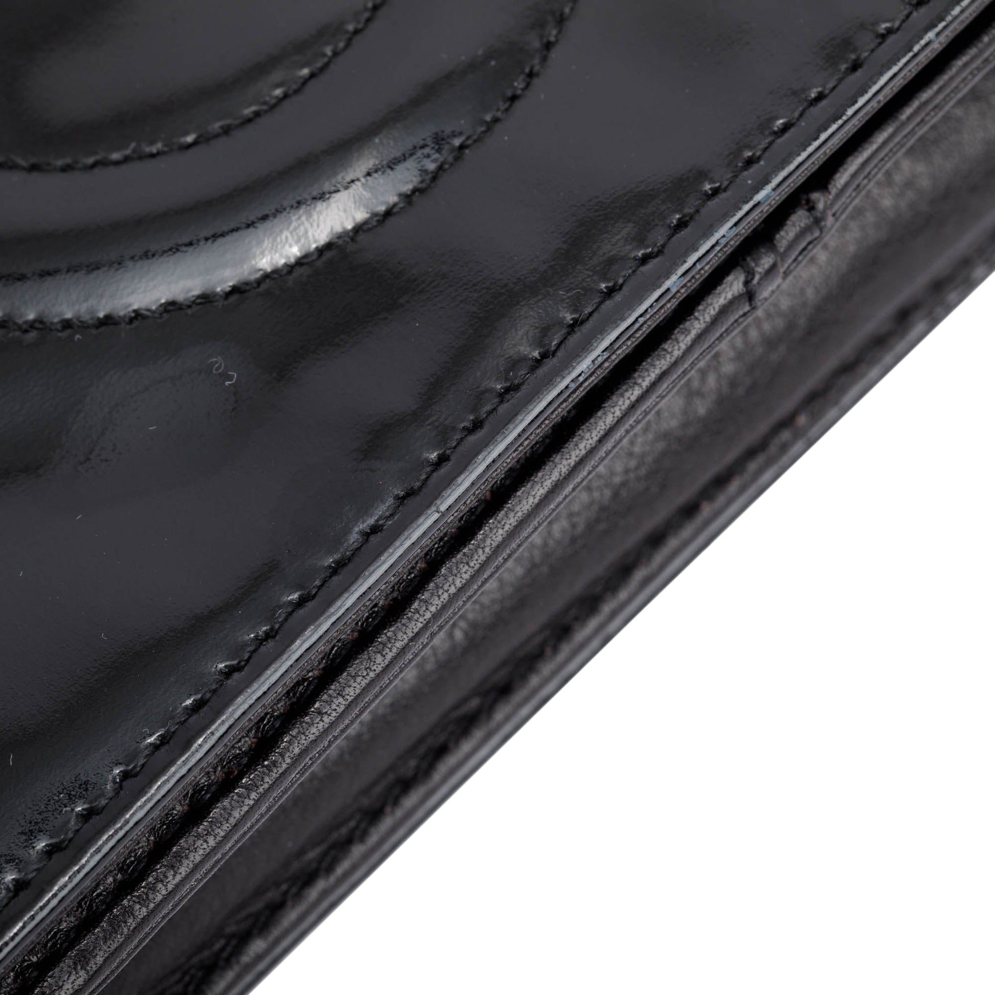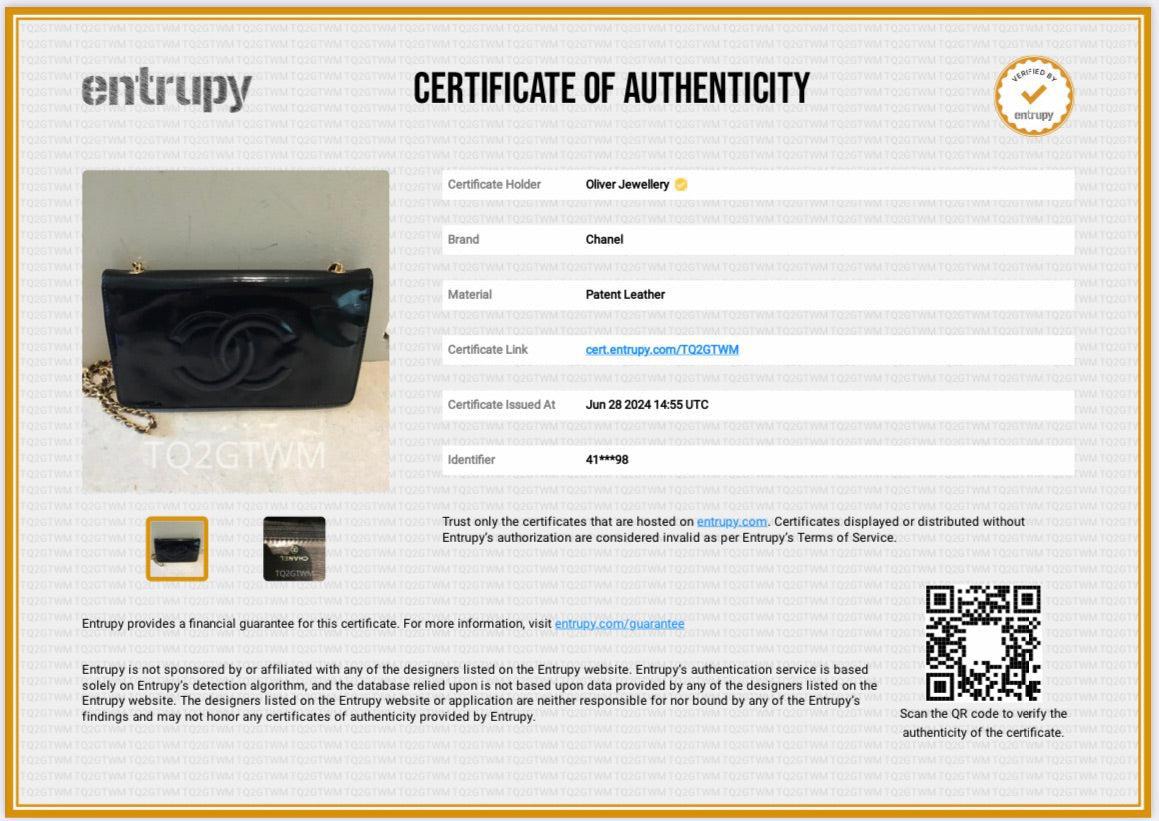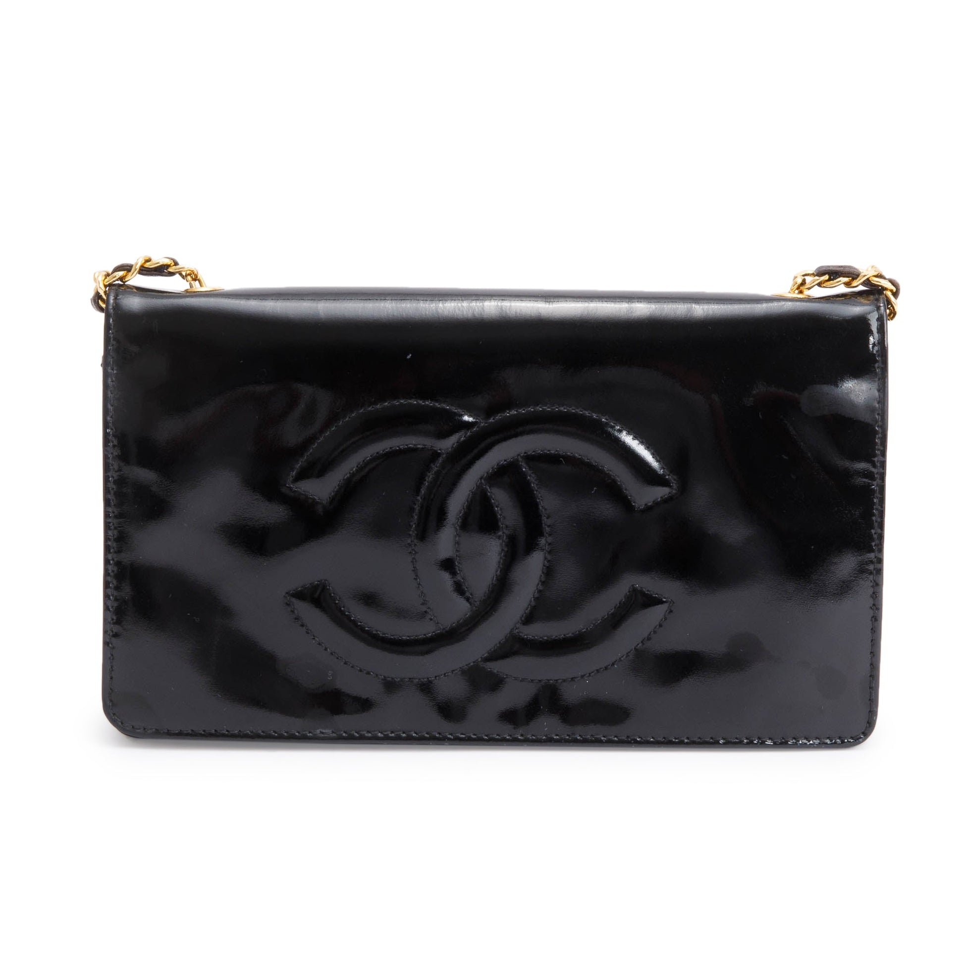 Chanel Vintage Black Patent Leather Timeless Wallet on Chain w/ Authenticity Card