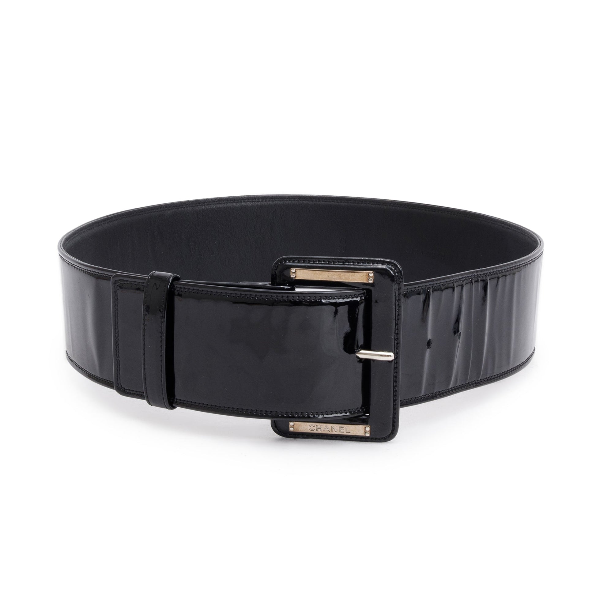 Chanel Black Patent Leather Wide Buckle Belt 75 30