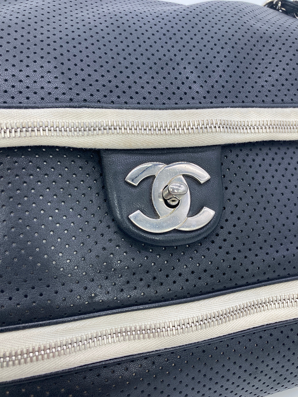 Chanel Black Perforated Leather Expandable Classic Flap Shoulder Bag