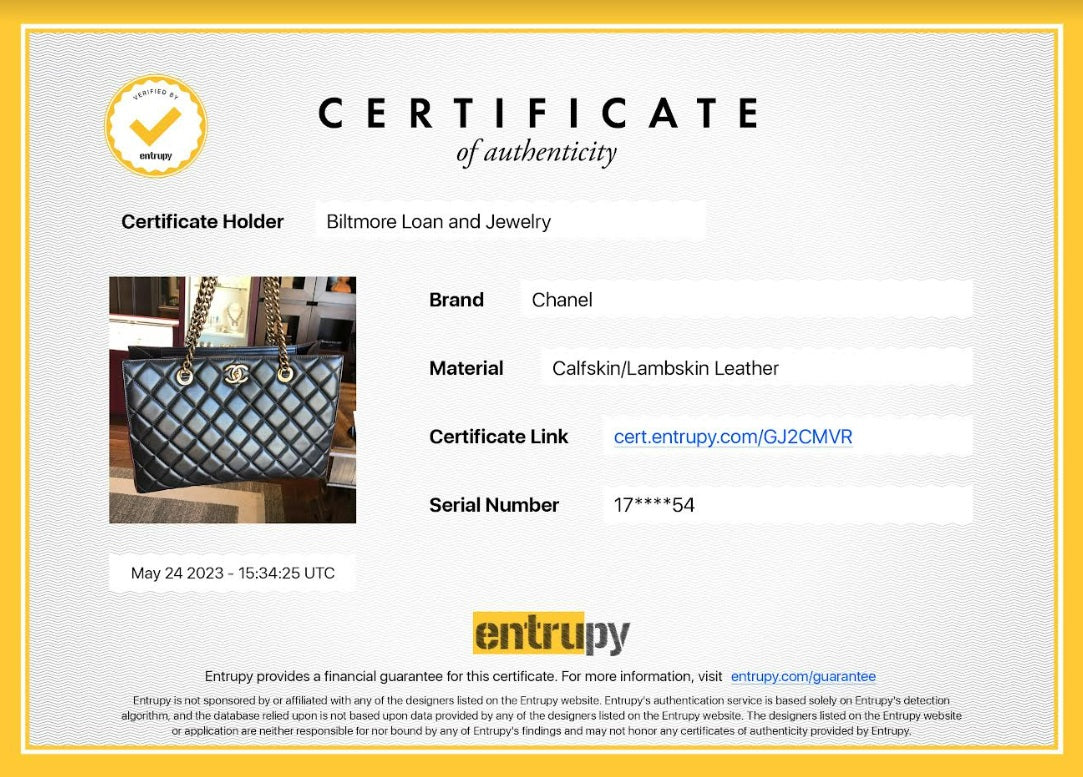 Includes: Entrupy COA