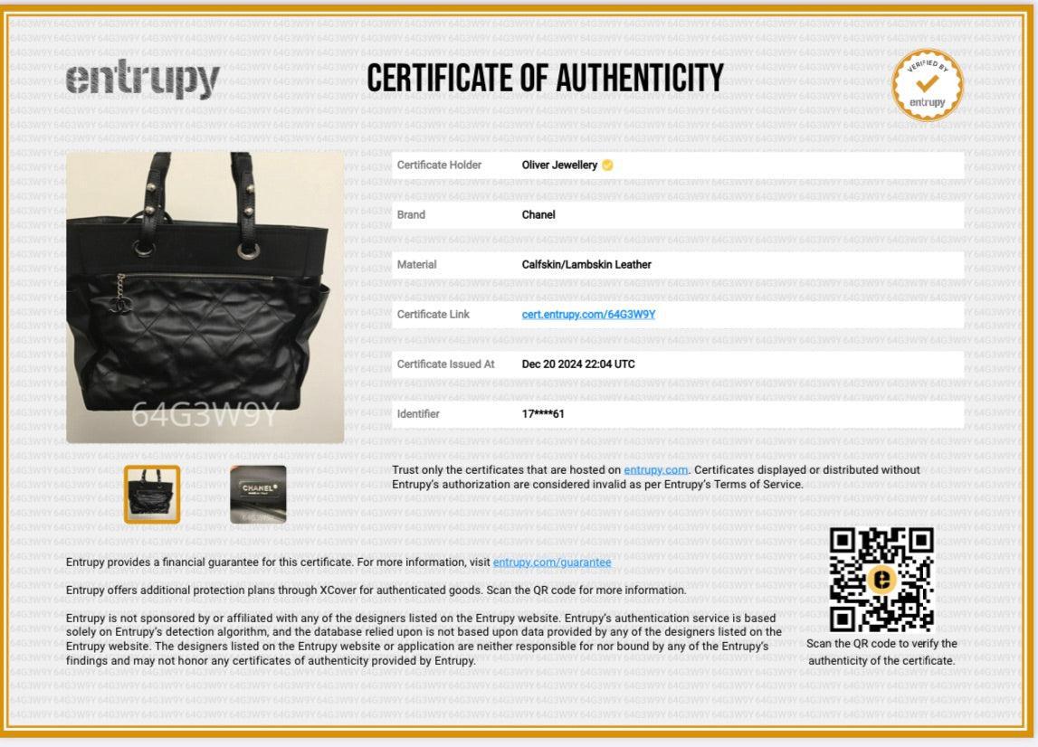 Chanel Black Quilted Coated Canvas Large Paris Biarritz Tote w/ Pouch & Authenticity Card