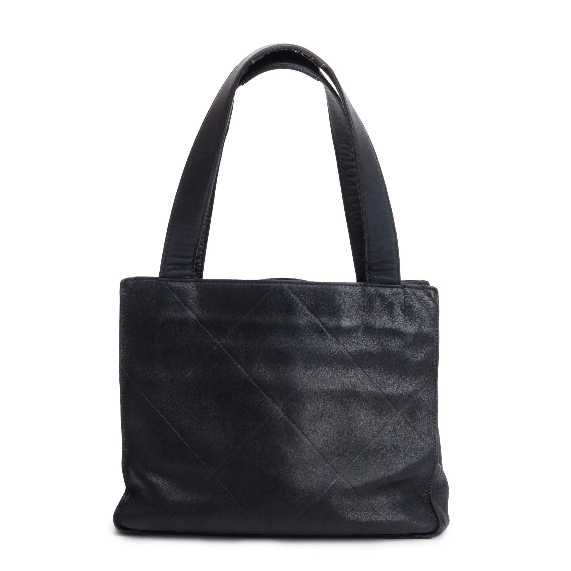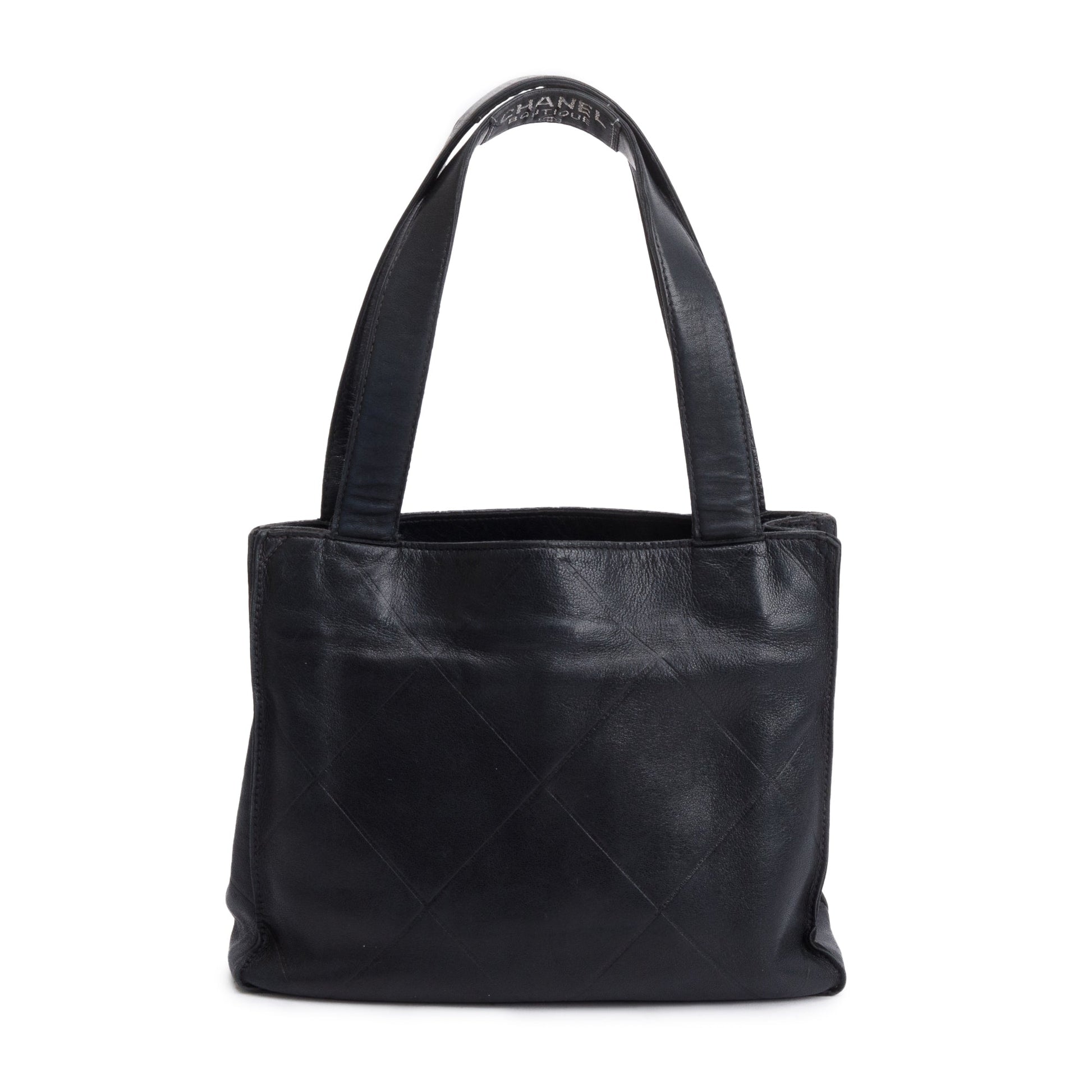 Chanel Vintage Black Quilted Lambskin Leather Tag Mini Tote Bag