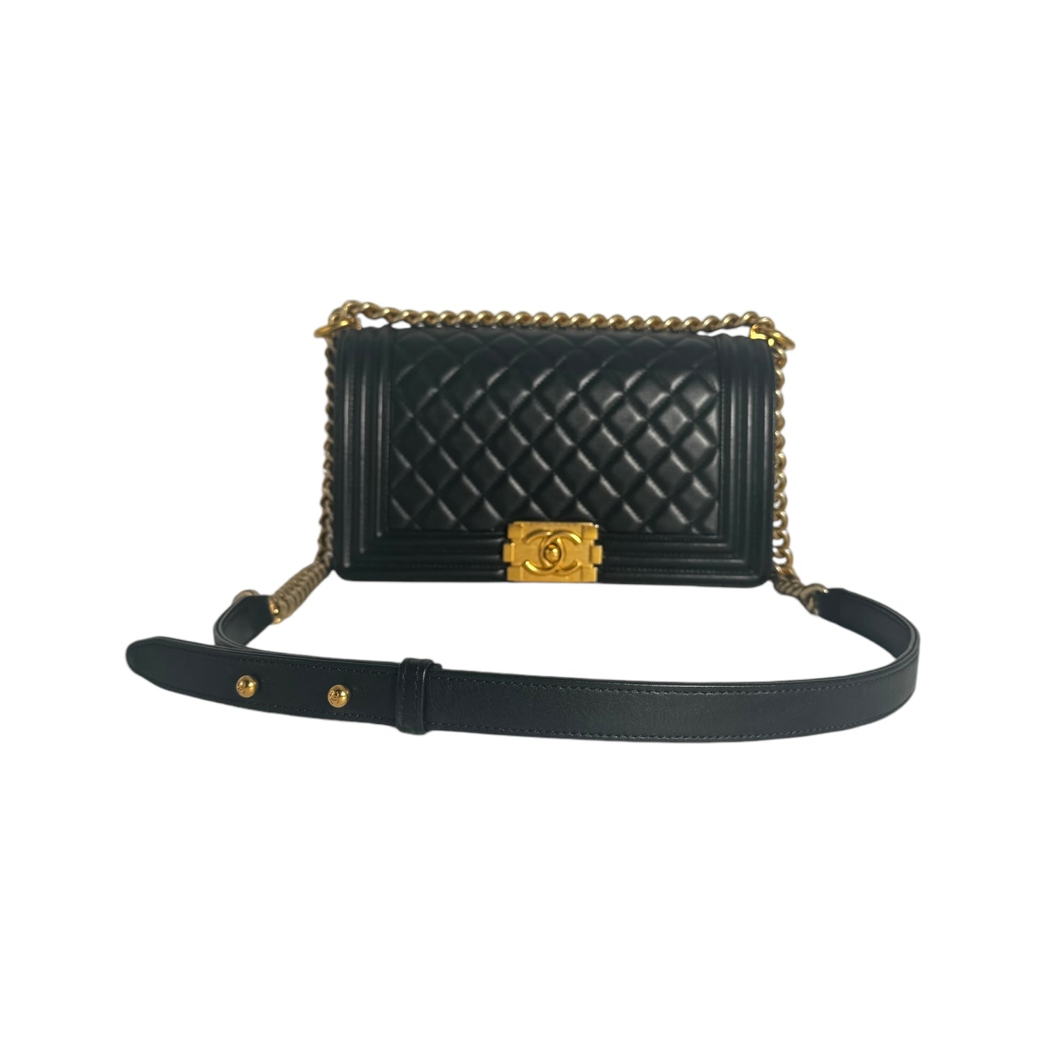 Chanel Black Quilted Lambskin Medium Boy Bag