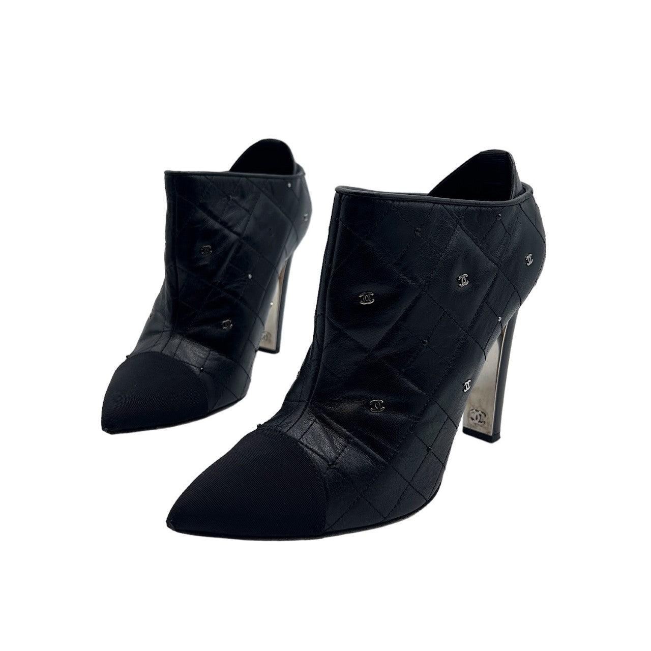 CHANEL Black Quilted Leather Pointed Toe Ankle Boots - Sz 39.5