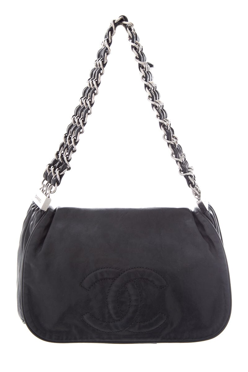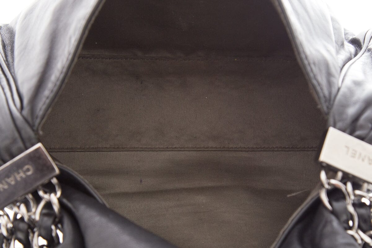 Chanel Black Rock and Chain Shoulder Bag. This item is gently loved; tear in leather on bottom corner.