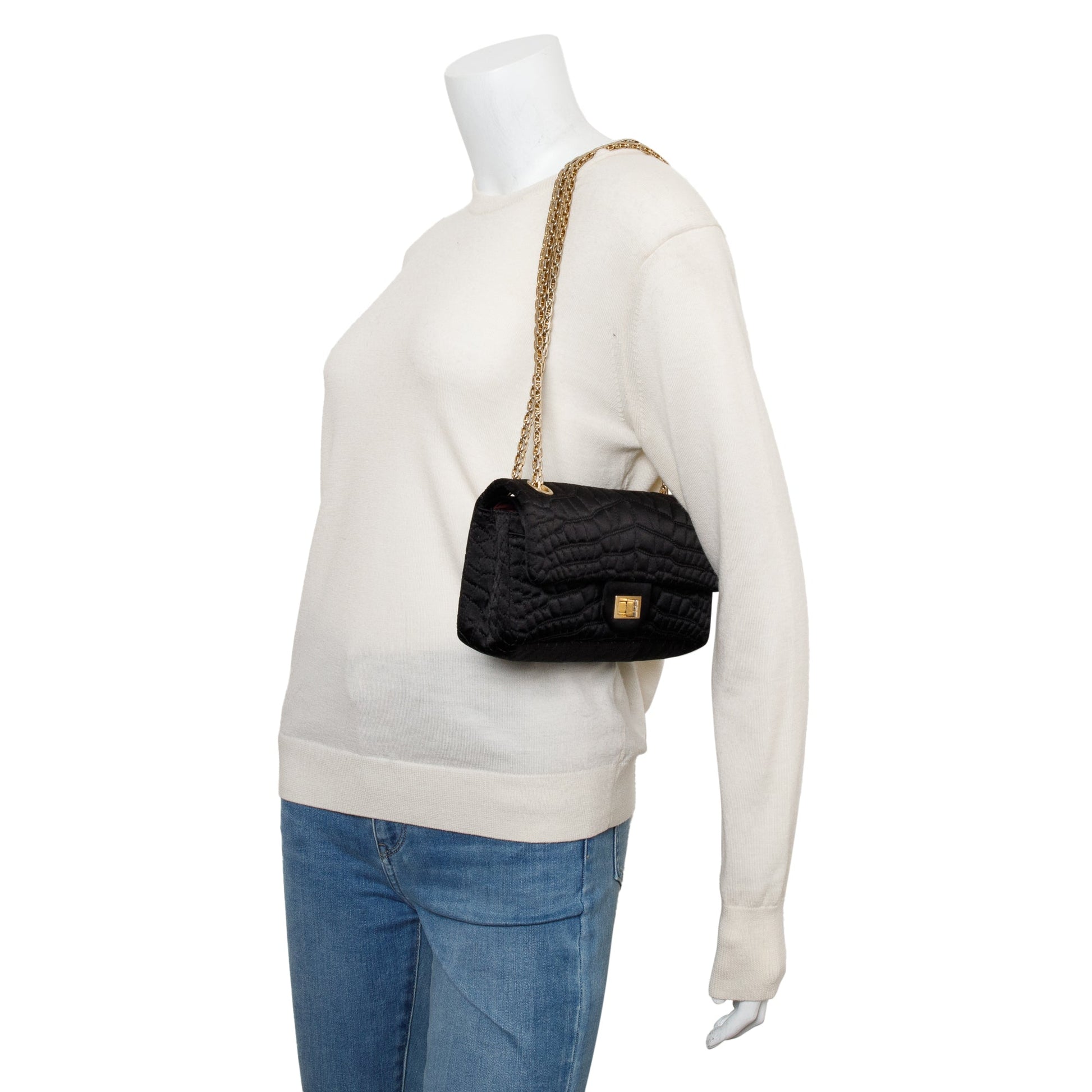 Chanel Black Satin Coco's Croc 2.55 Reissue East/West Double Flap Bag w/ Box