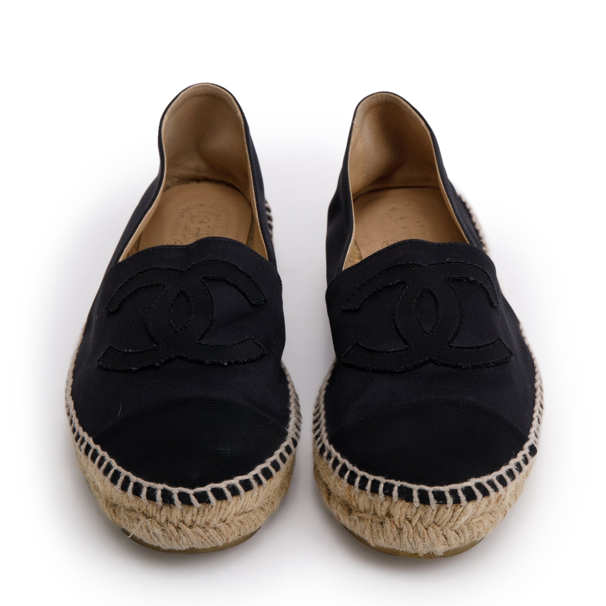 Chanel Black Satin Interlocking CC Logo Espadrilles, Size 39