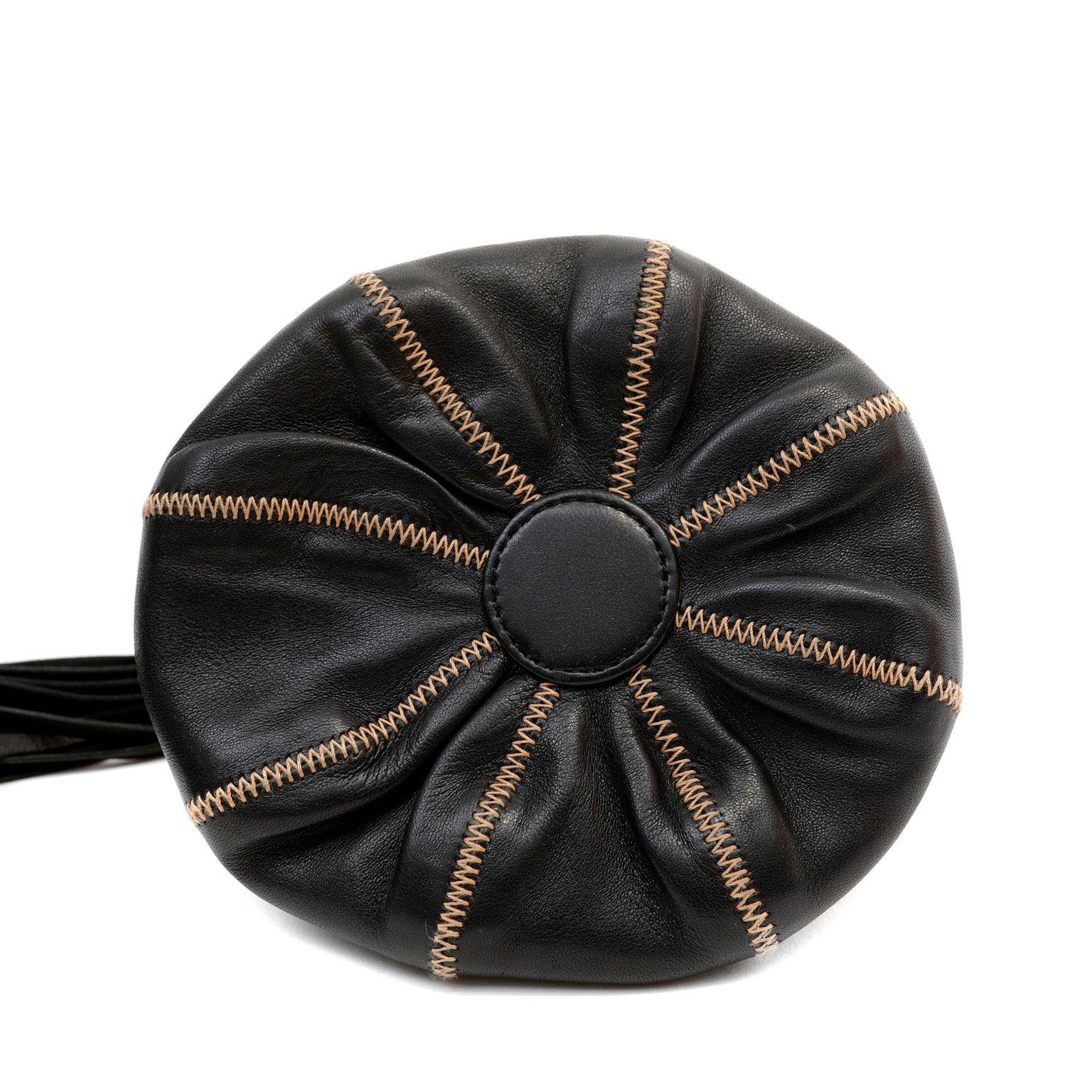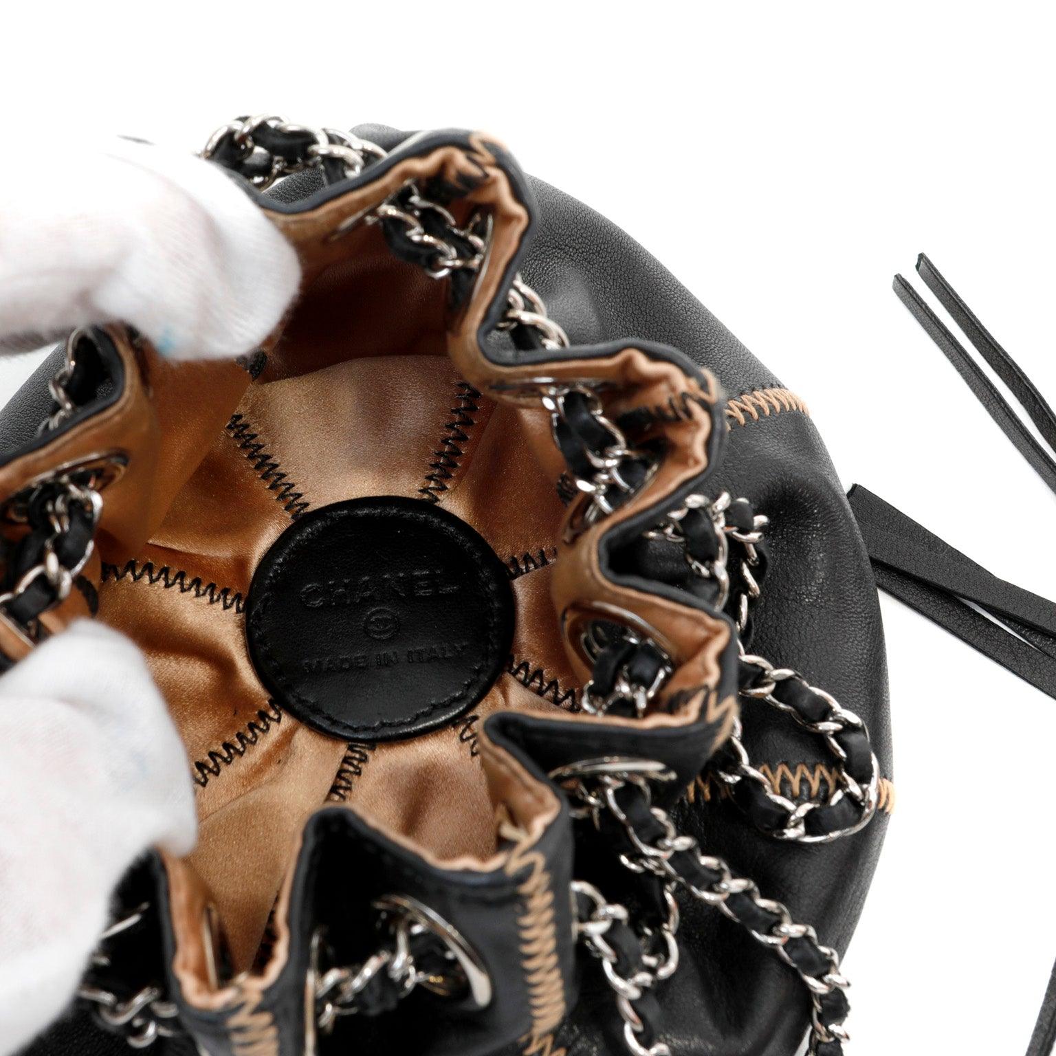 Chanel Black Lambskin/ Tan Satin Reversible Pouchette w/ Tassle
