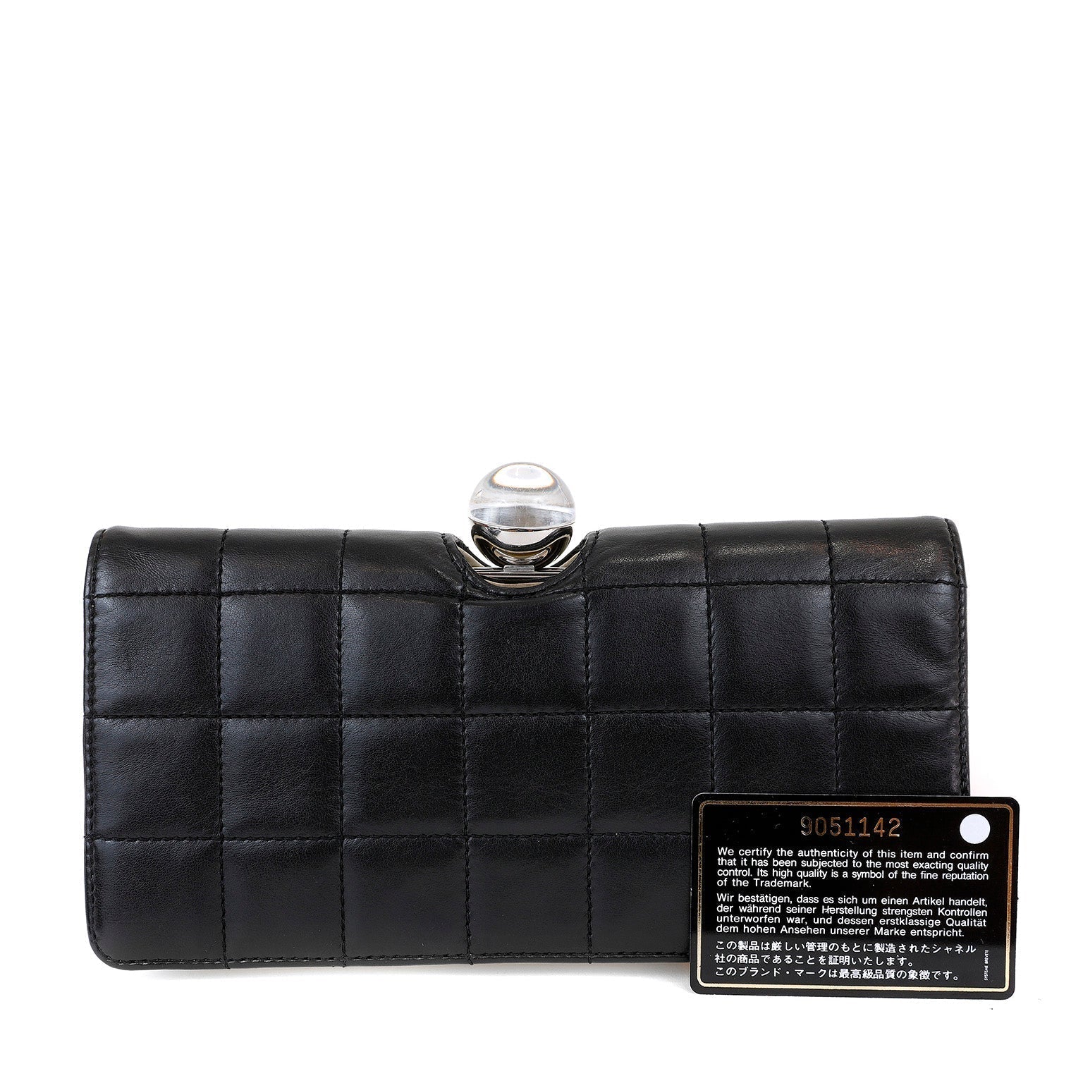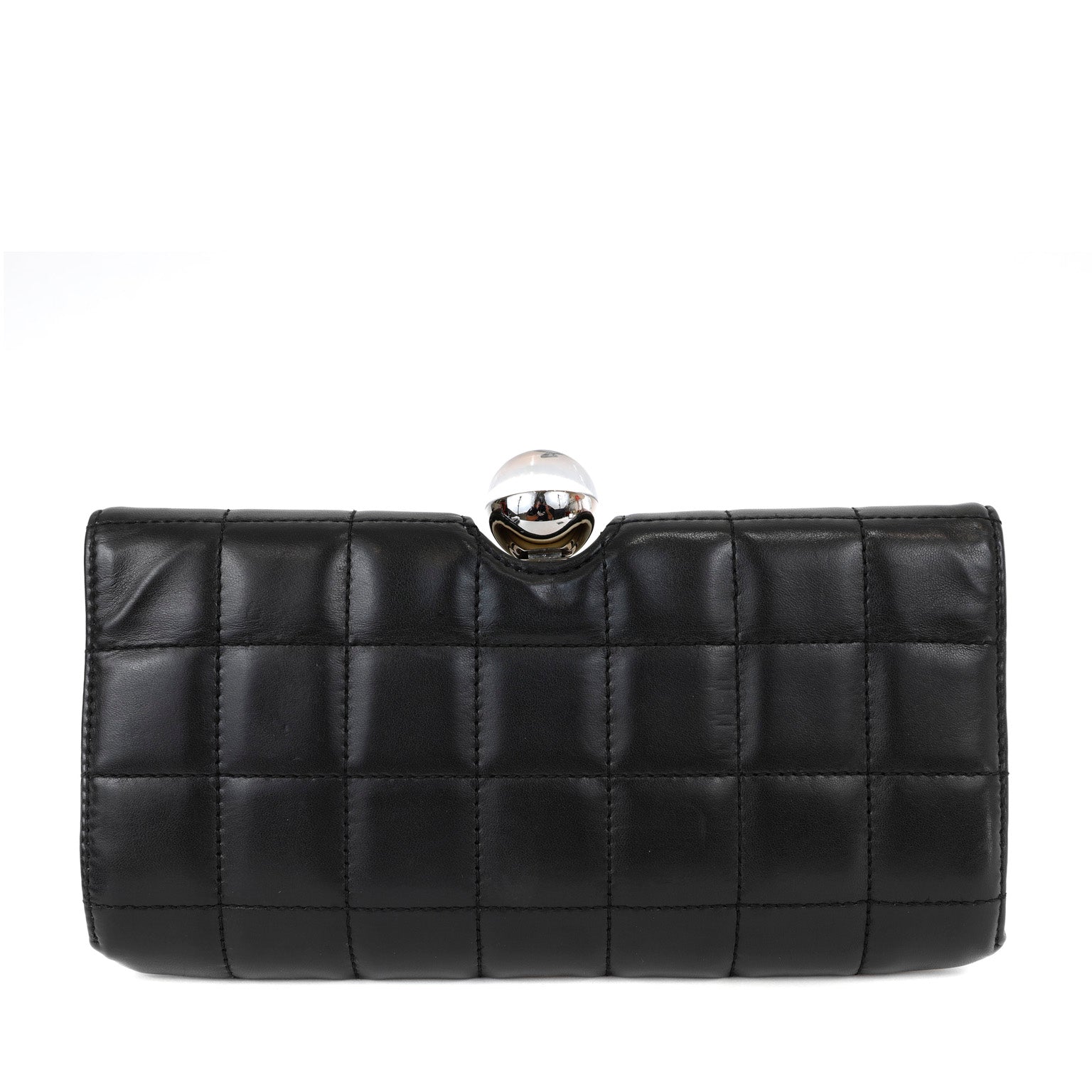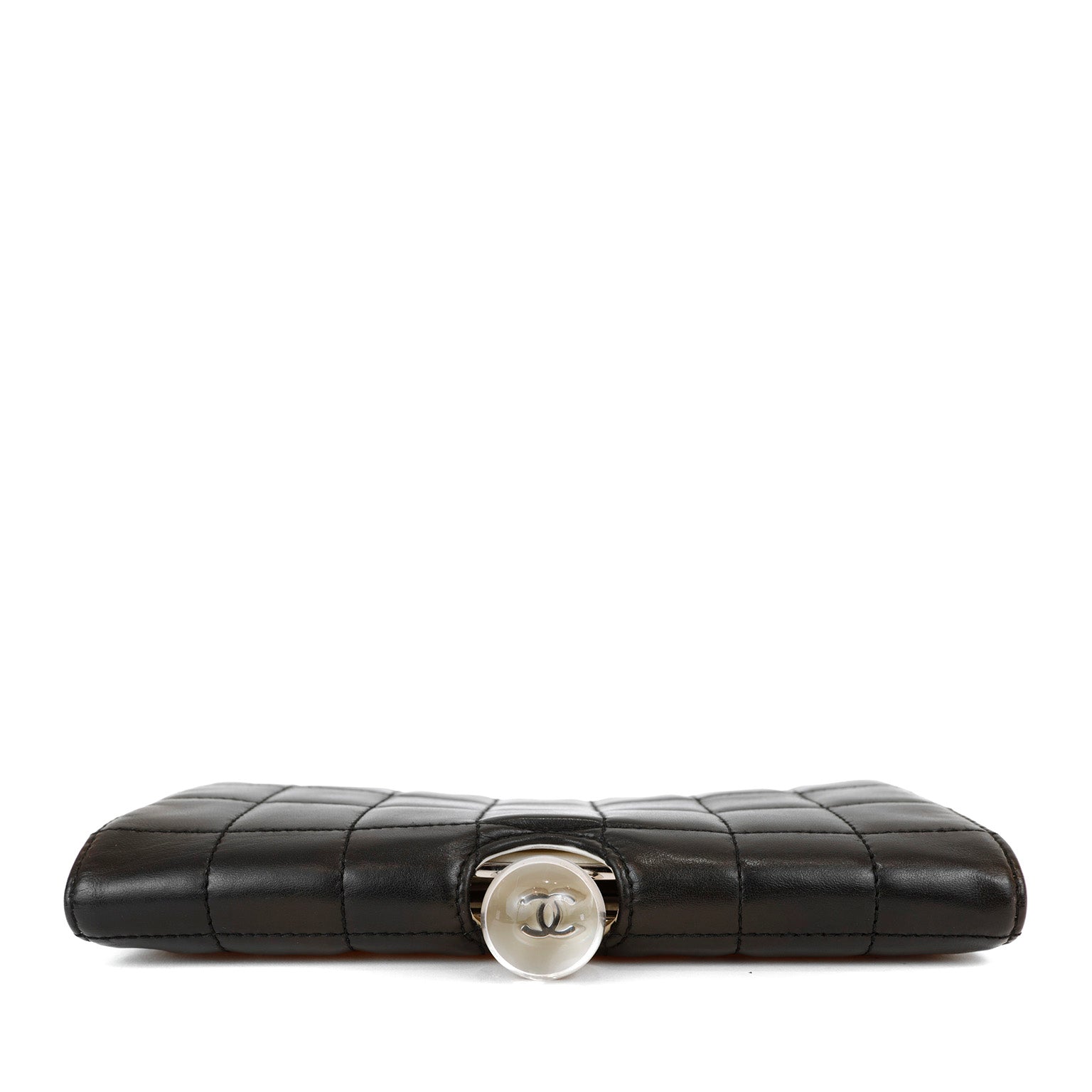 Chanel Black and White Lambskin Square Stitched Clutch with Lucite Knob