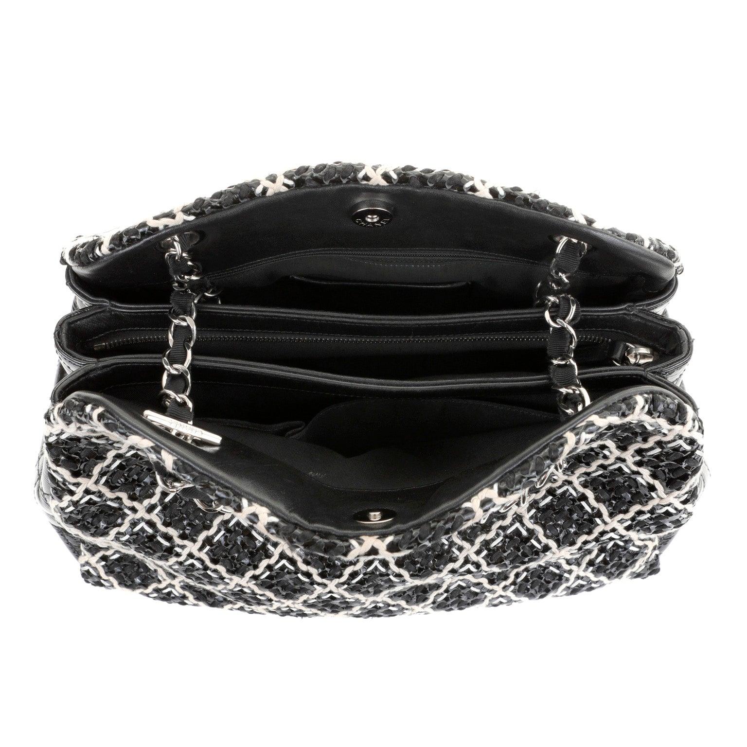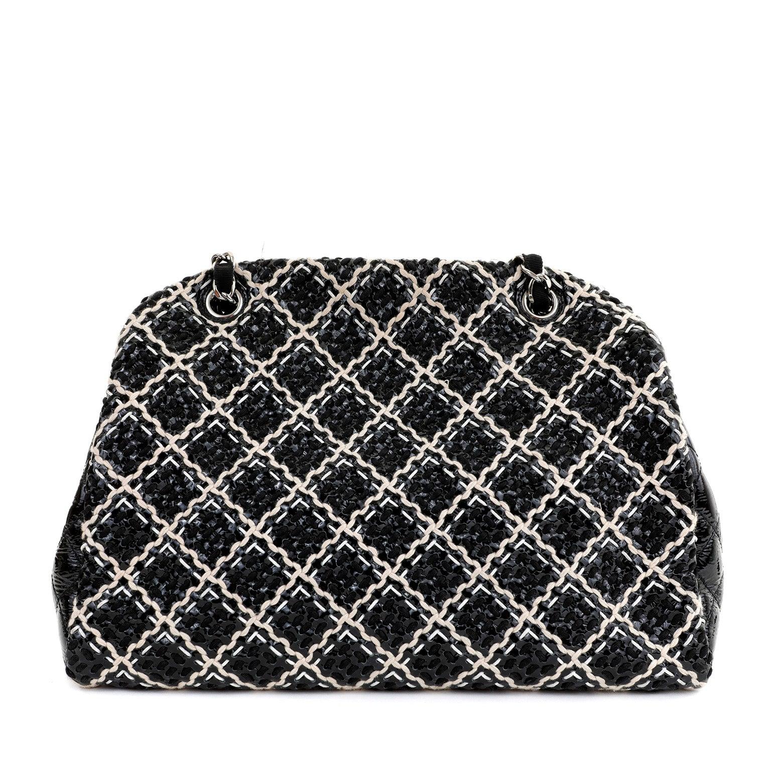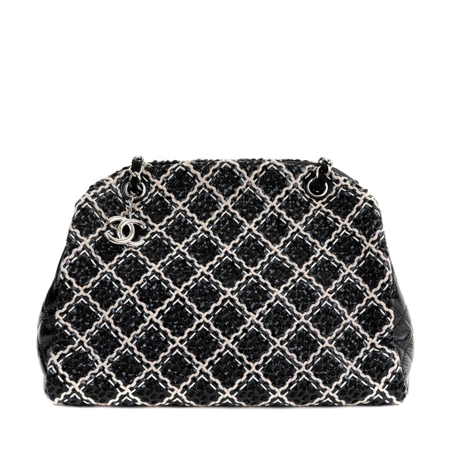 Chanel Black and Beige Tweed Patent Leather Large Just Mademoiselle Bag