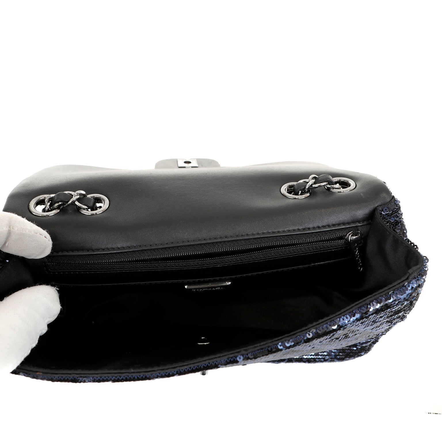 Chanel Black/Navy Sequin Classic Flap Bag w/ Silver Hardware