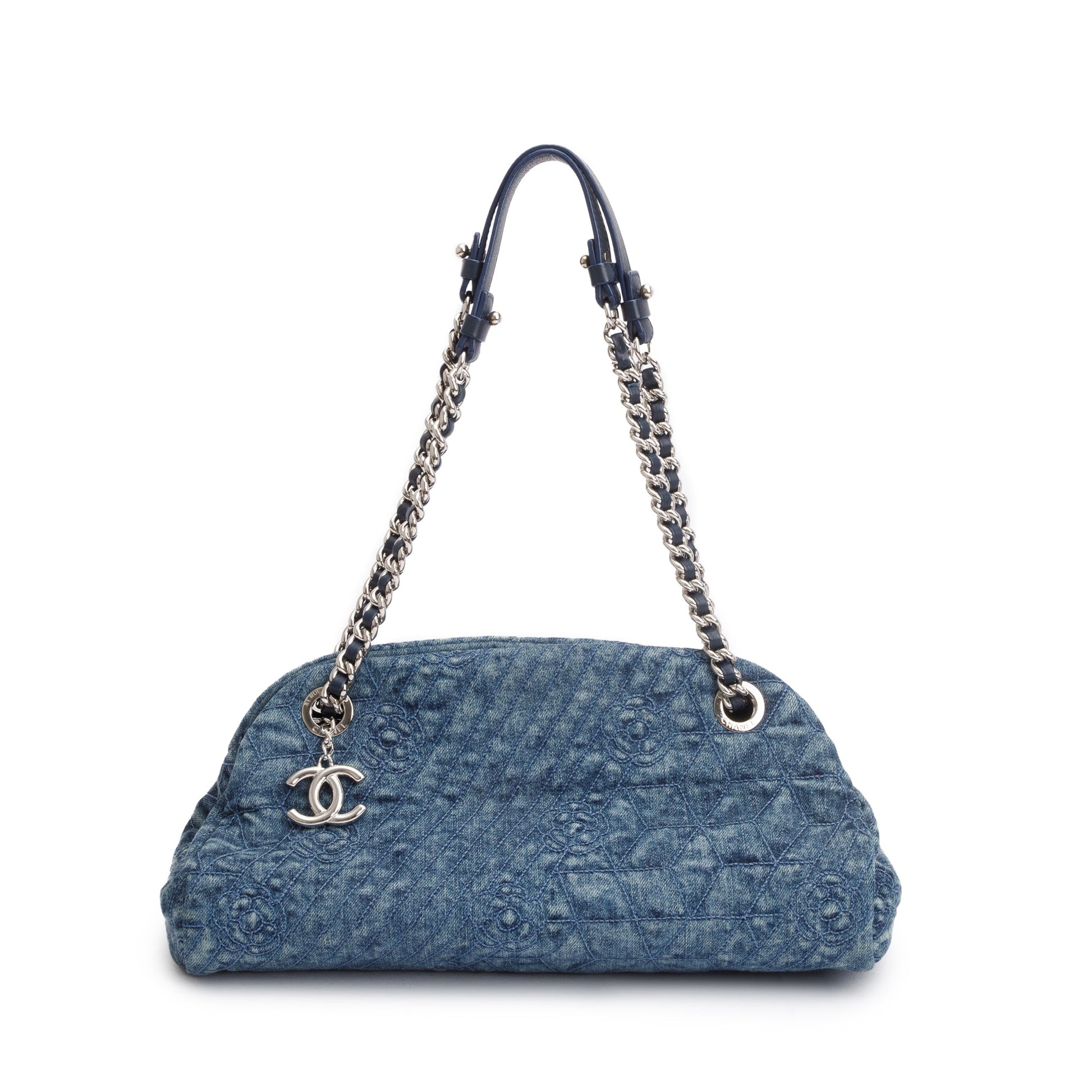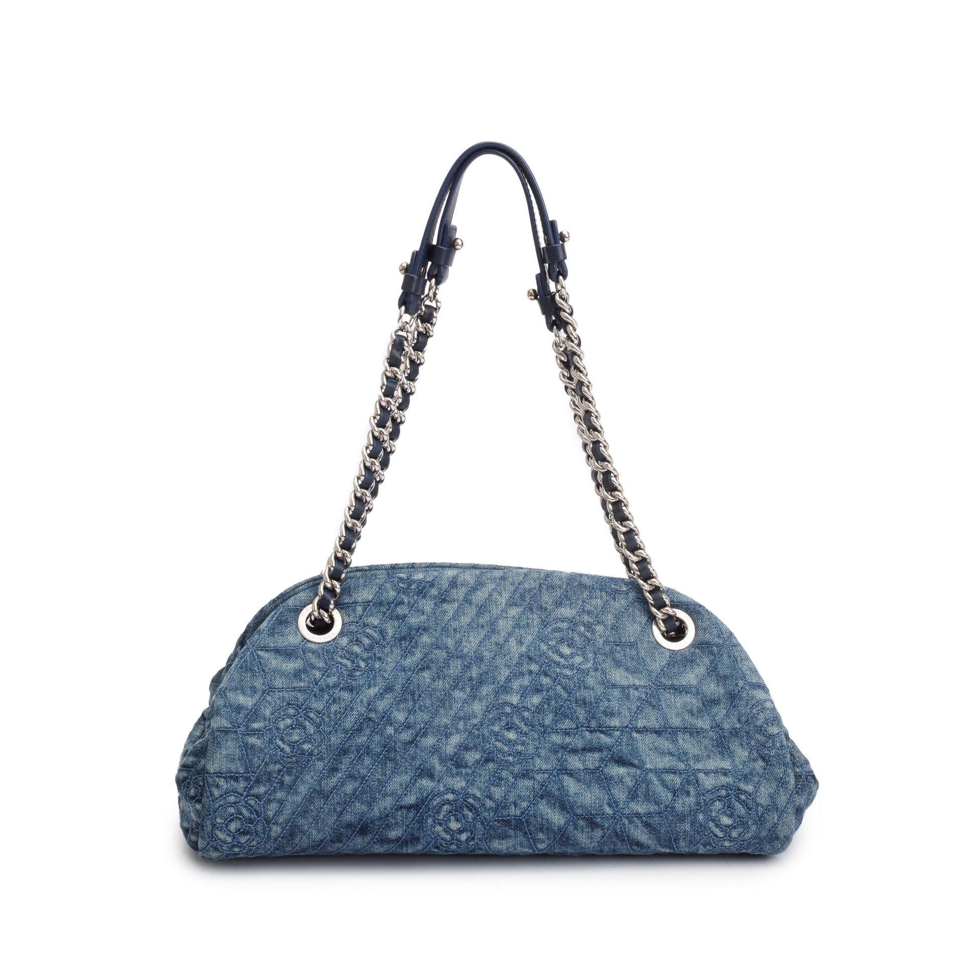 Chanel Blue Camellia Denim Just Mademoiselle Bowler Bag