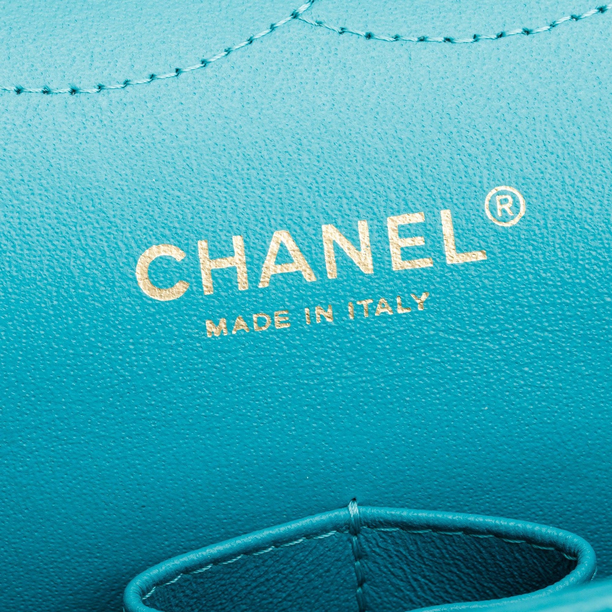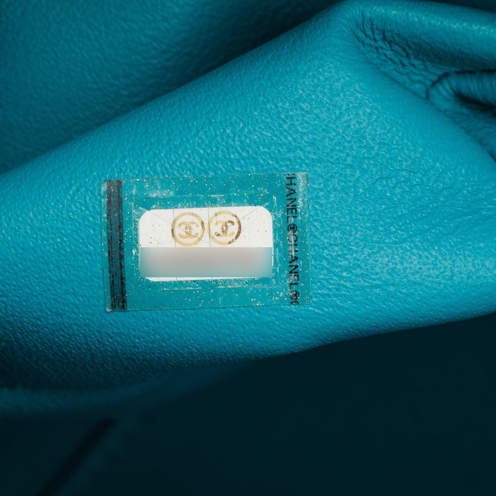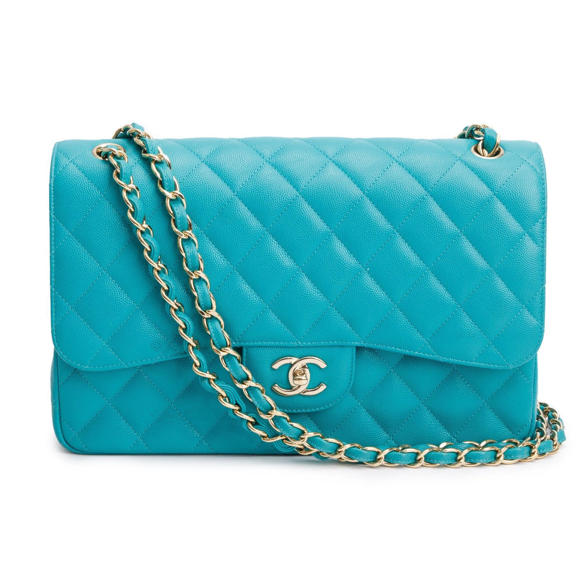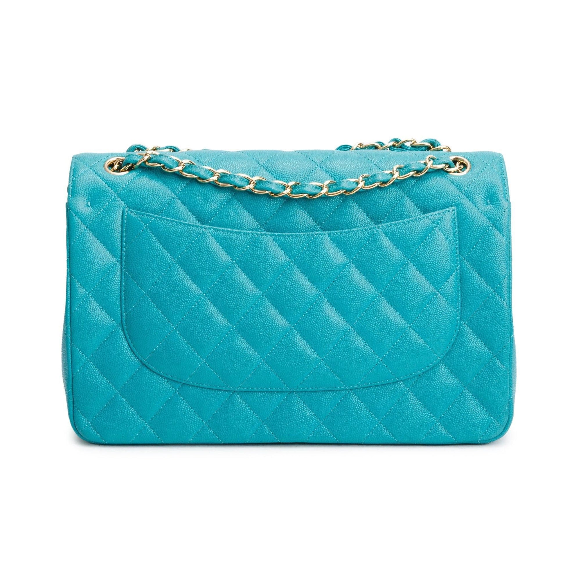 Chanel Turquoise Caviar Leather Classic Jumbo Double Flap Bag w/ Box