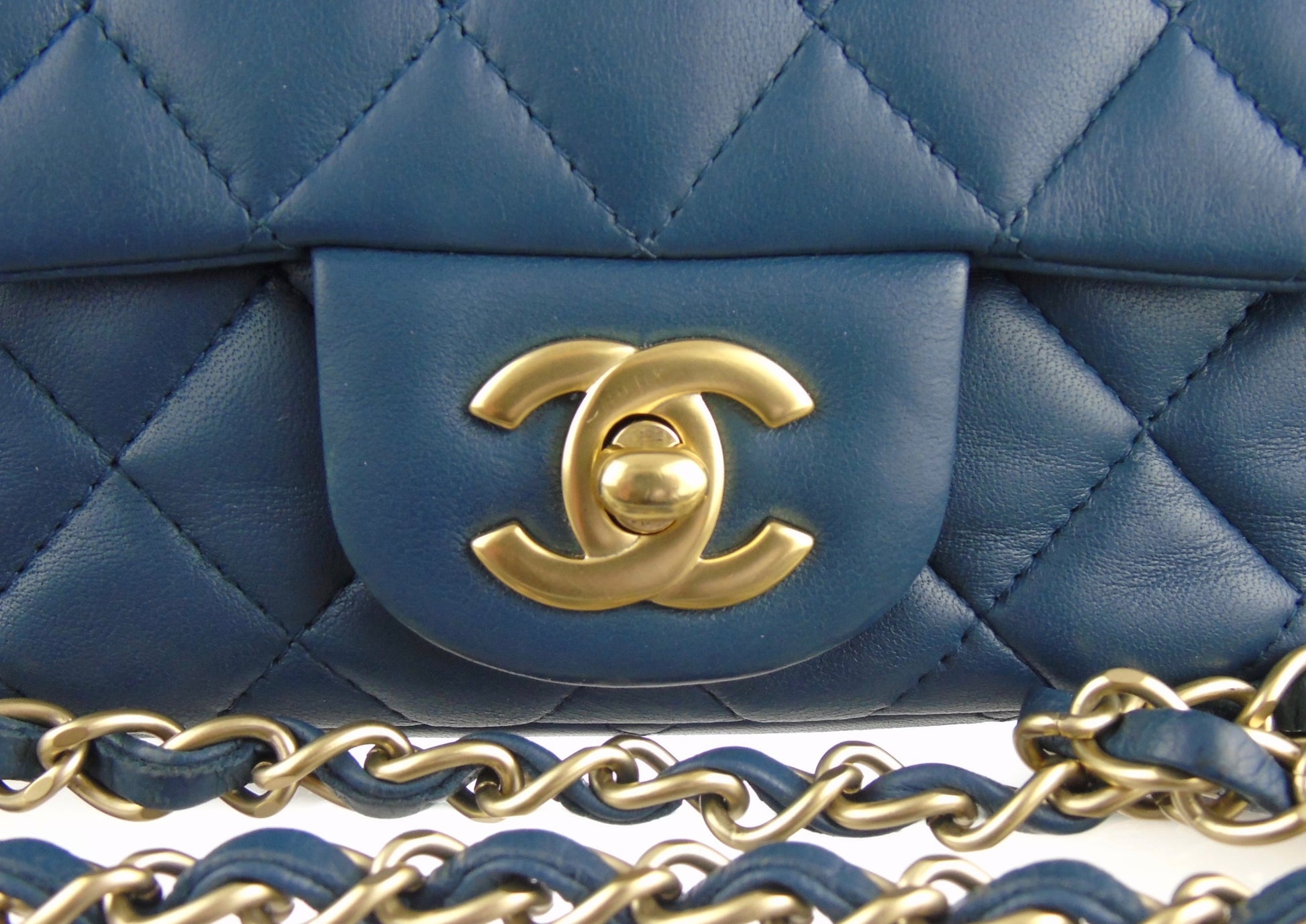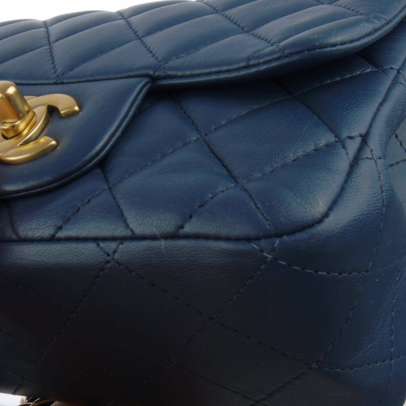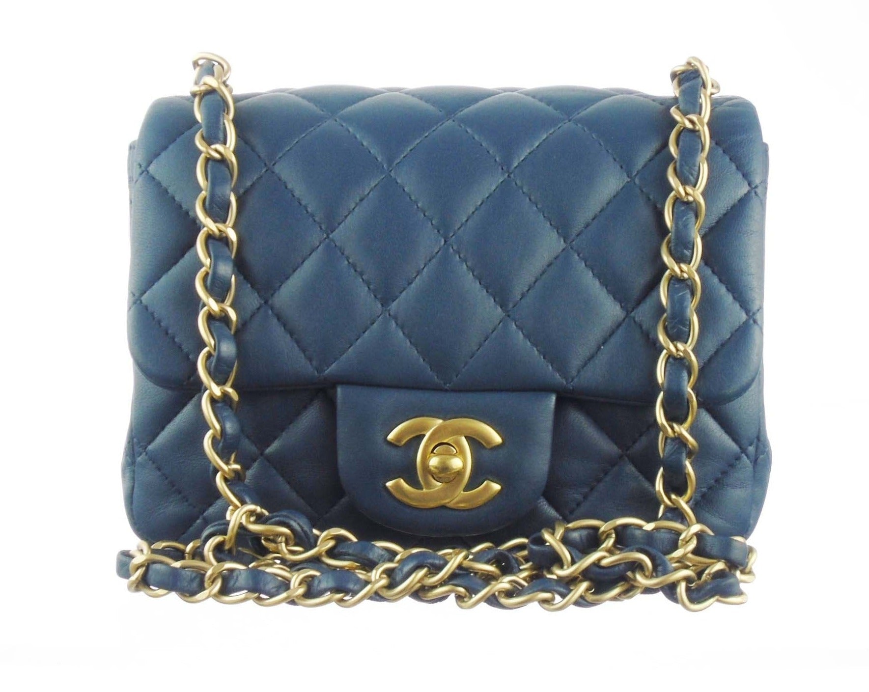 CHANEL slate blue lambskin classic mini square flap bag ghw
