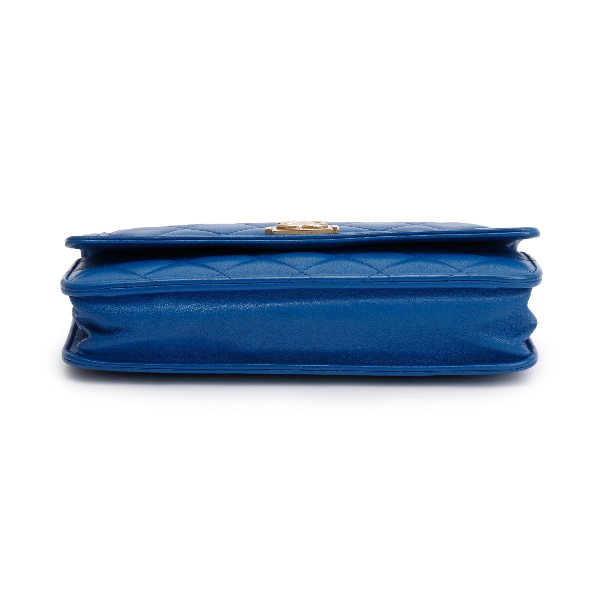 Chanel Blue Lambskin Leather Boy Wallet on Chain