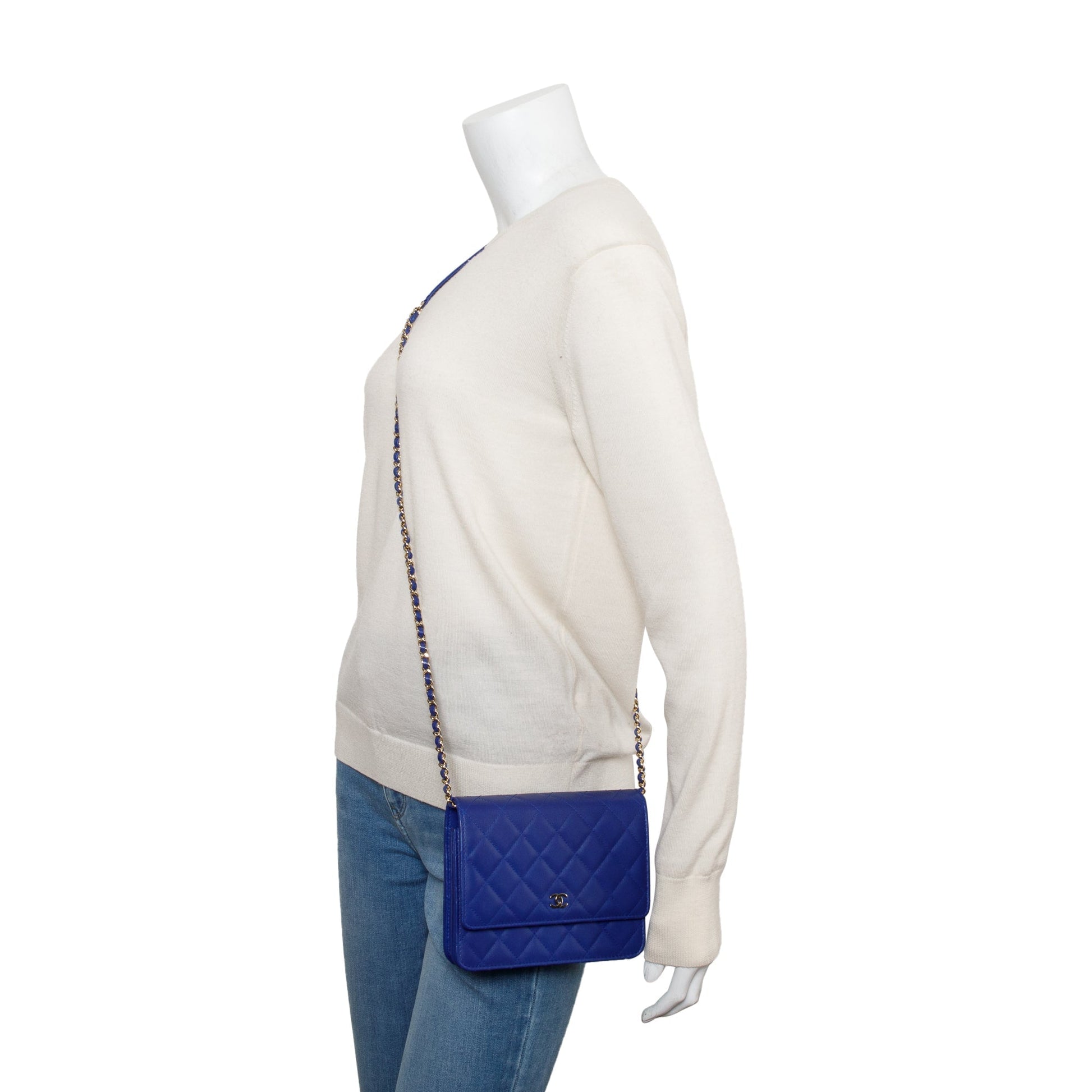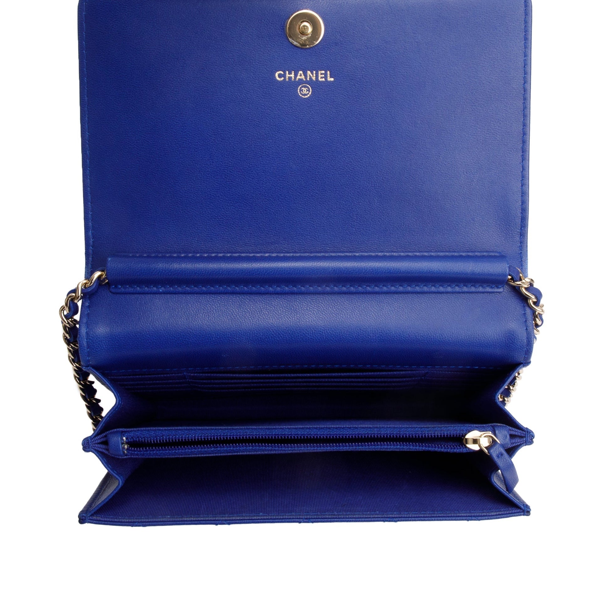 Chanel Blue Lambskin Quilted Square Wallet on Chain w/ Box & Authenticity Card
