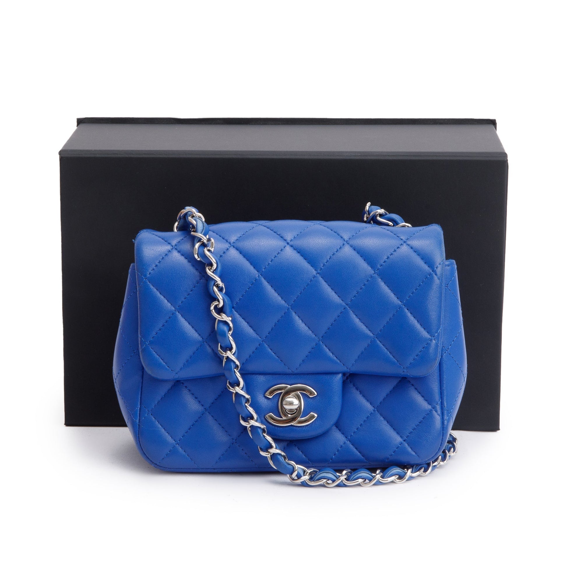 Chanel Blue Quilted Lambskin Leather Classic Square Mini Flap Bag w/ Box, Authenticity Card