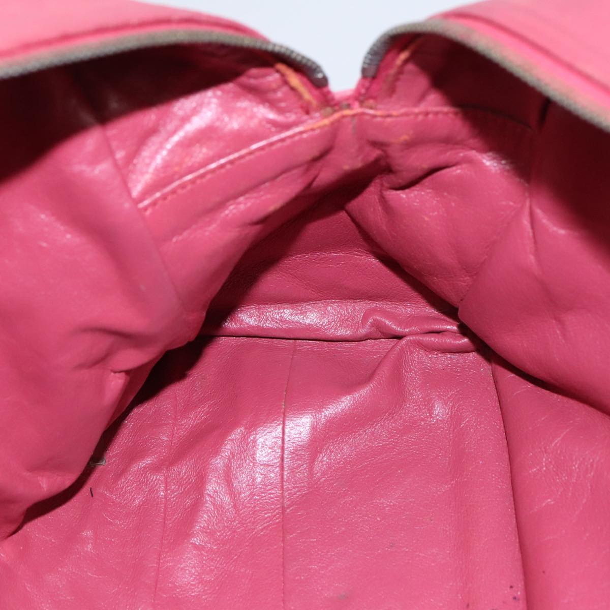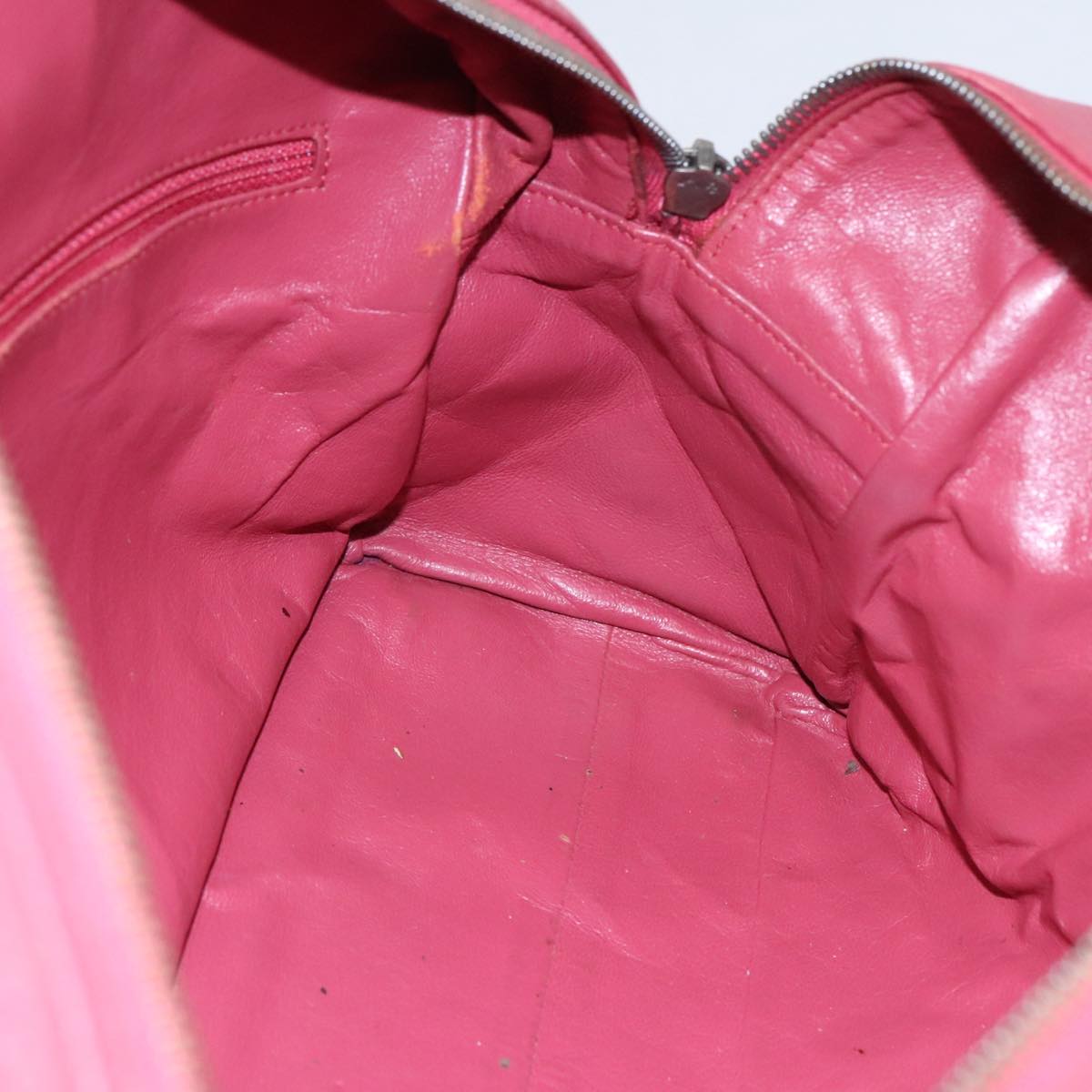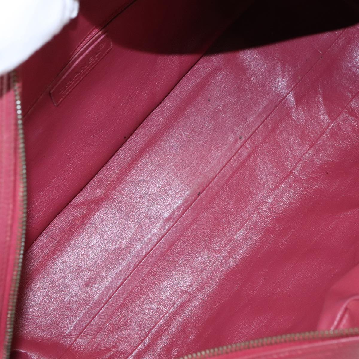 CHANEL Boston Bag Leather Red Silver CC 102690