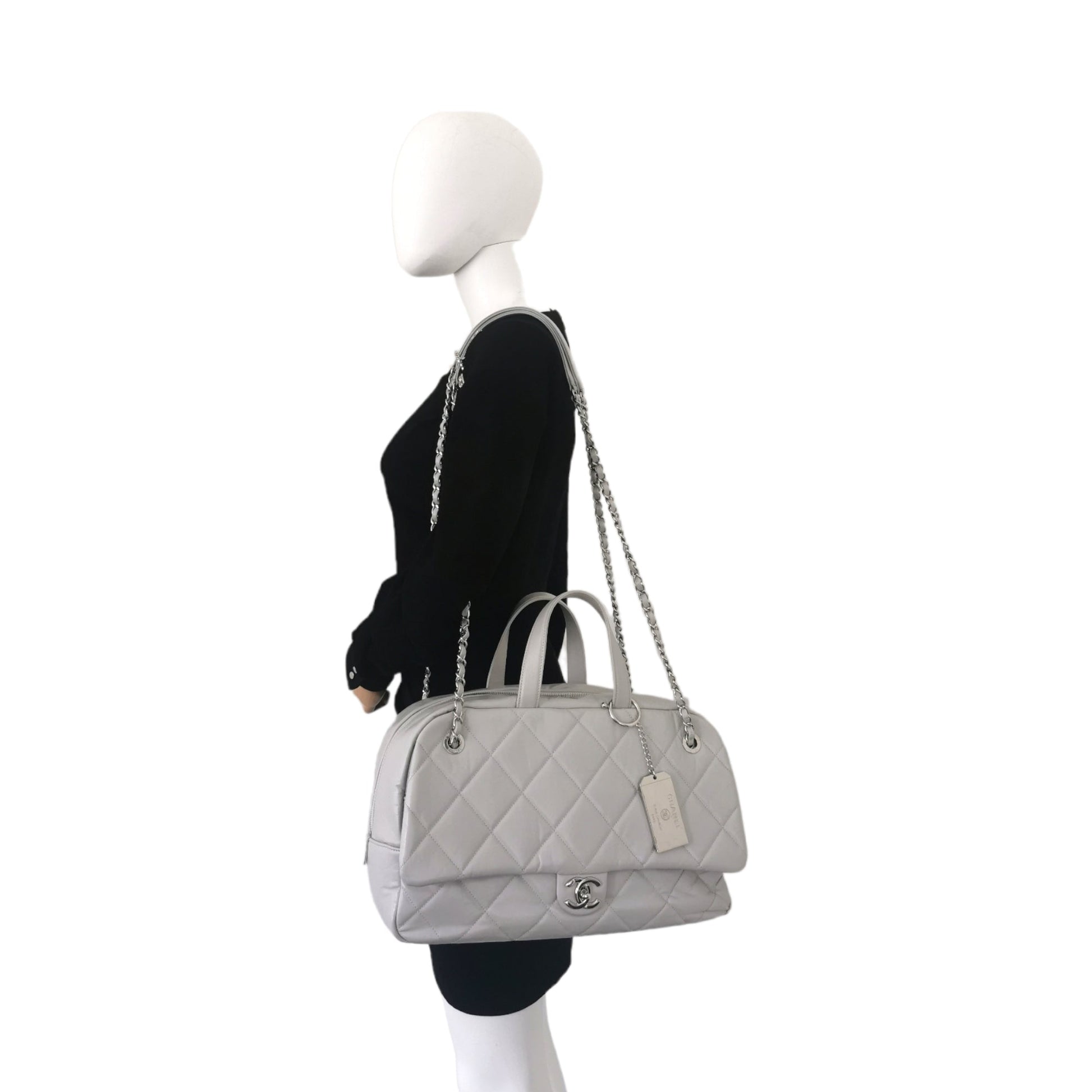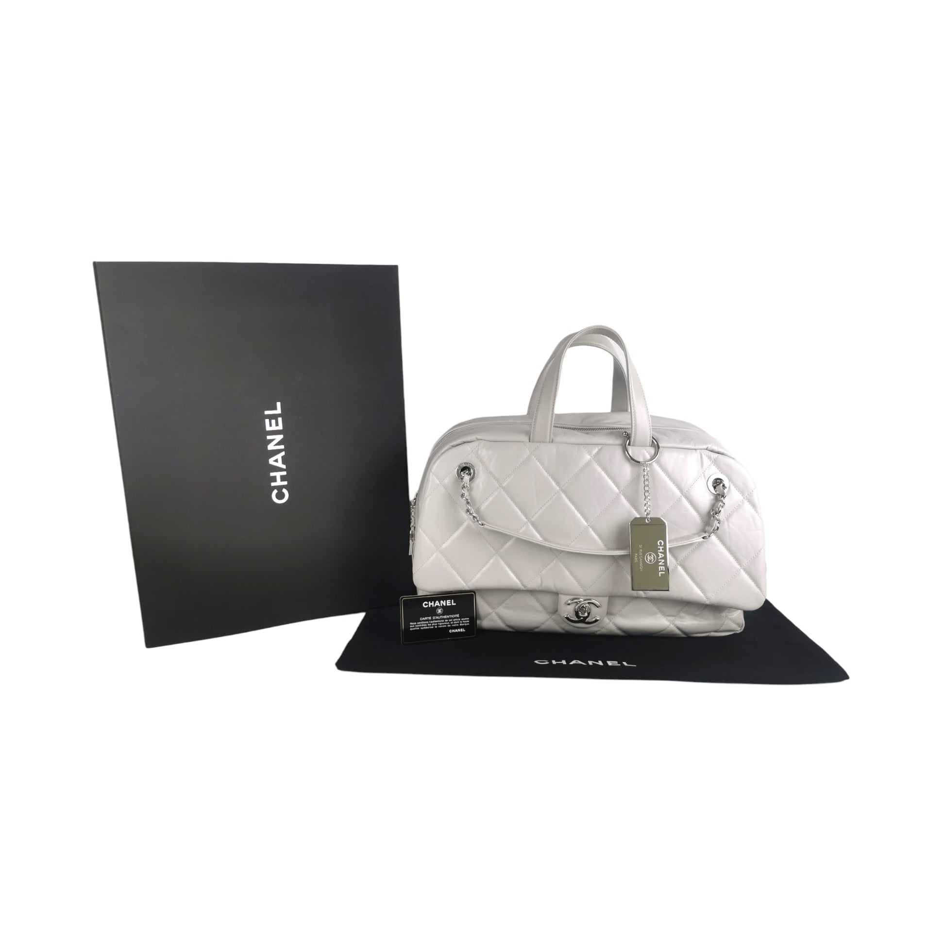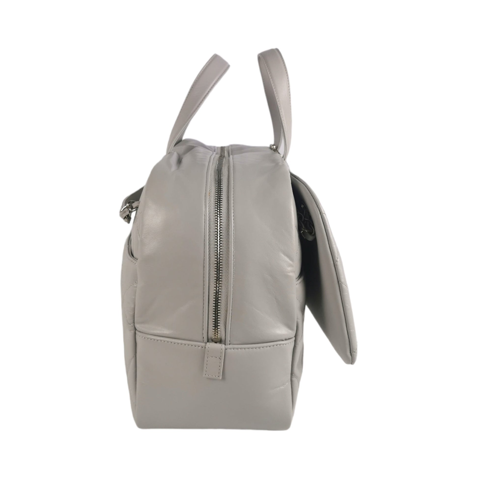 Chanel Bowling Bag Light Grey Calfskin Silver
