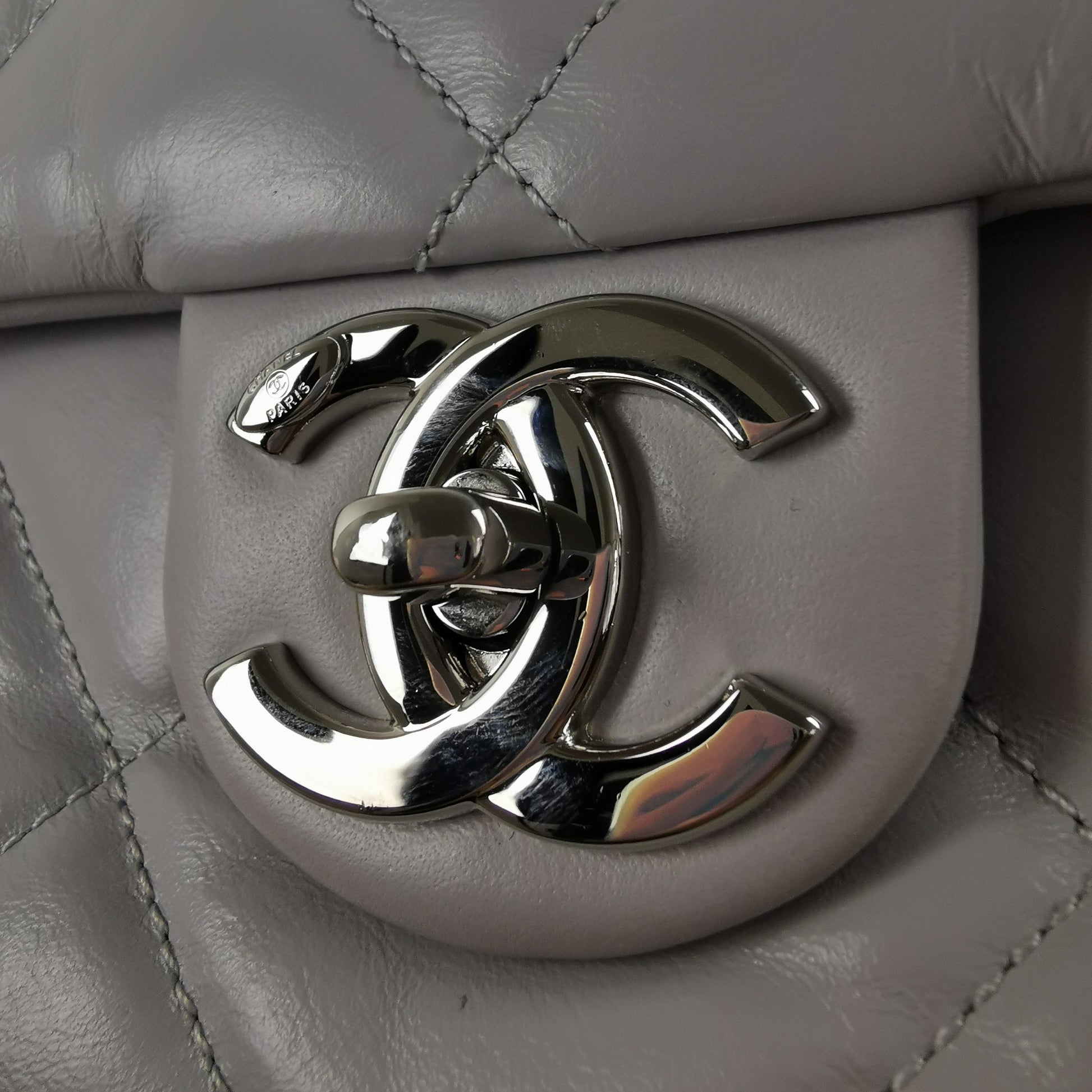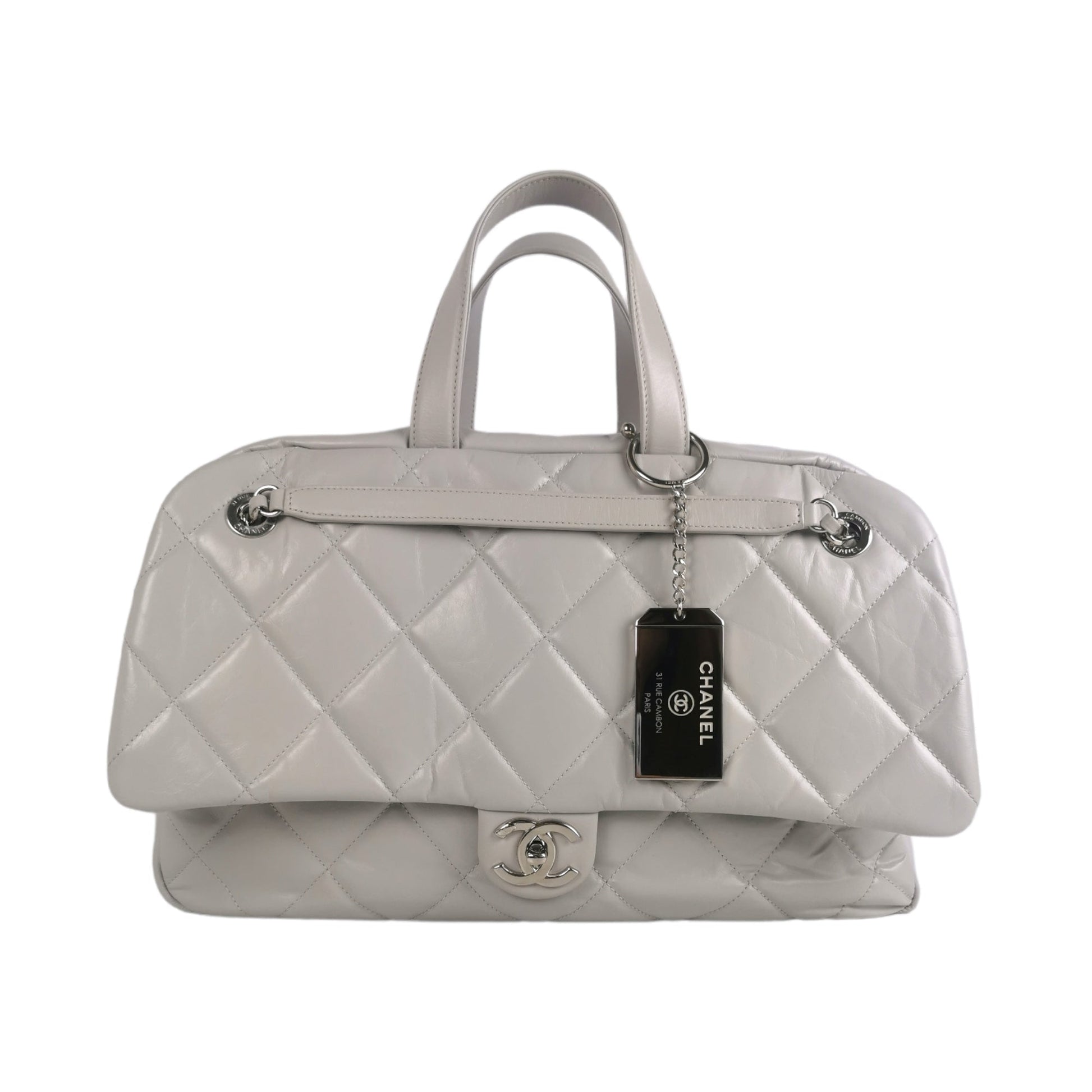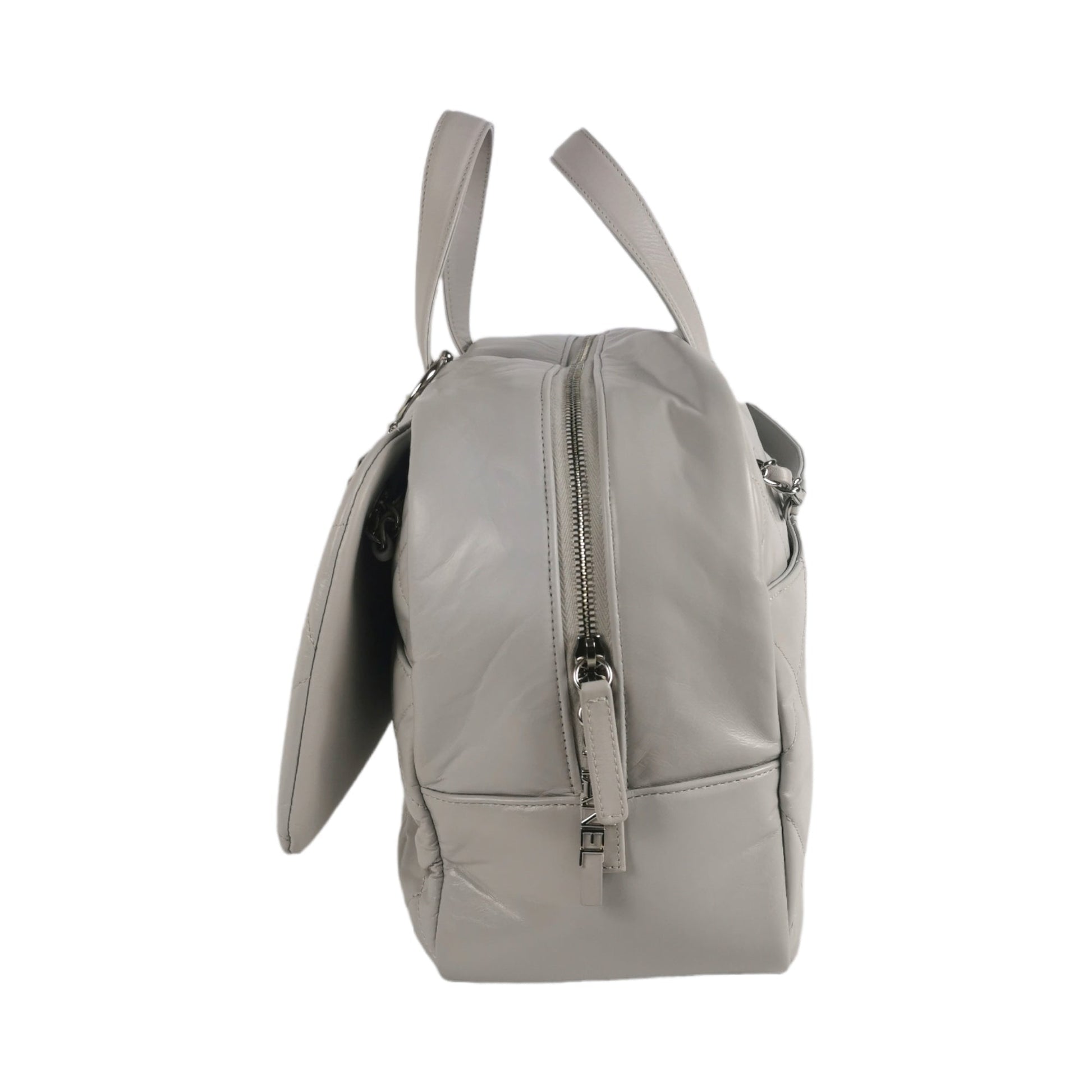 Chanel Bowling Bag Light Grey Calfskin Silver