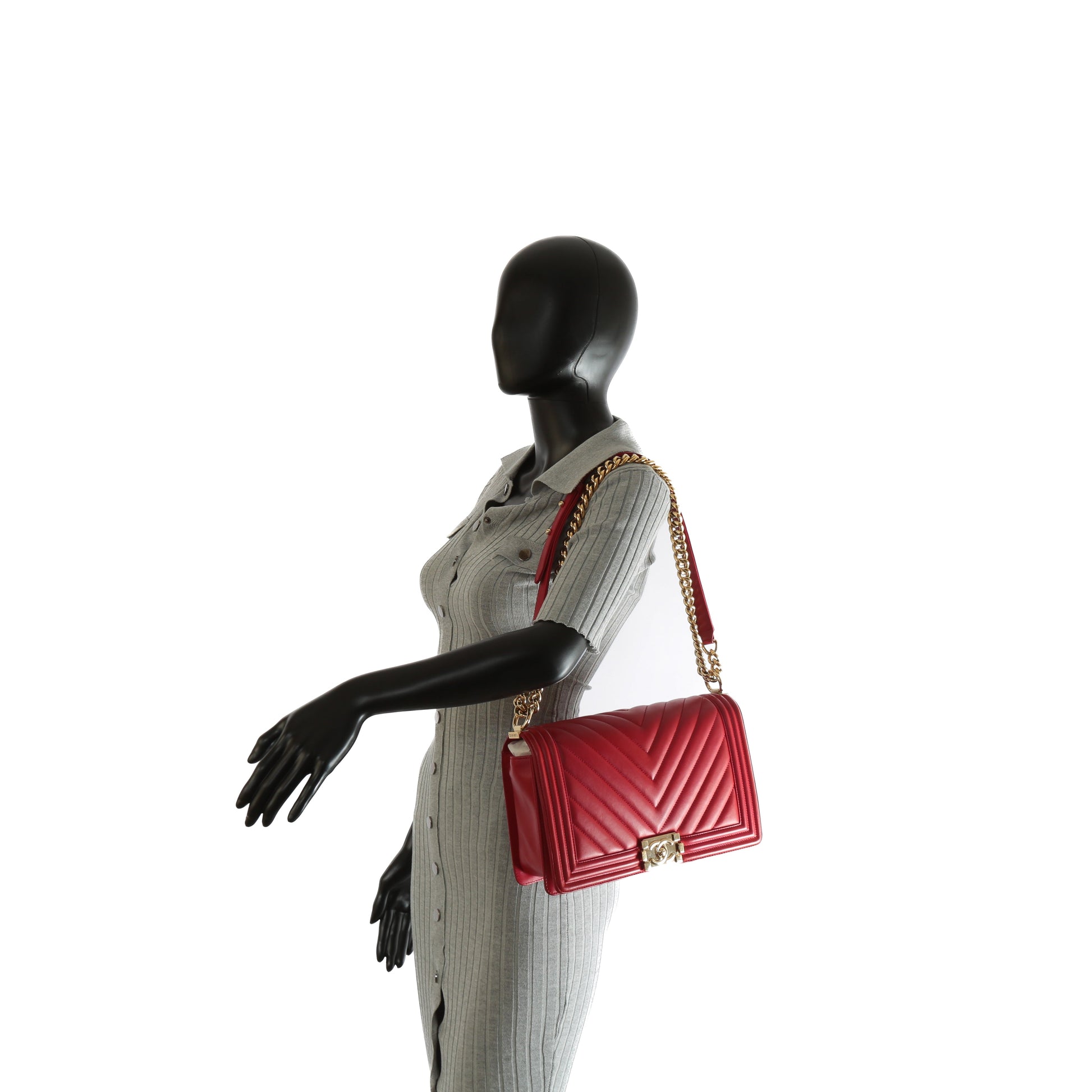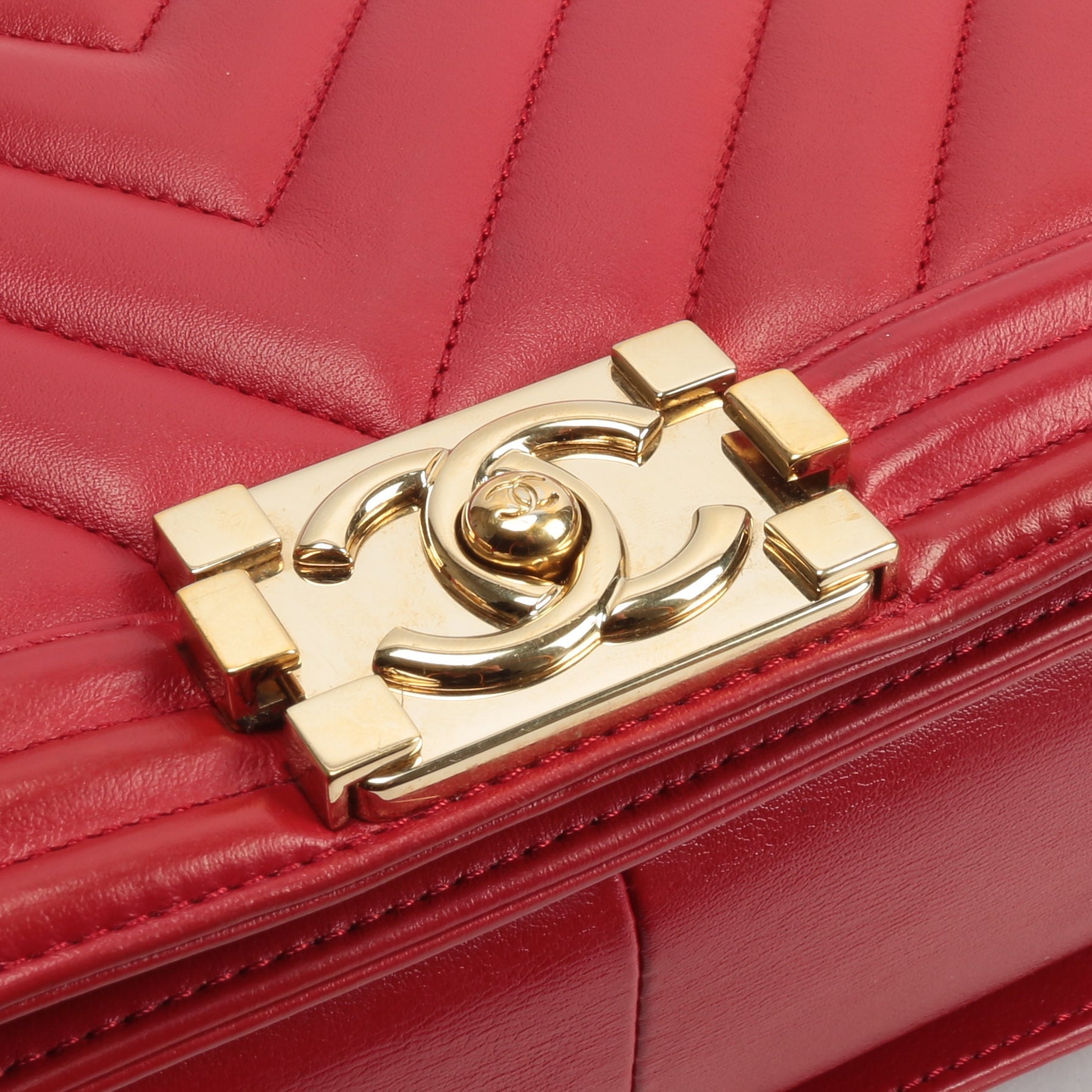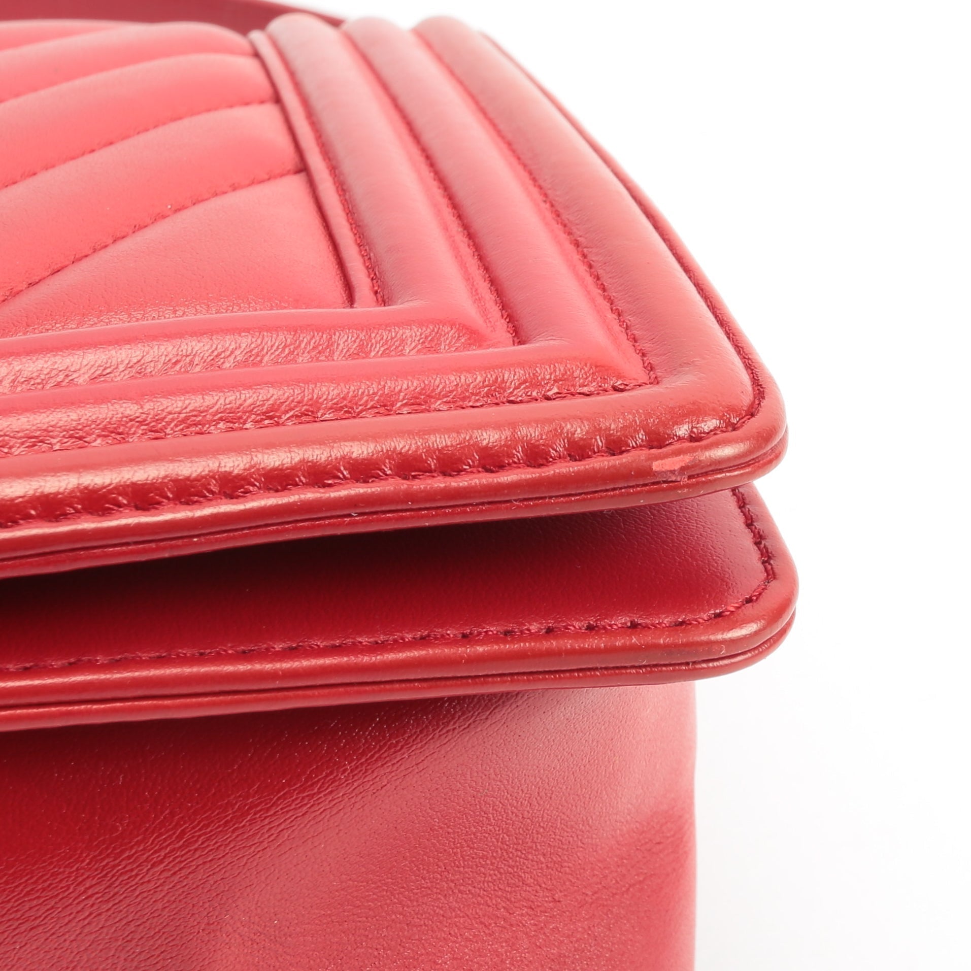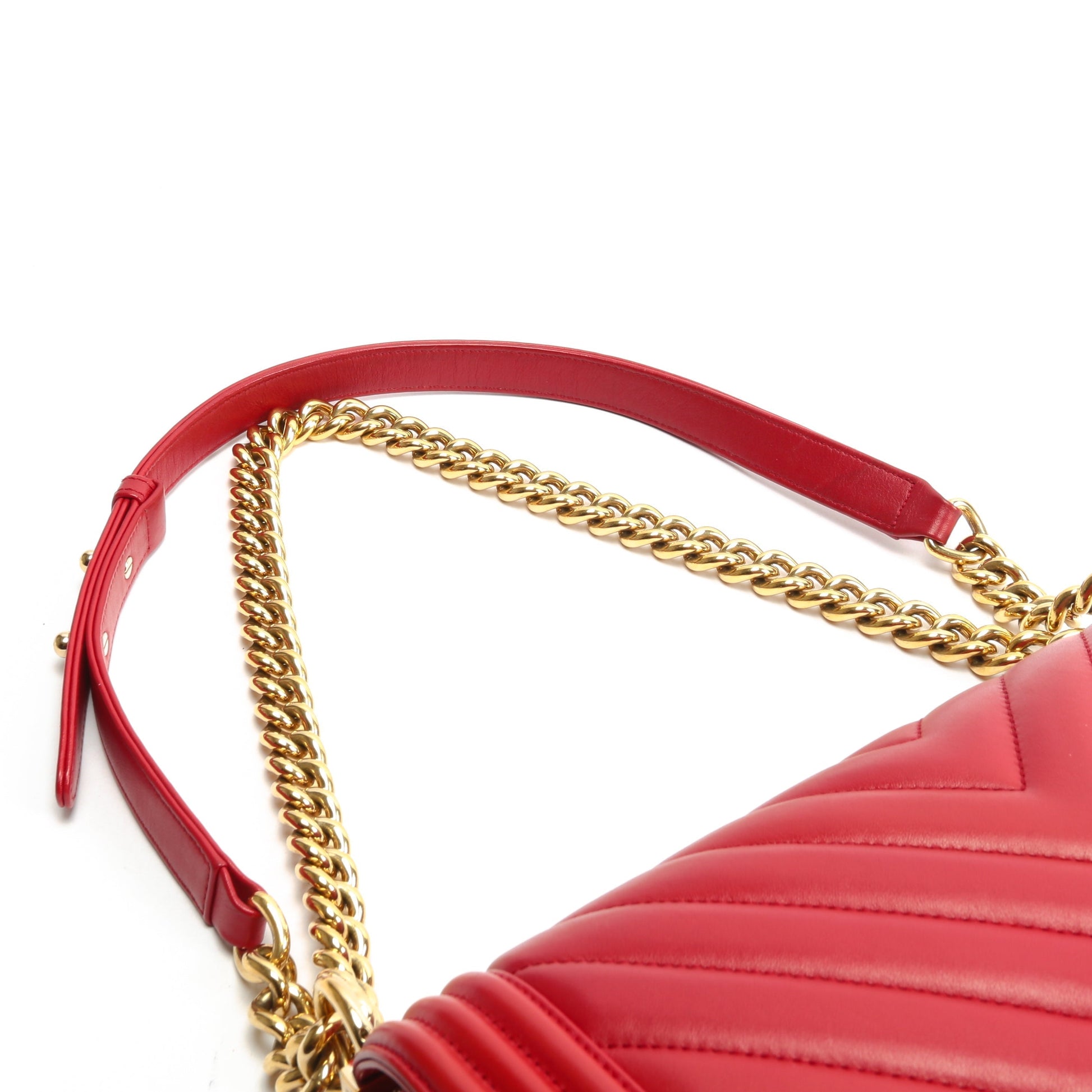 CHANEL 2017 Boy Bag Medium Chevron - Red w/Gold