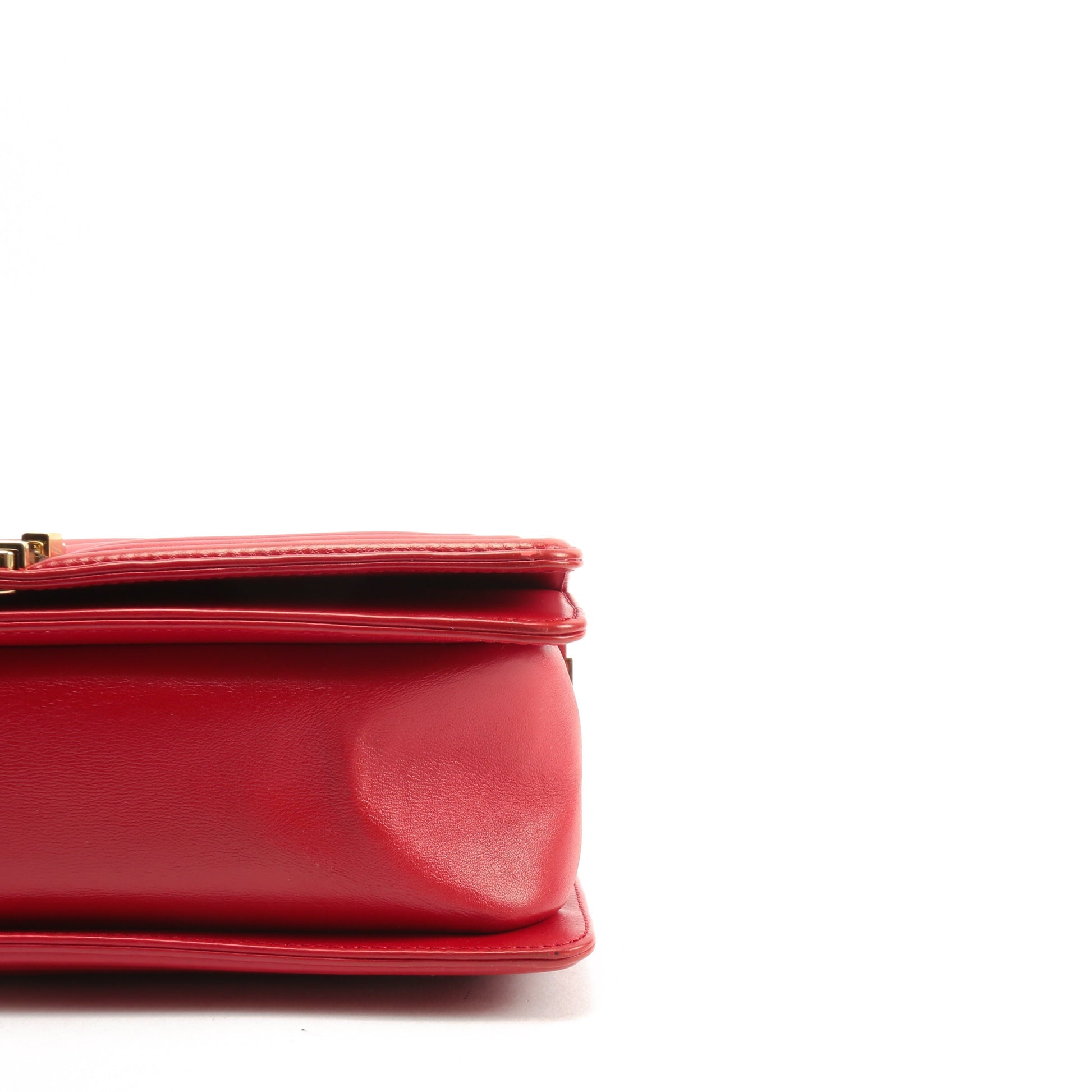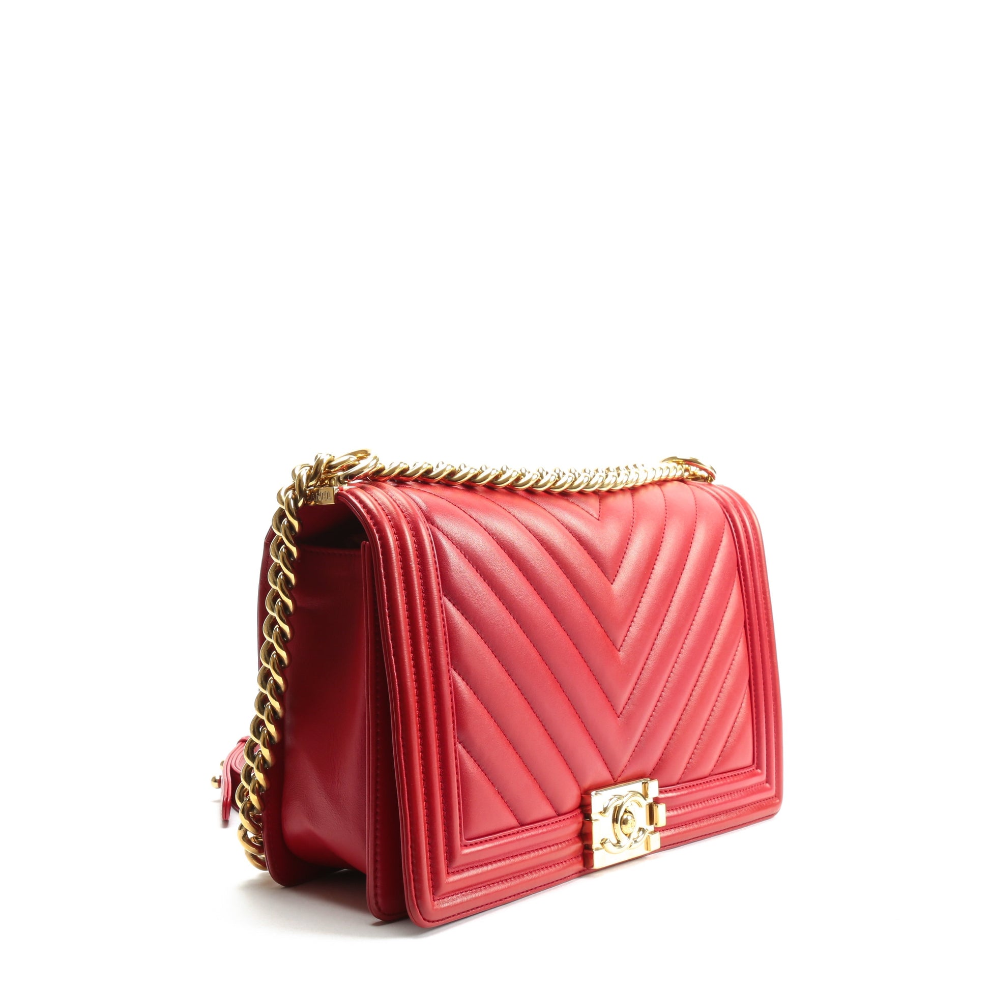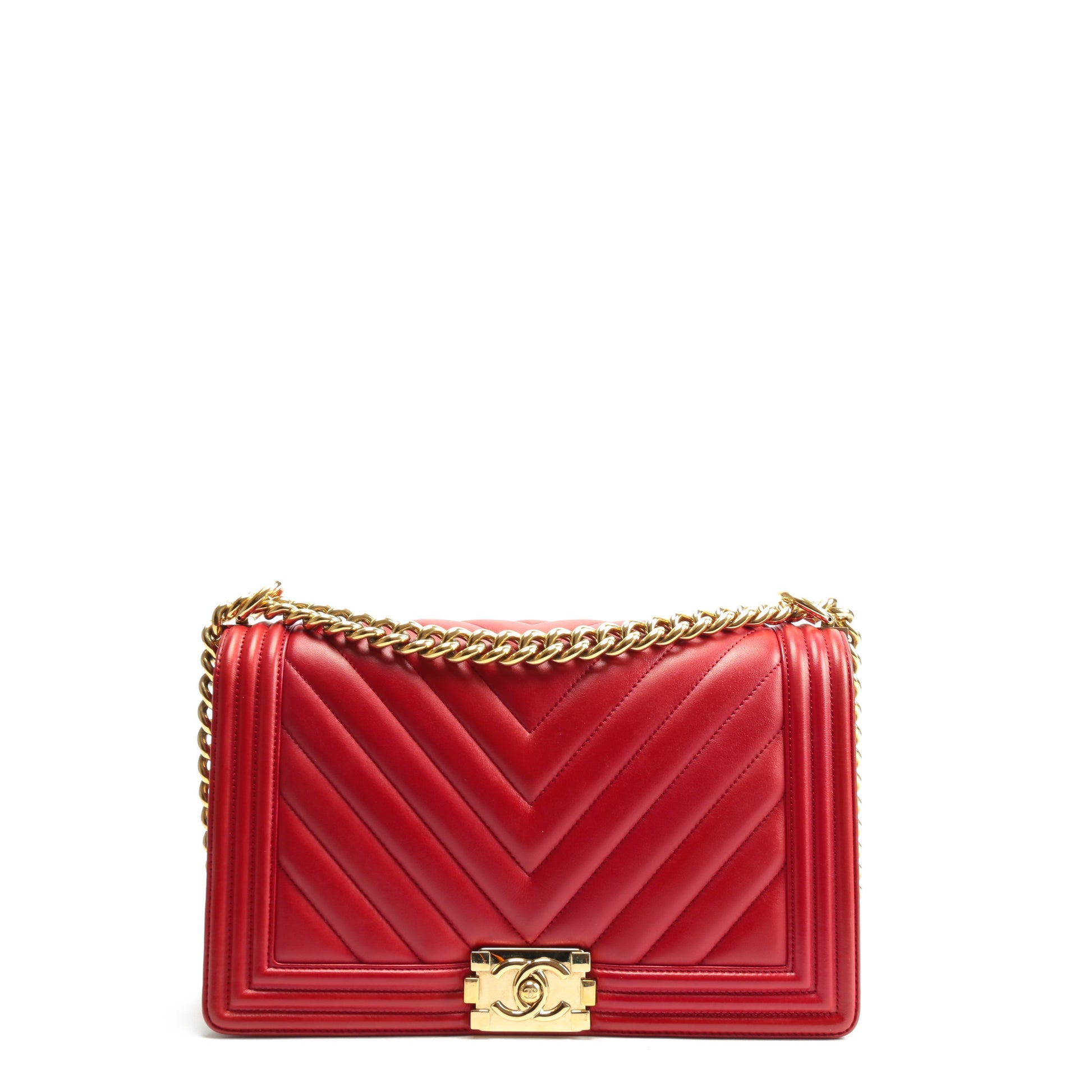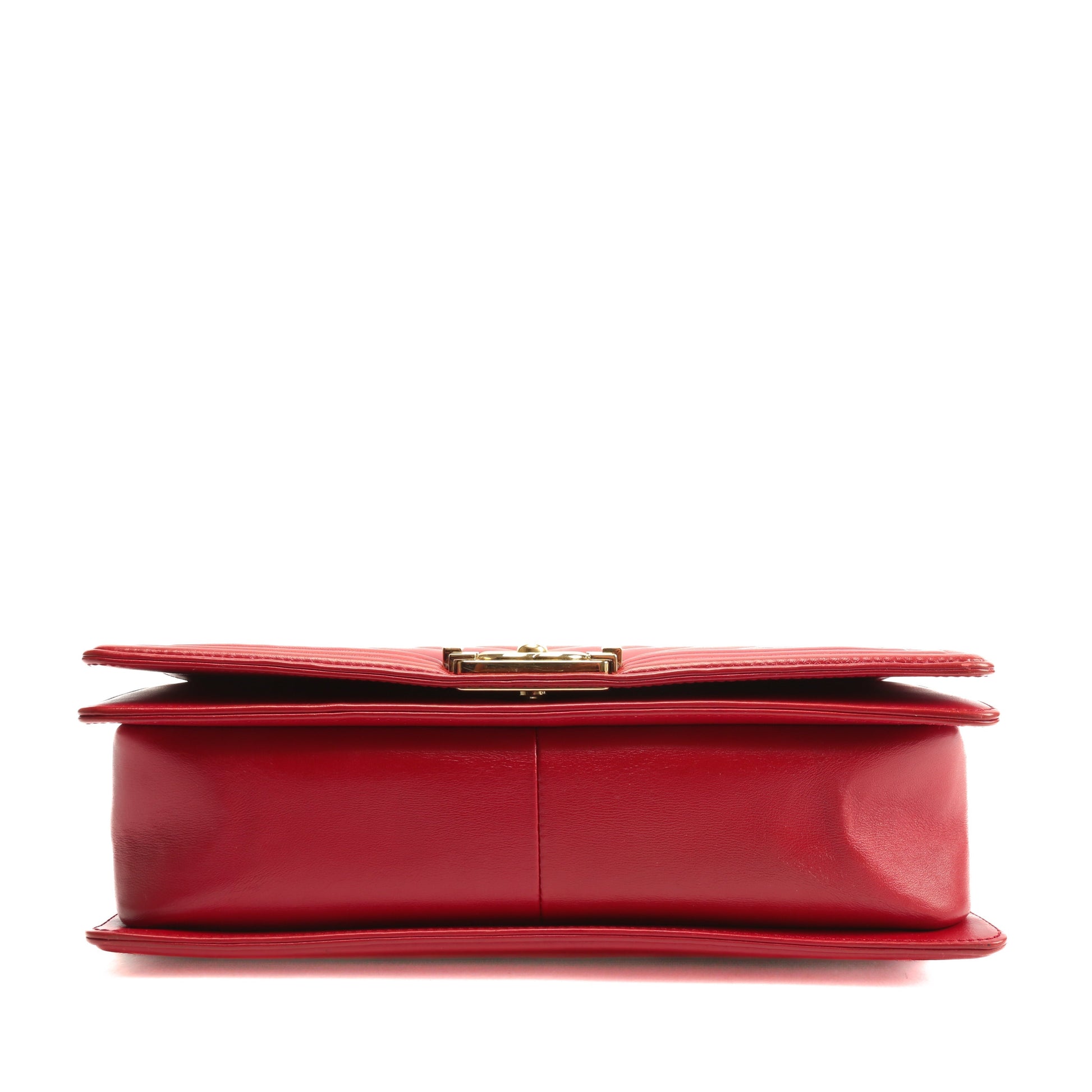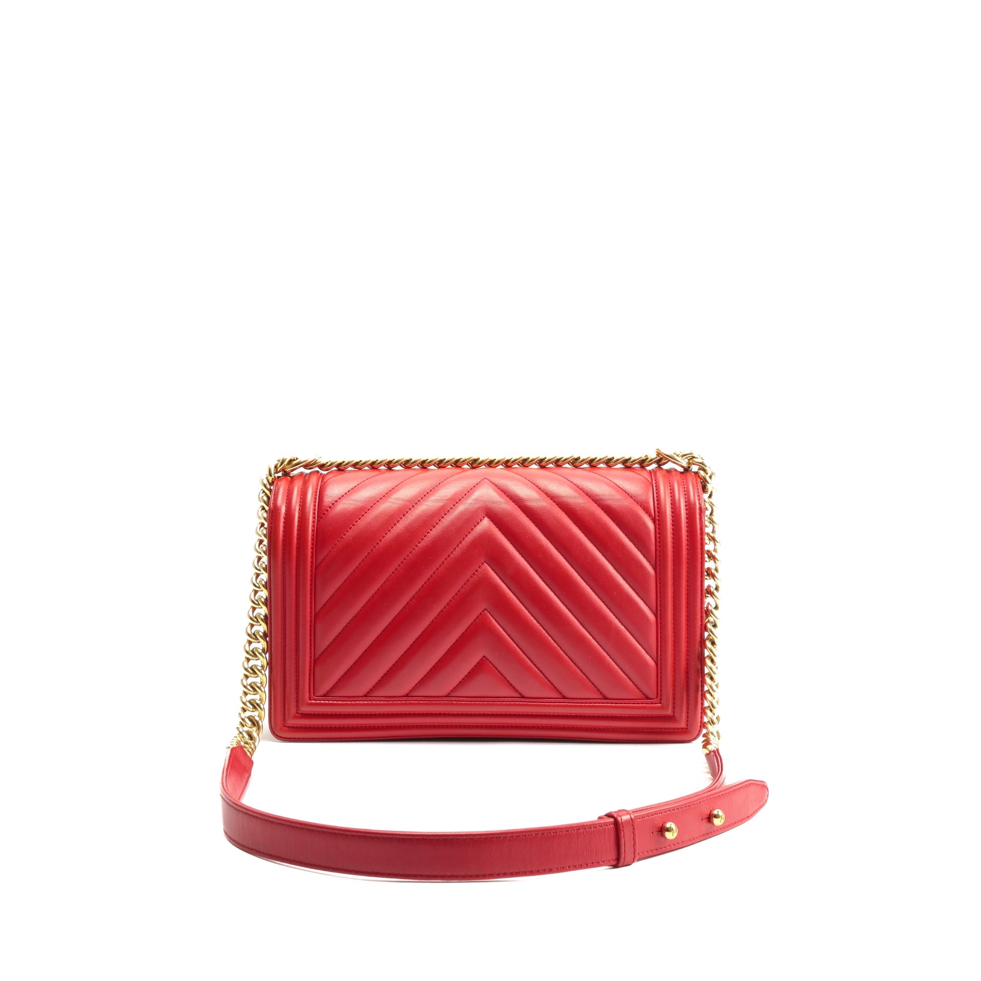 CHANEL 2017 Boy Bag Medium Chevron - Red w/Gold