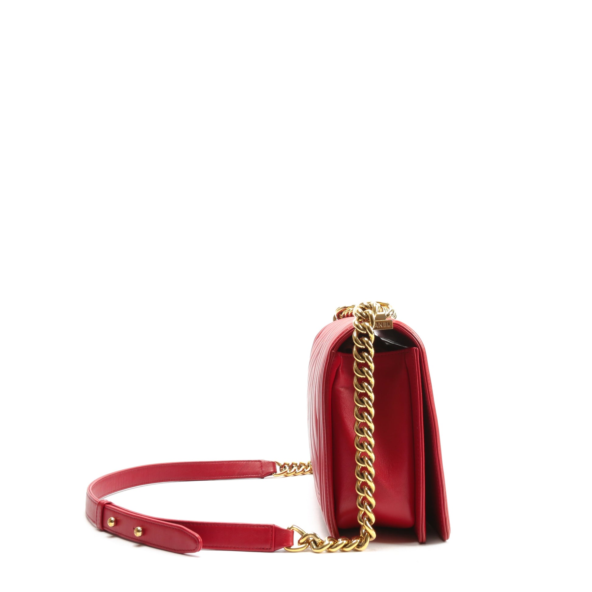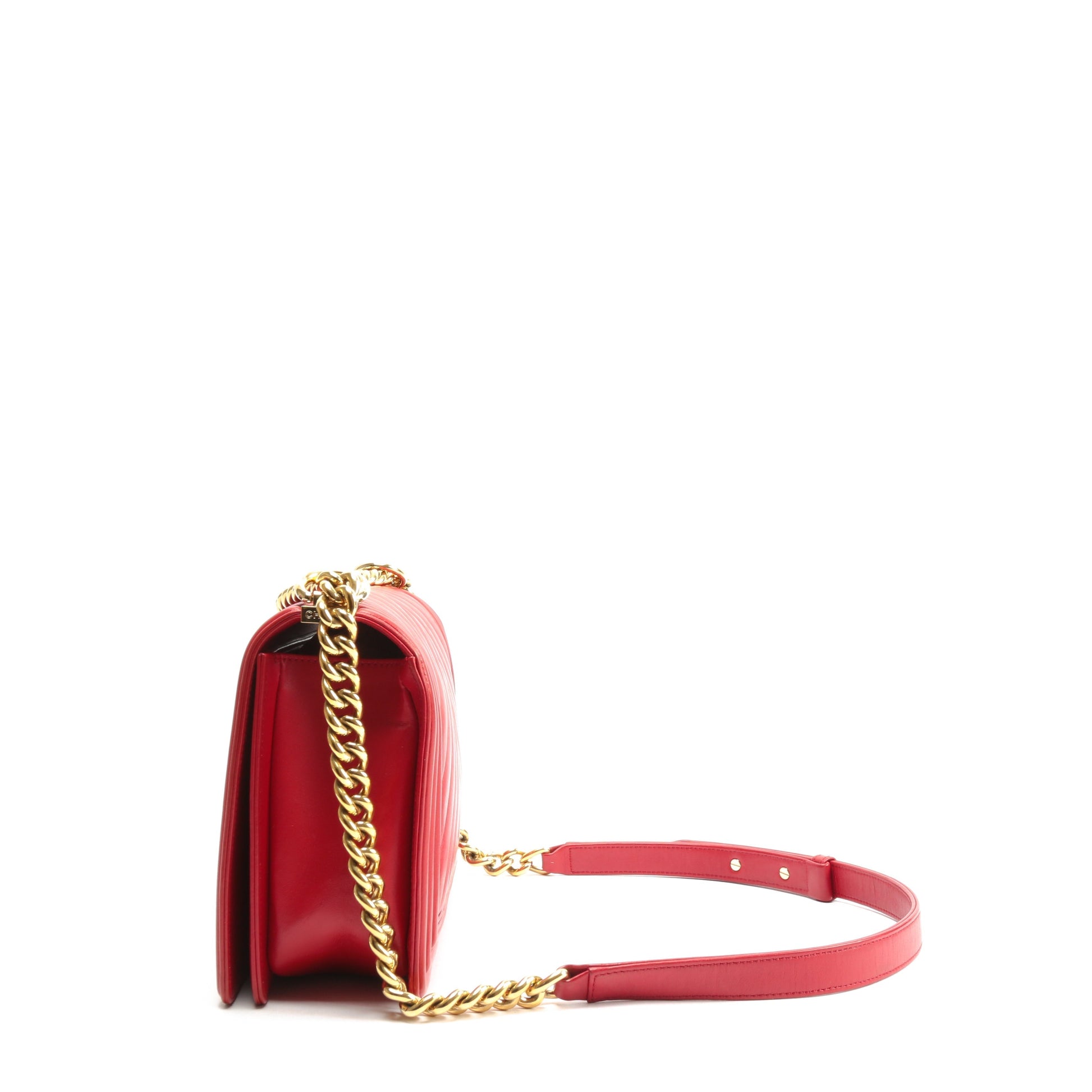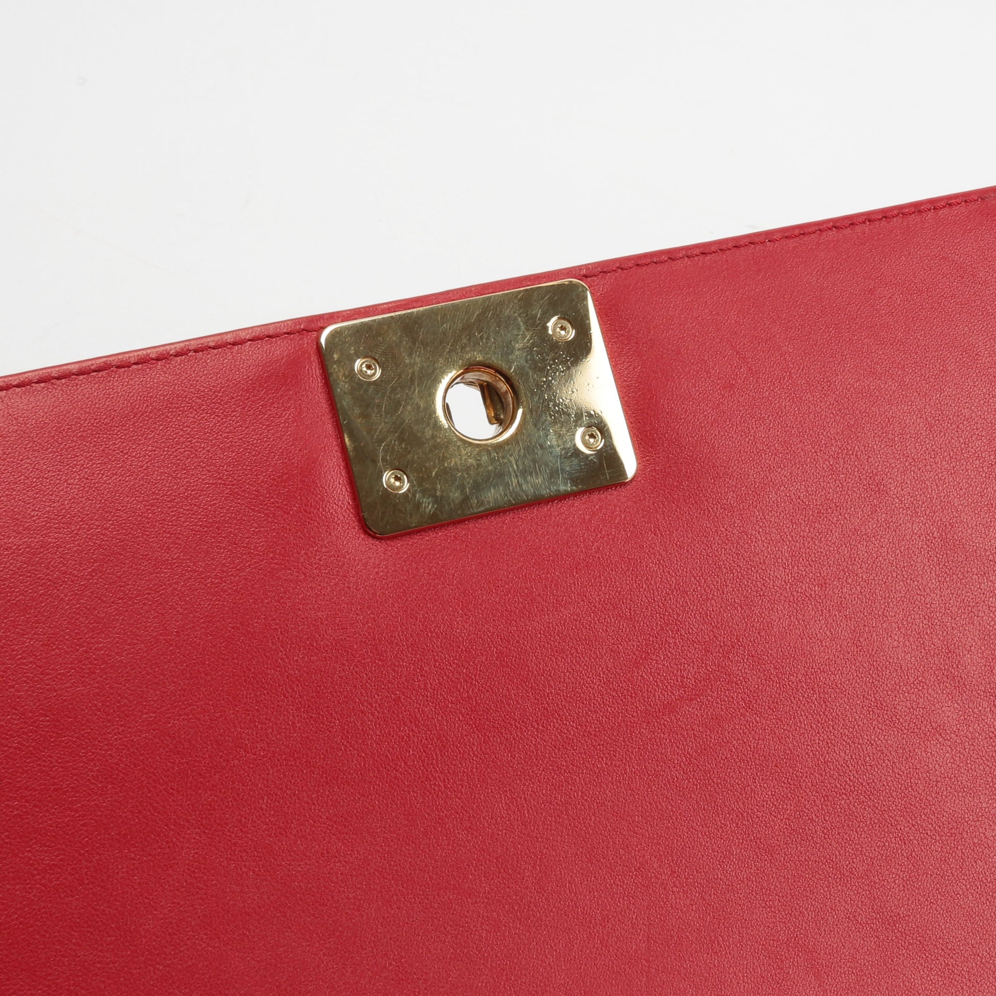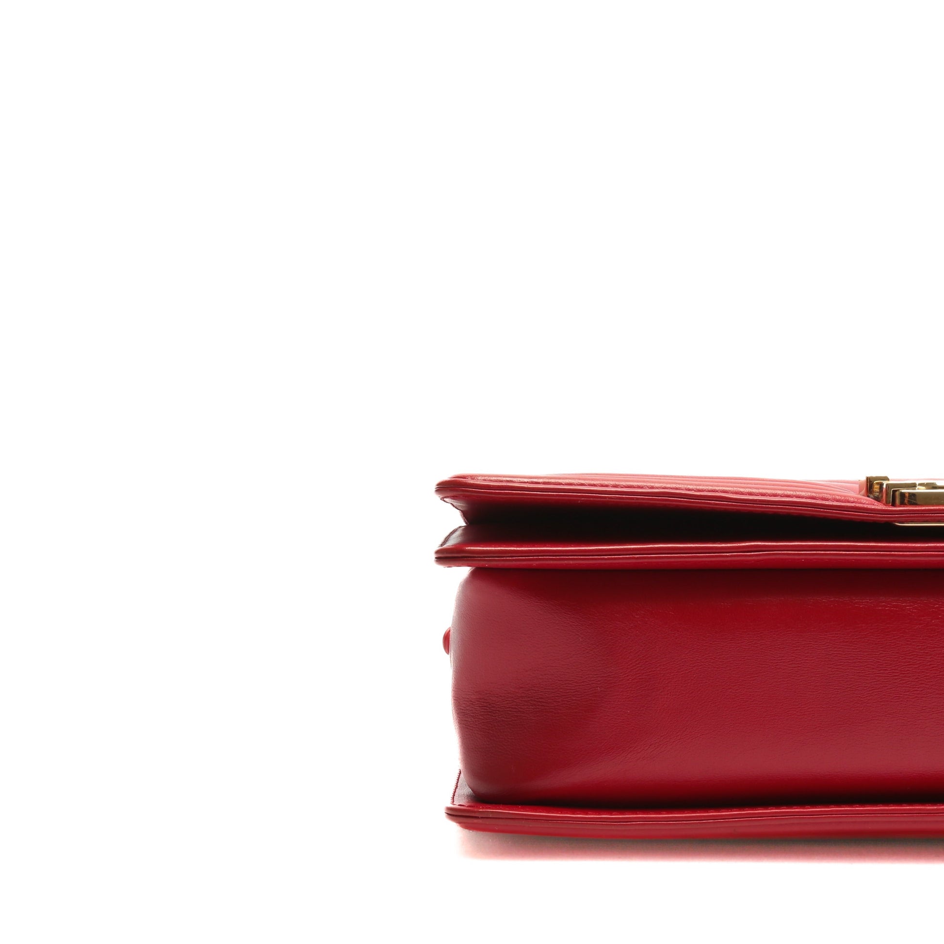 CHANEL 2017 Boy Bag Medium Chevron - Red w/Gold