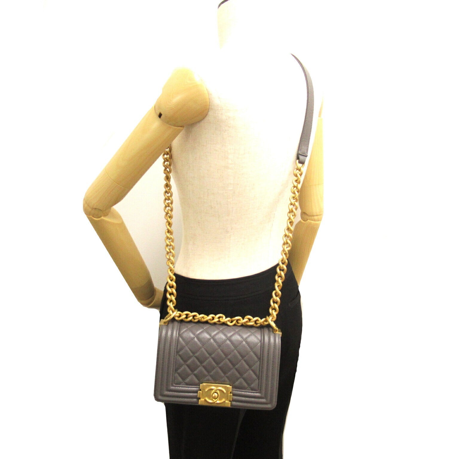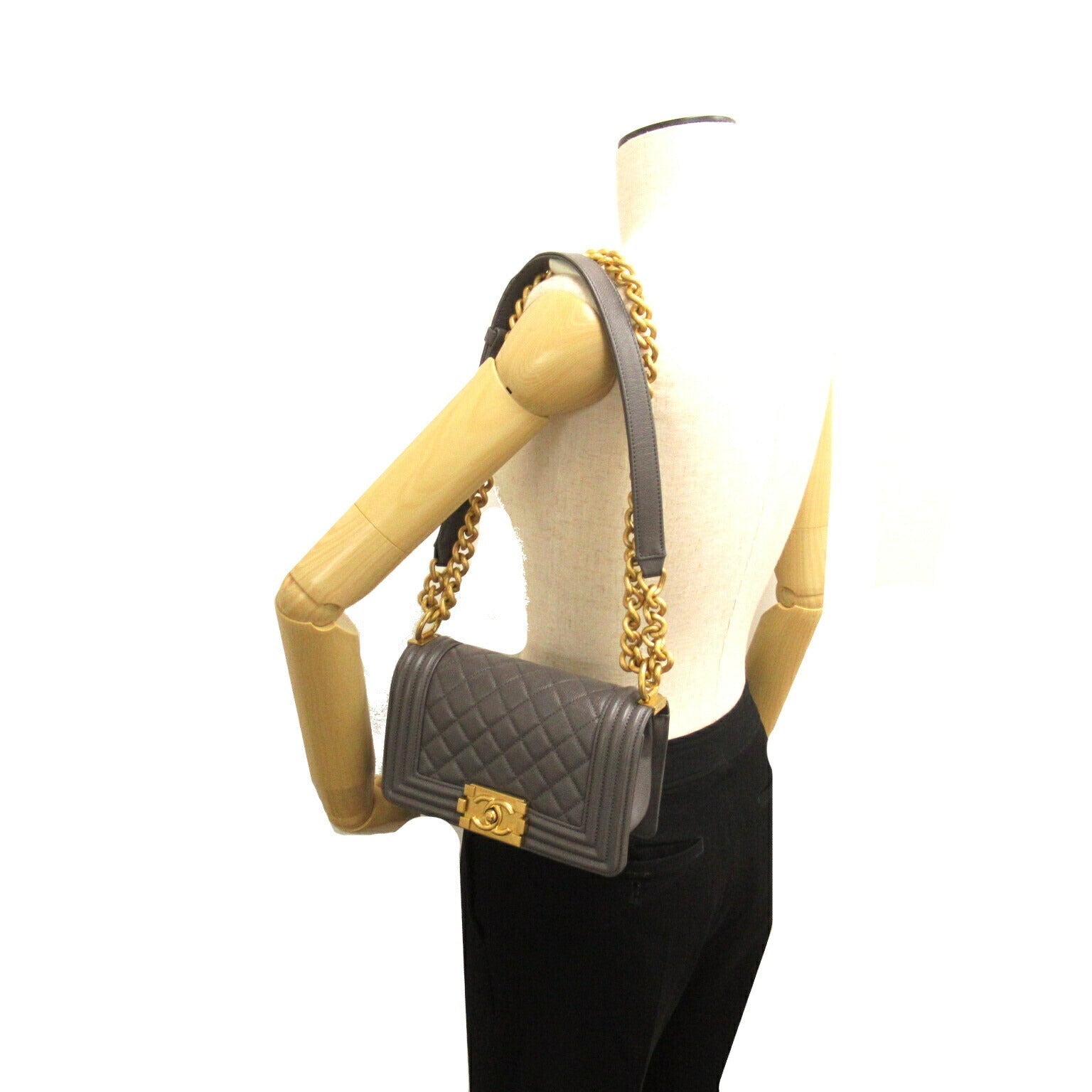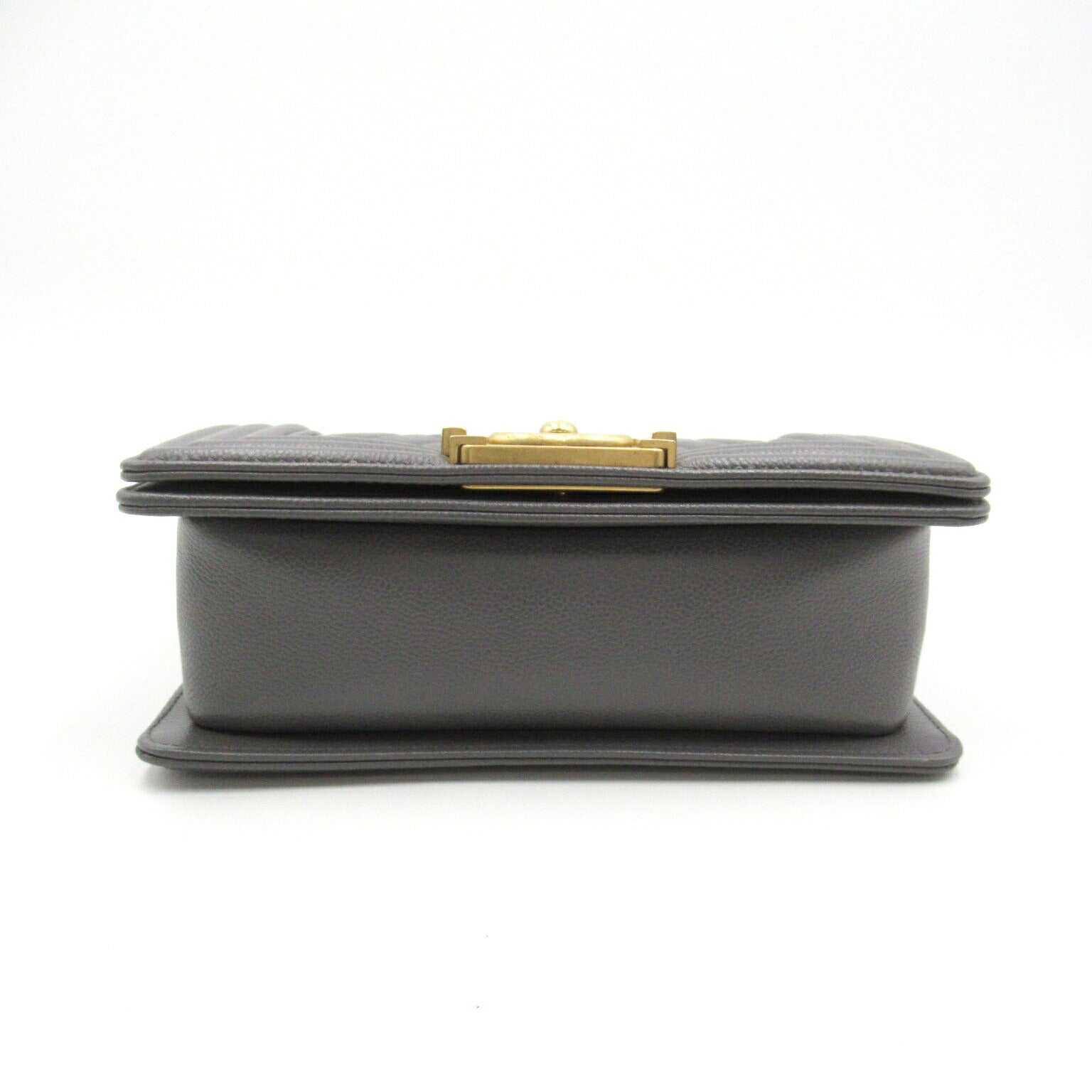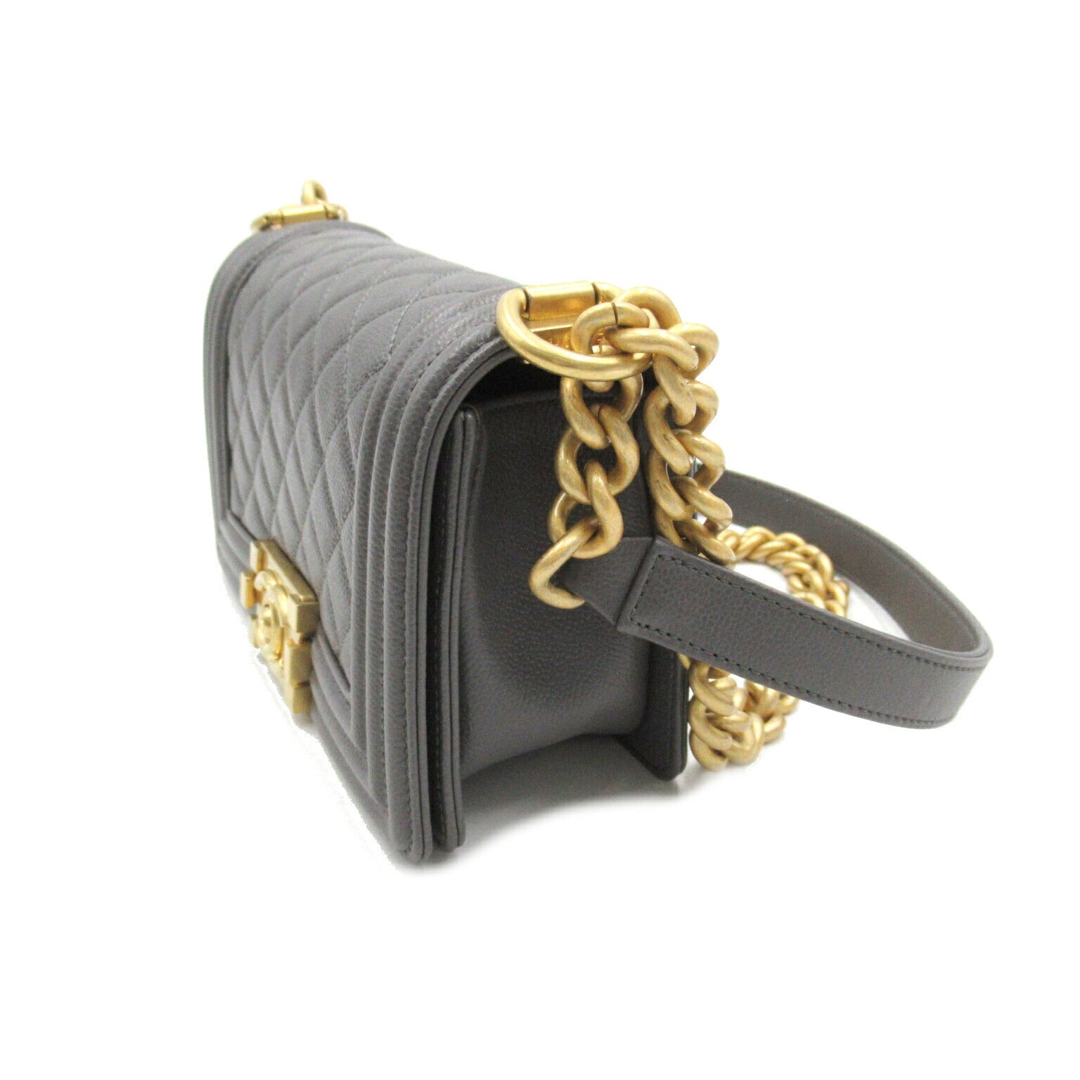 Chanel Boy Caviar Chain Shoulder Bag Gray