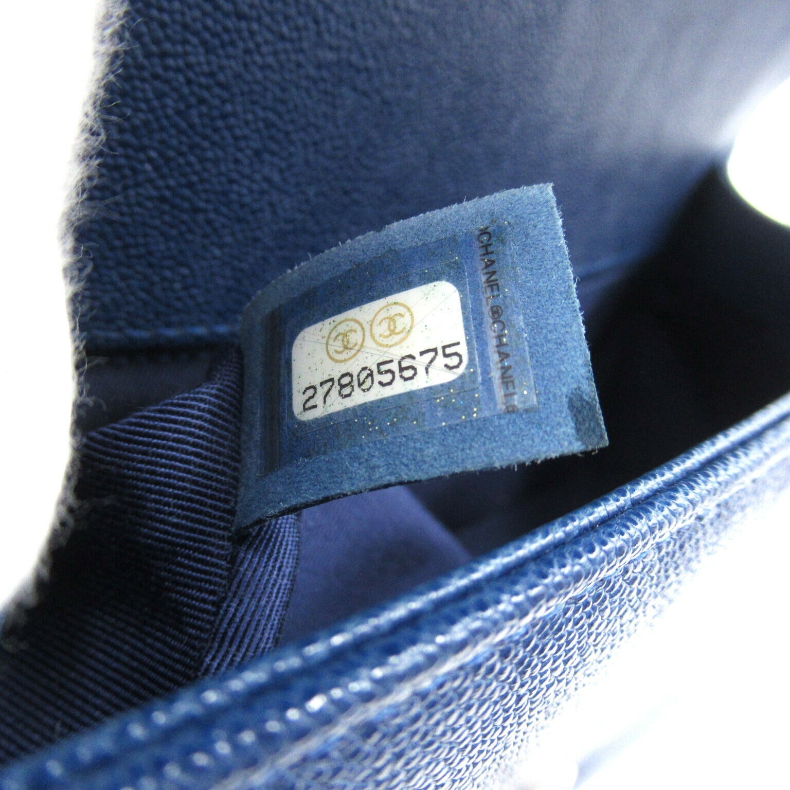 Chanel Boy Caviar Skin Chain Shoulder Bag Blue