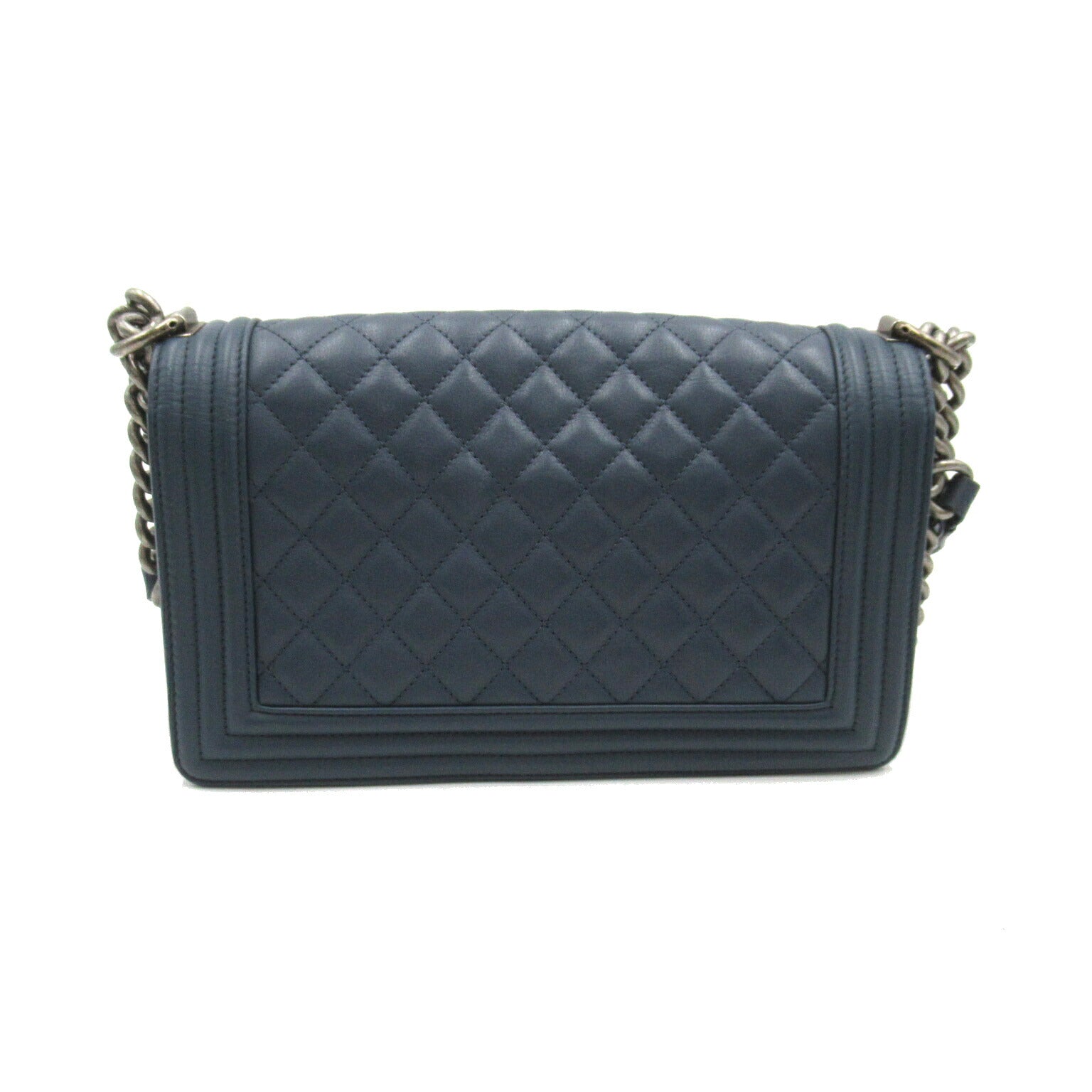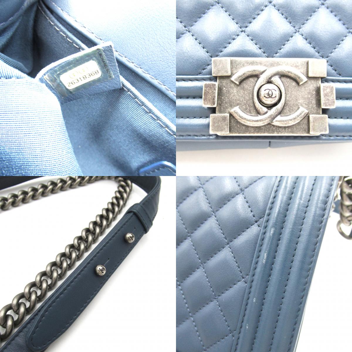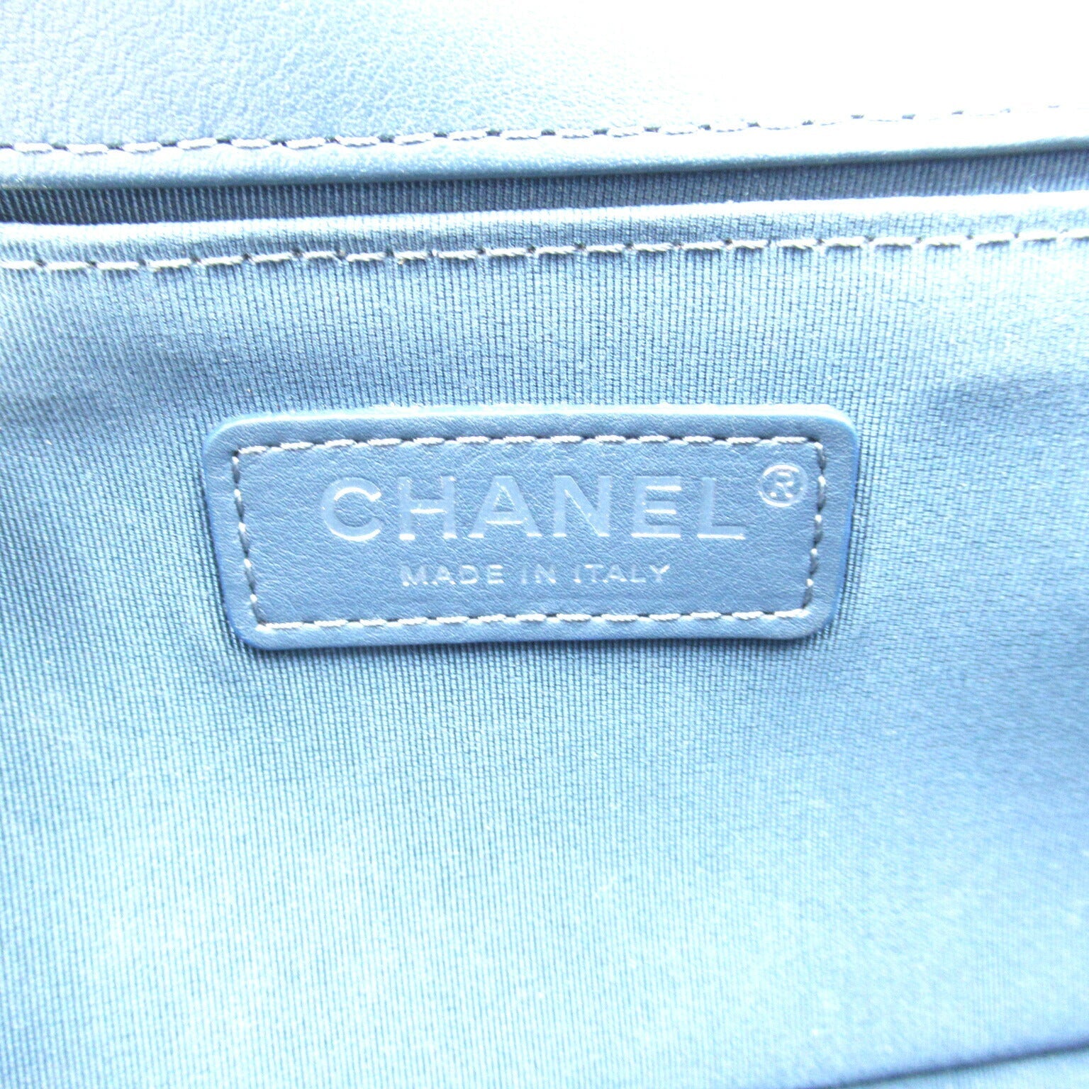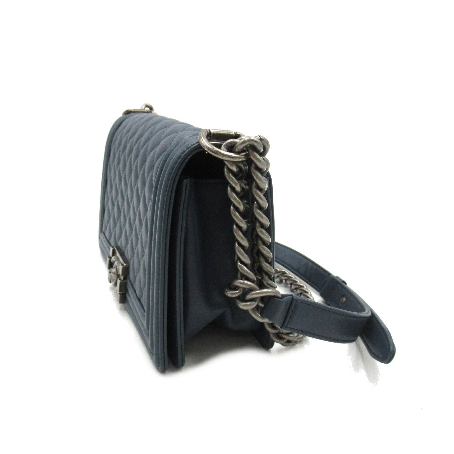Chanel Boy Chain Shoulder Bag Leather Blue