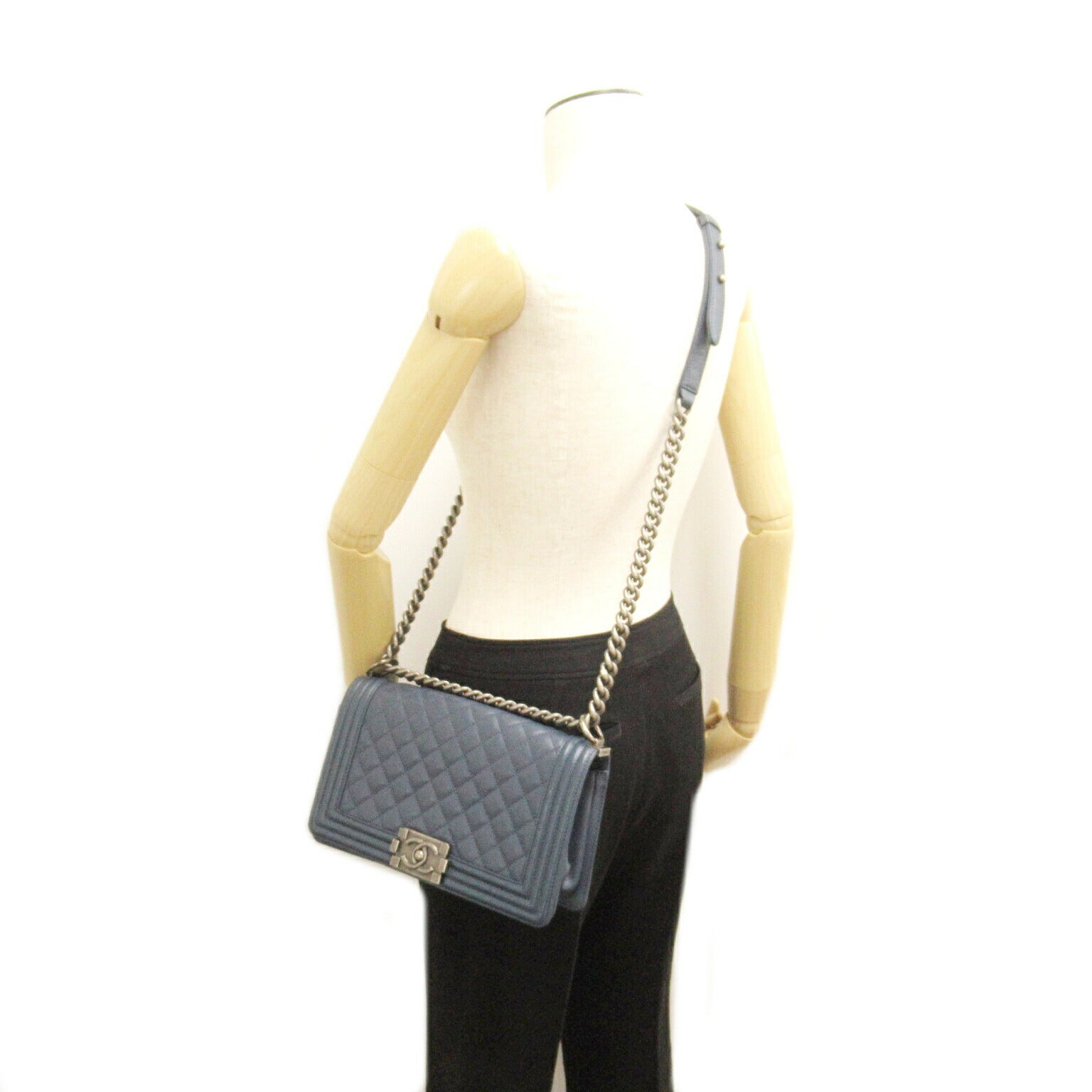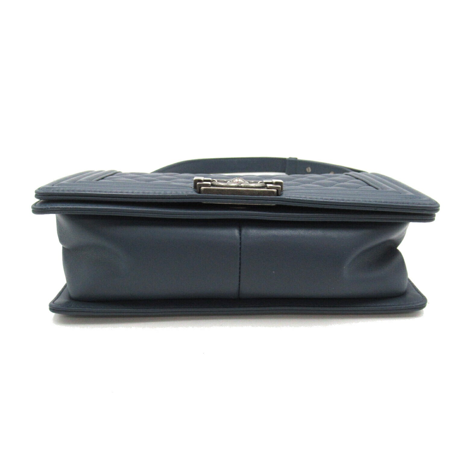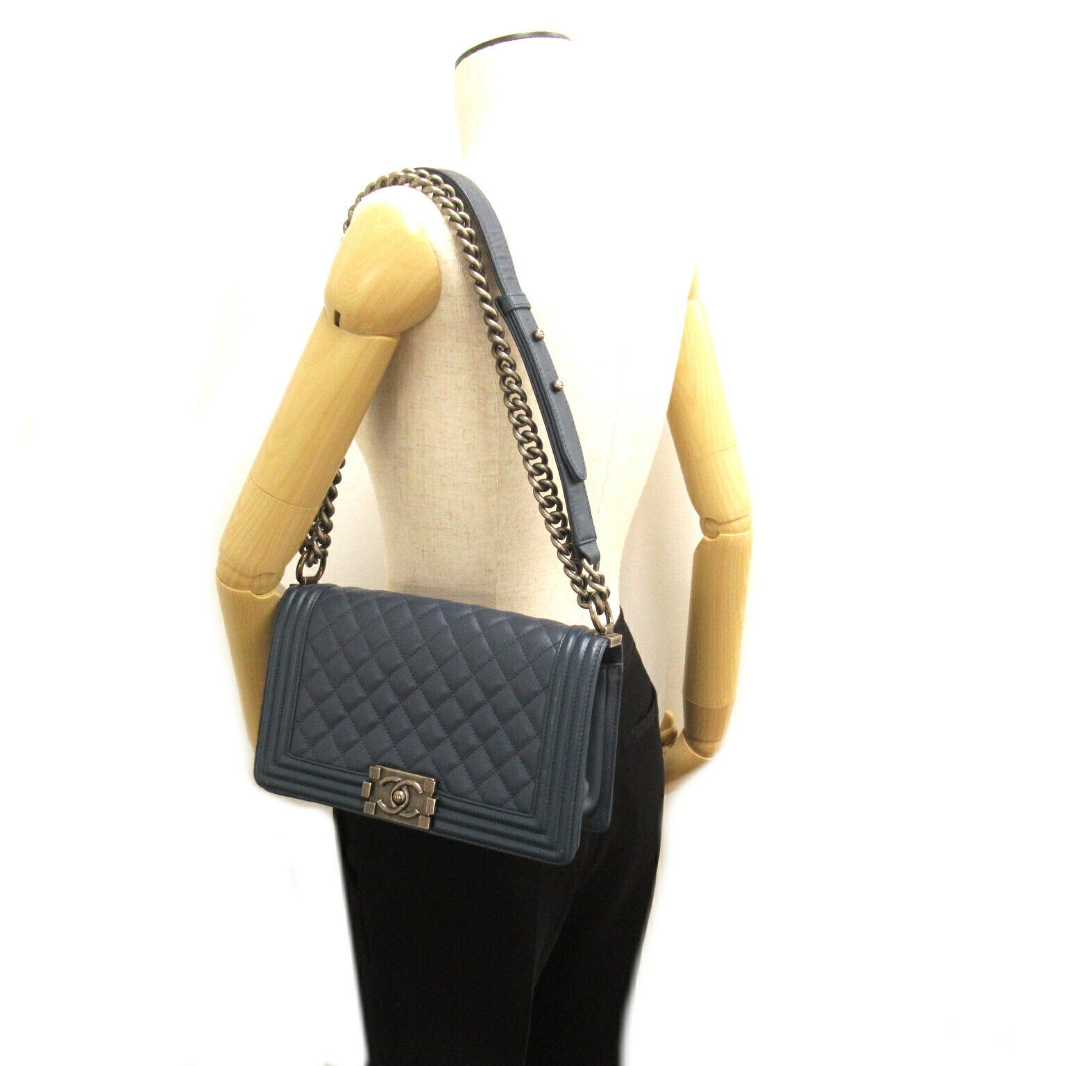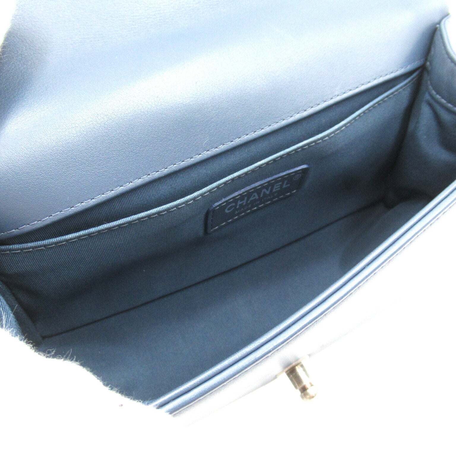 Chanel Boy Chain Shoulder Bag Leather Blue