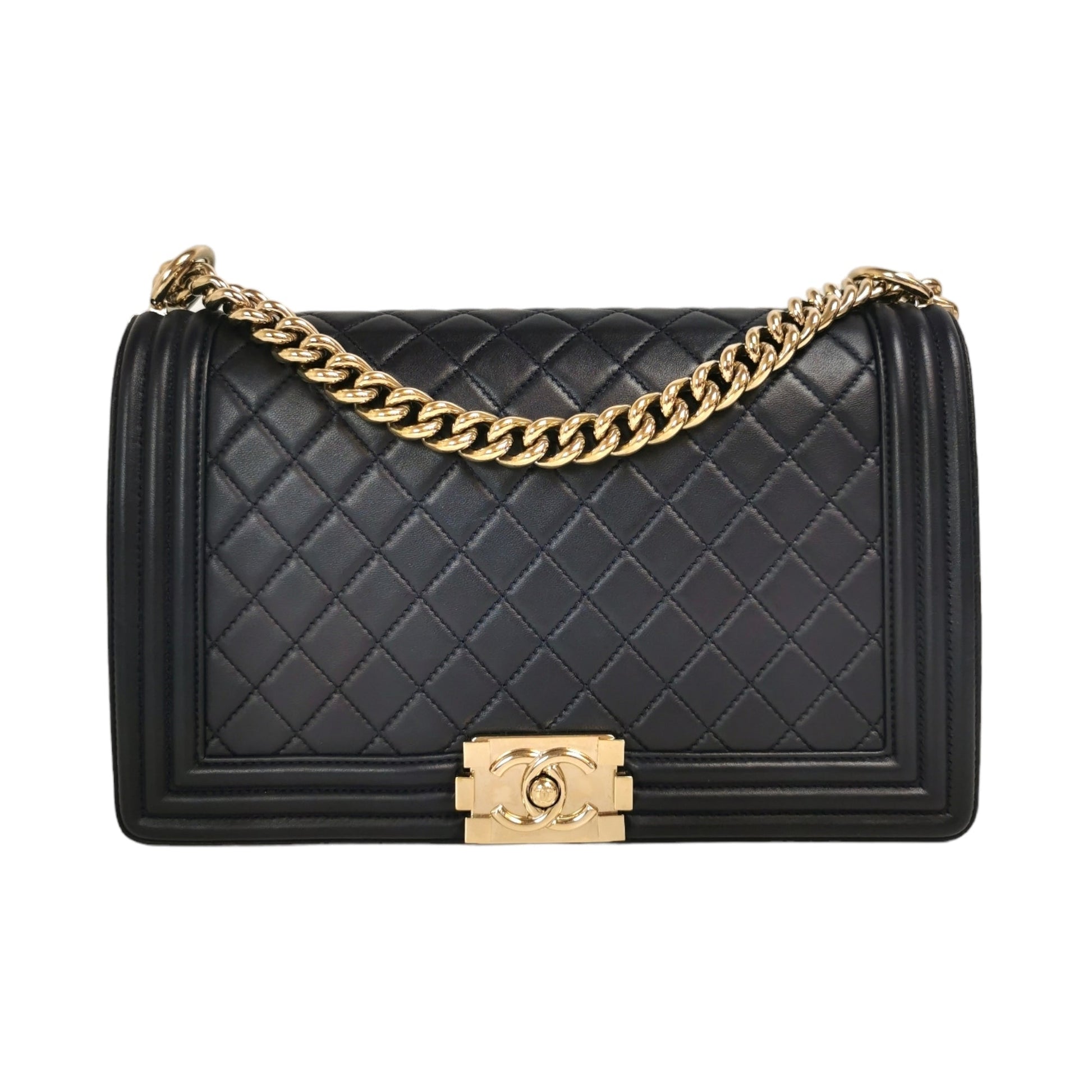 Chanel Boy Large Navy Blue Lambskin Gold