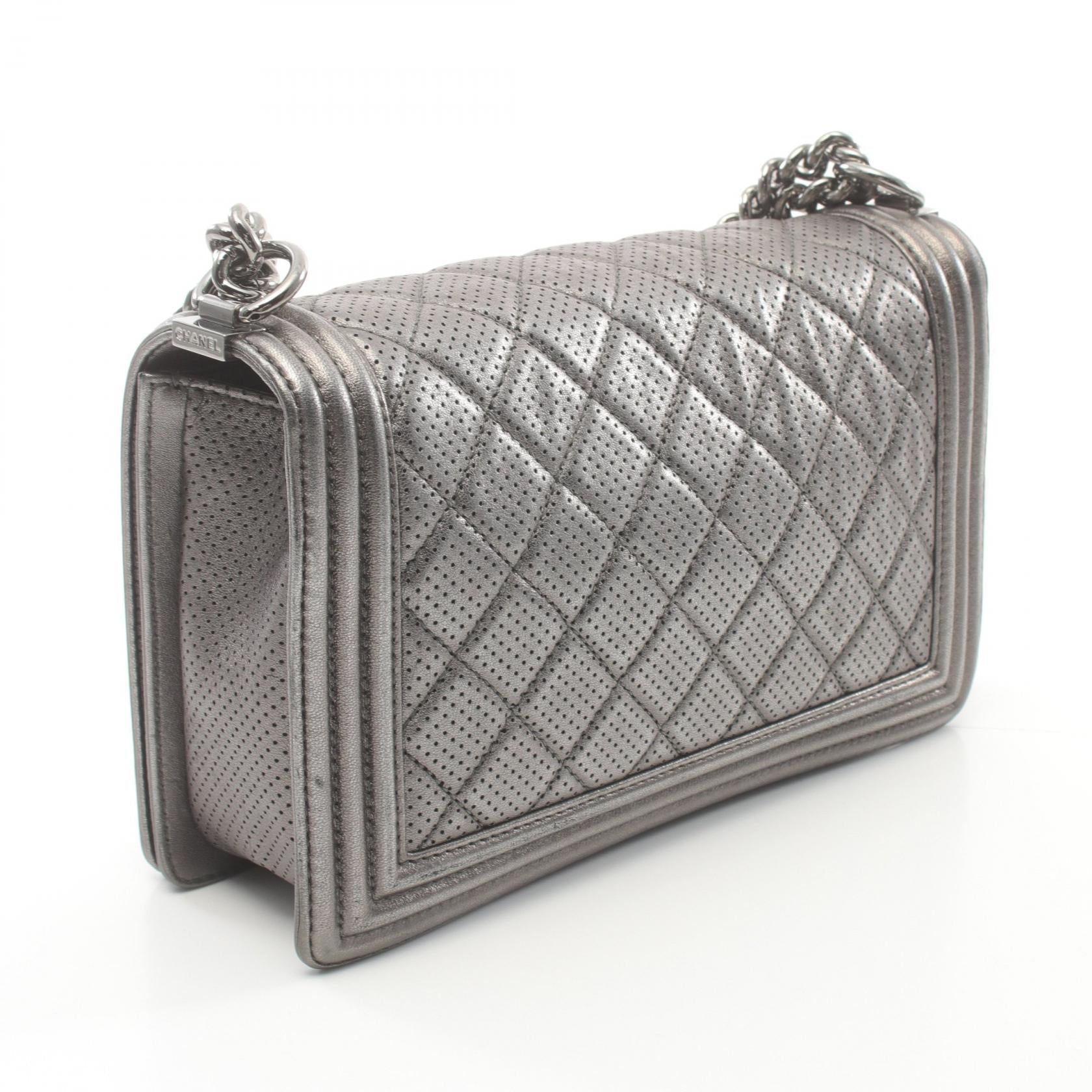 Item name : Chanel Boy Leather Shoulder Bag Silver