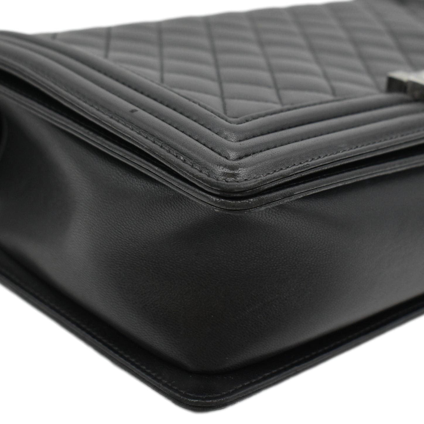CHANEL Quilted Leather Boy Flap Medium Shoulder Bag Black