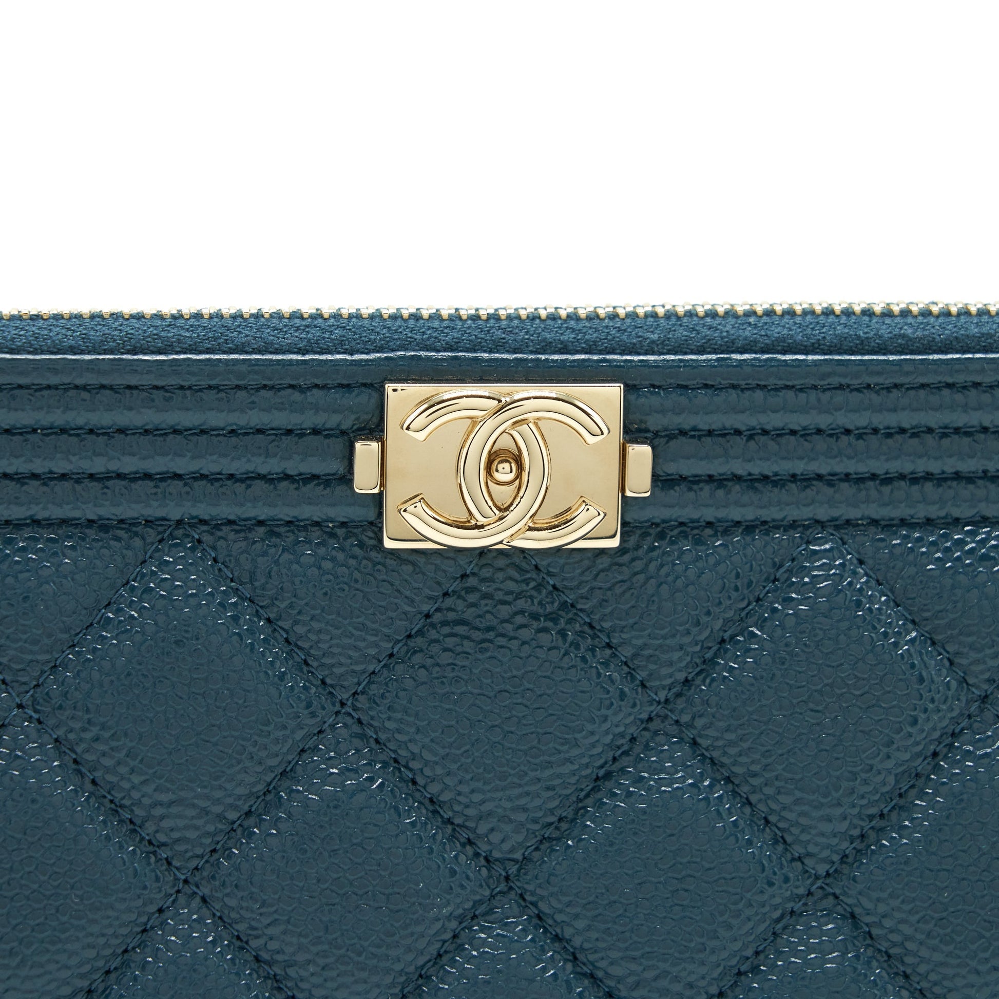 Chanel Boy Pouch Caviar Dark Green LGHW