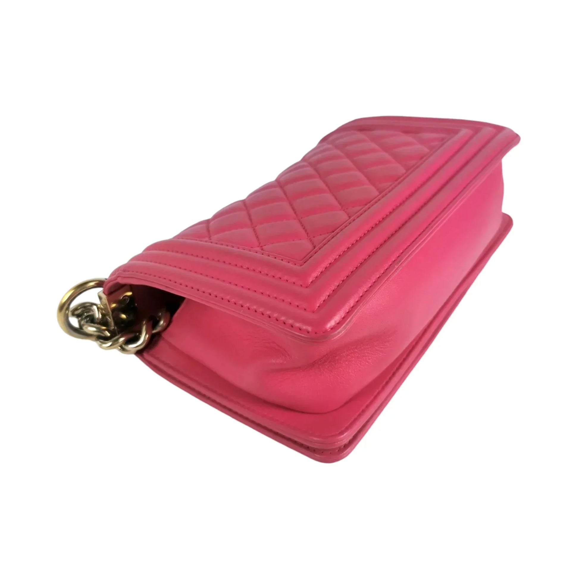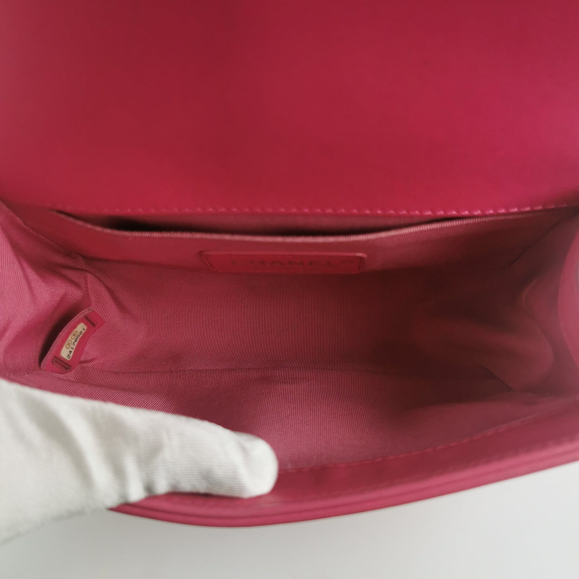The Chanel Boy Bag was created by Karl Lagerfeld in 2011. The name bears the Bag in honor of Arthur "Boy" Capel, the childhood sweetheart of Coco Chanel. It is already one of the classics and impresses above all with its clean lines and simple elegance. The interior is lined with fine textile and has an open compartment.