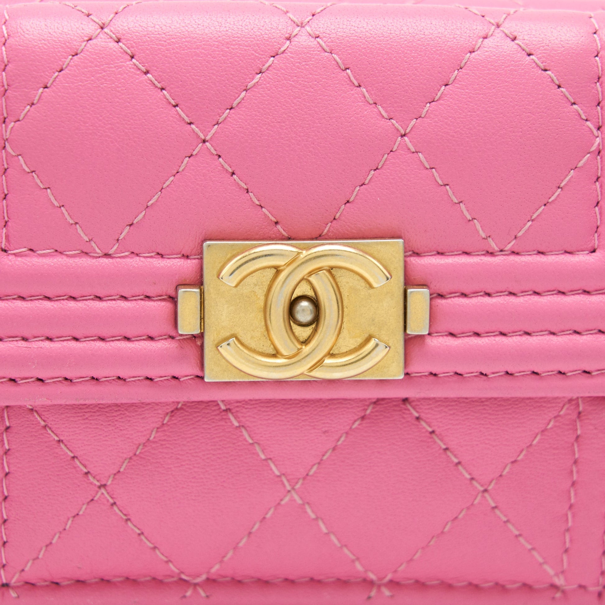 Chanel Boy Small Wallet Pink Brushed Lambskin GHW