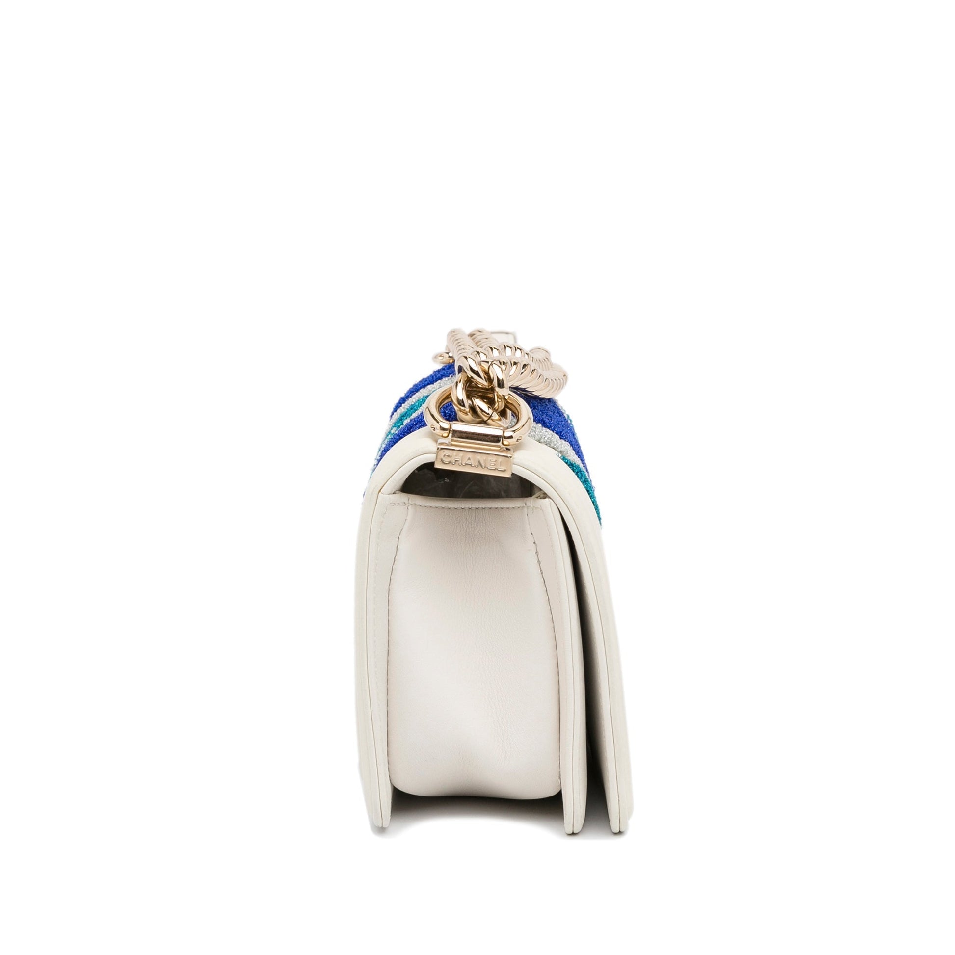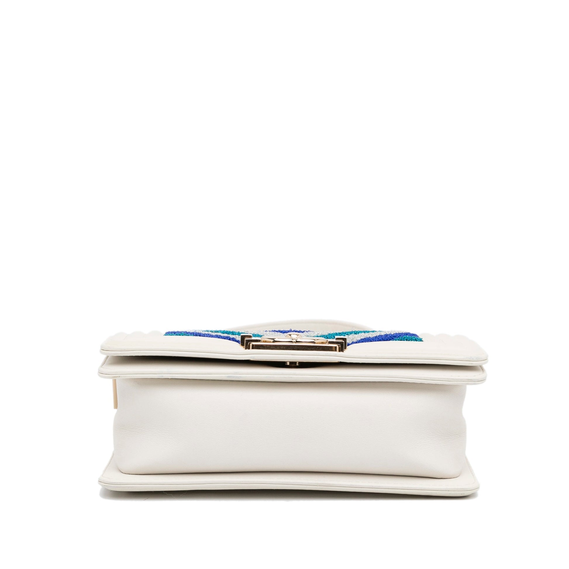 Chanel Boy Small White Embroidered Lurex Chevron Lambskin Gold