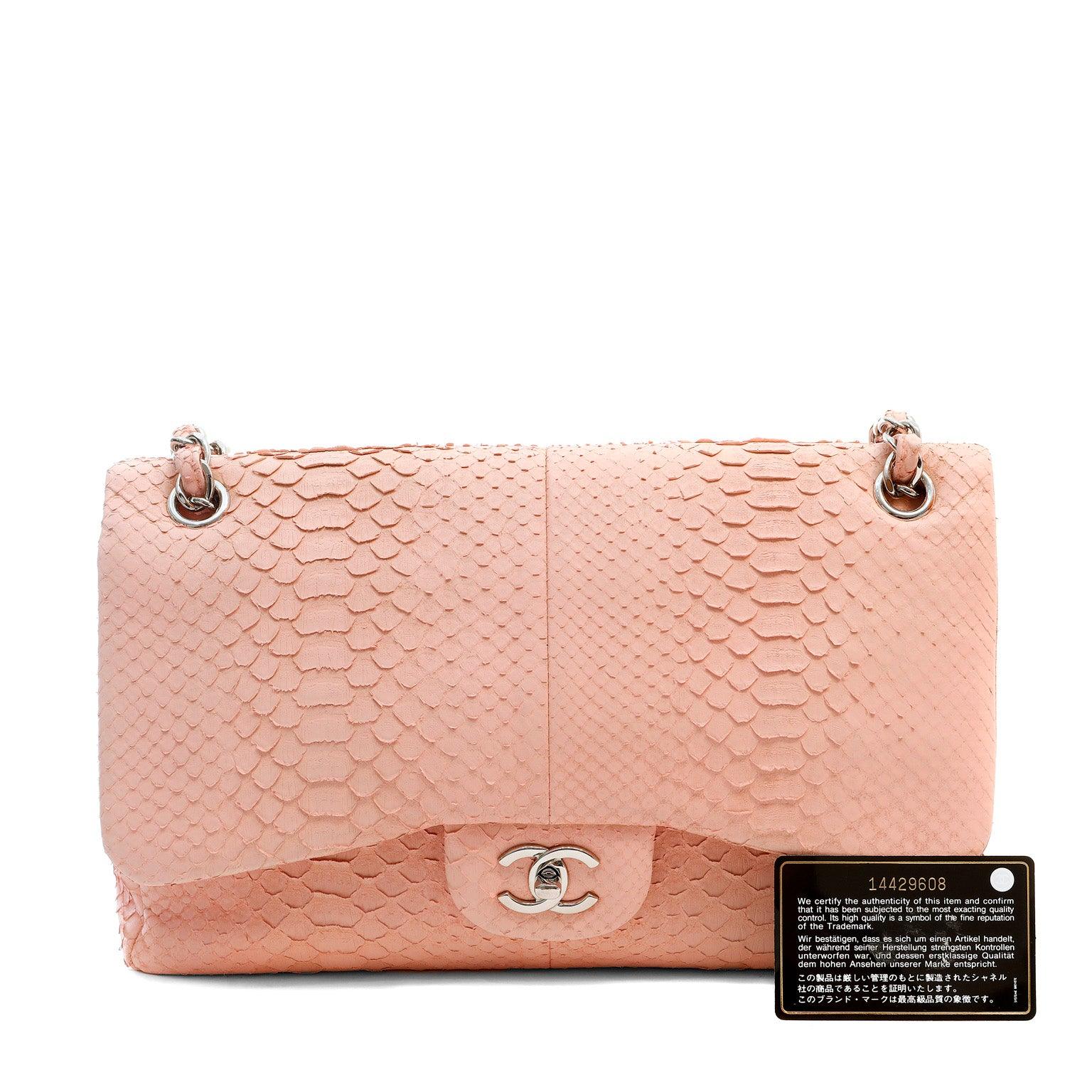 This Chanel Pink Python Jumbo Classic is in excellent condition. No longer in production, exotic classics are highly collectible.