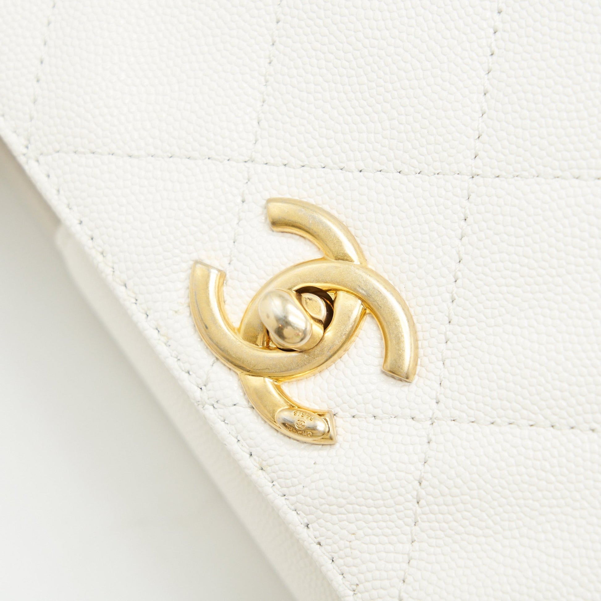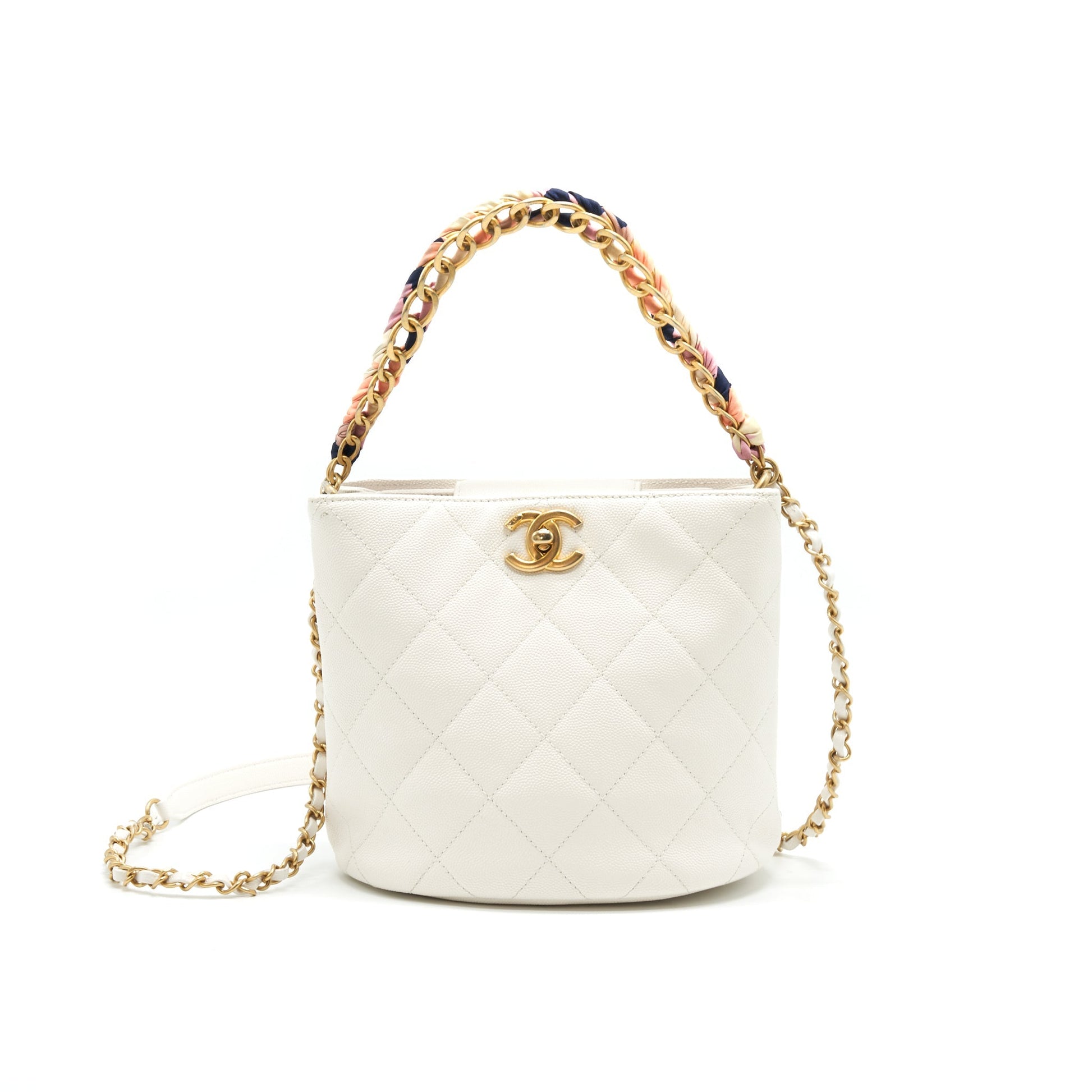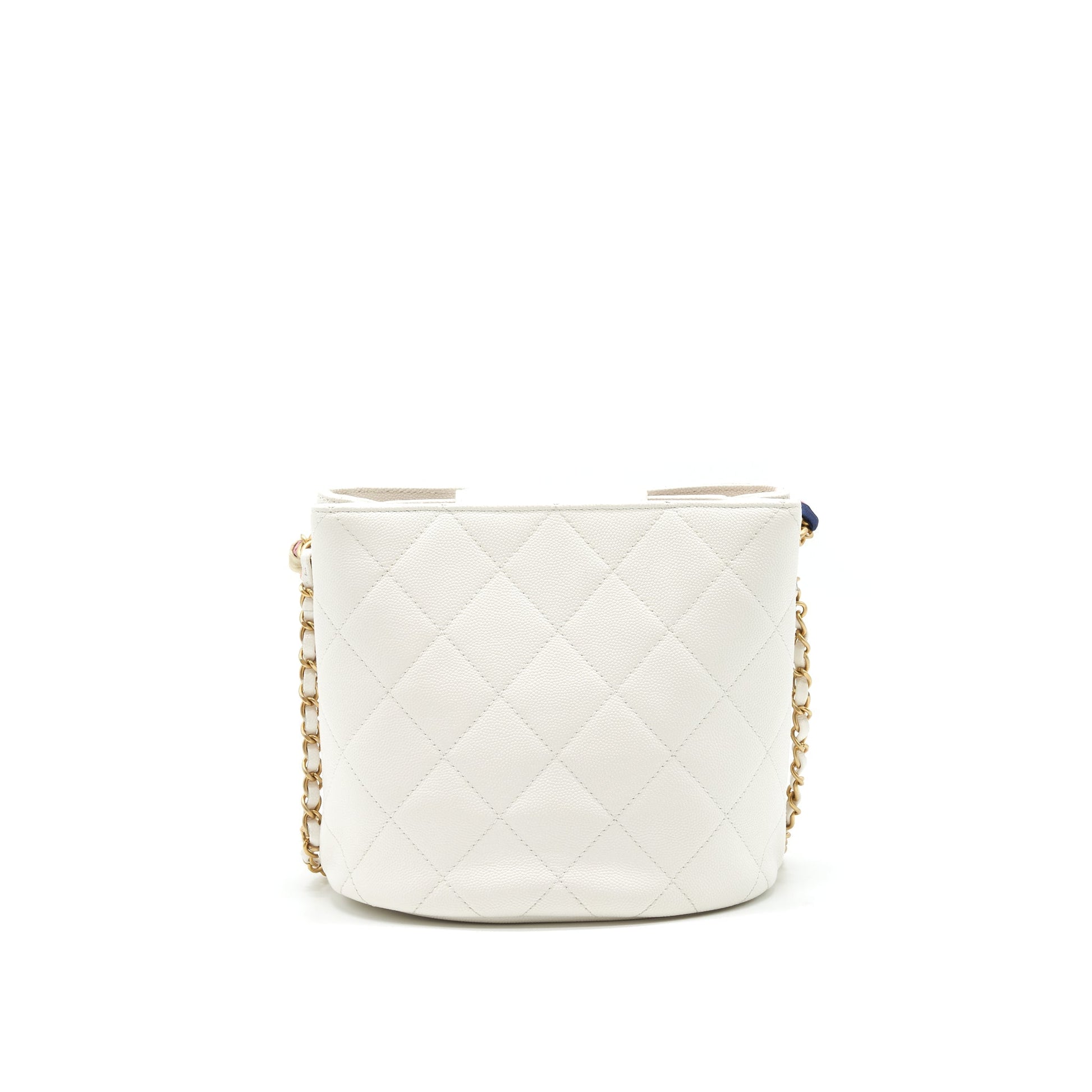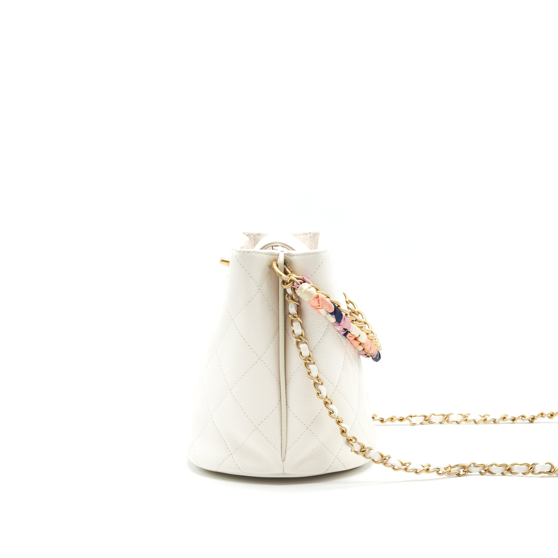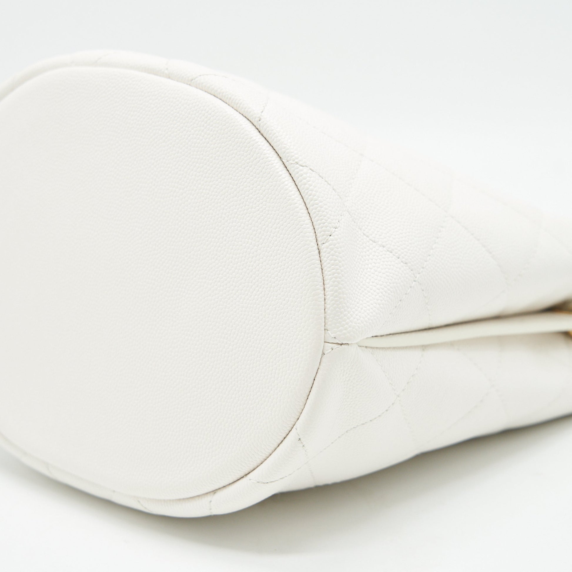 Chanel Bucket Bag With Chain Handle Caviar White GHW