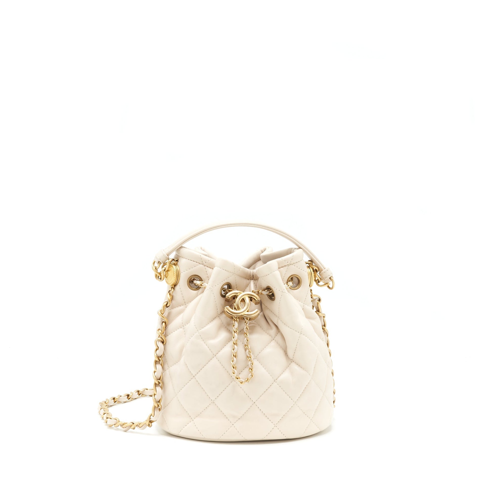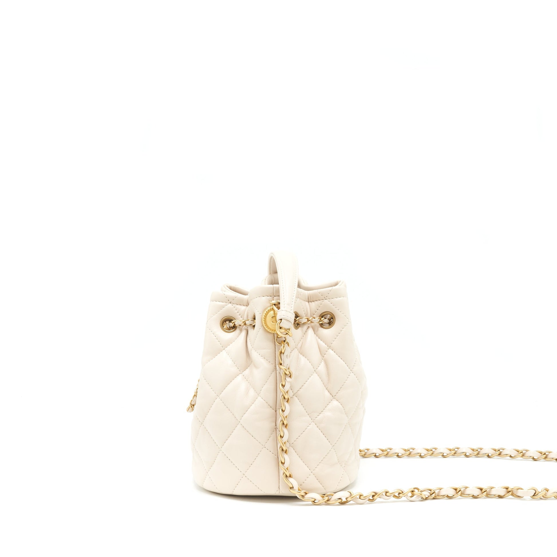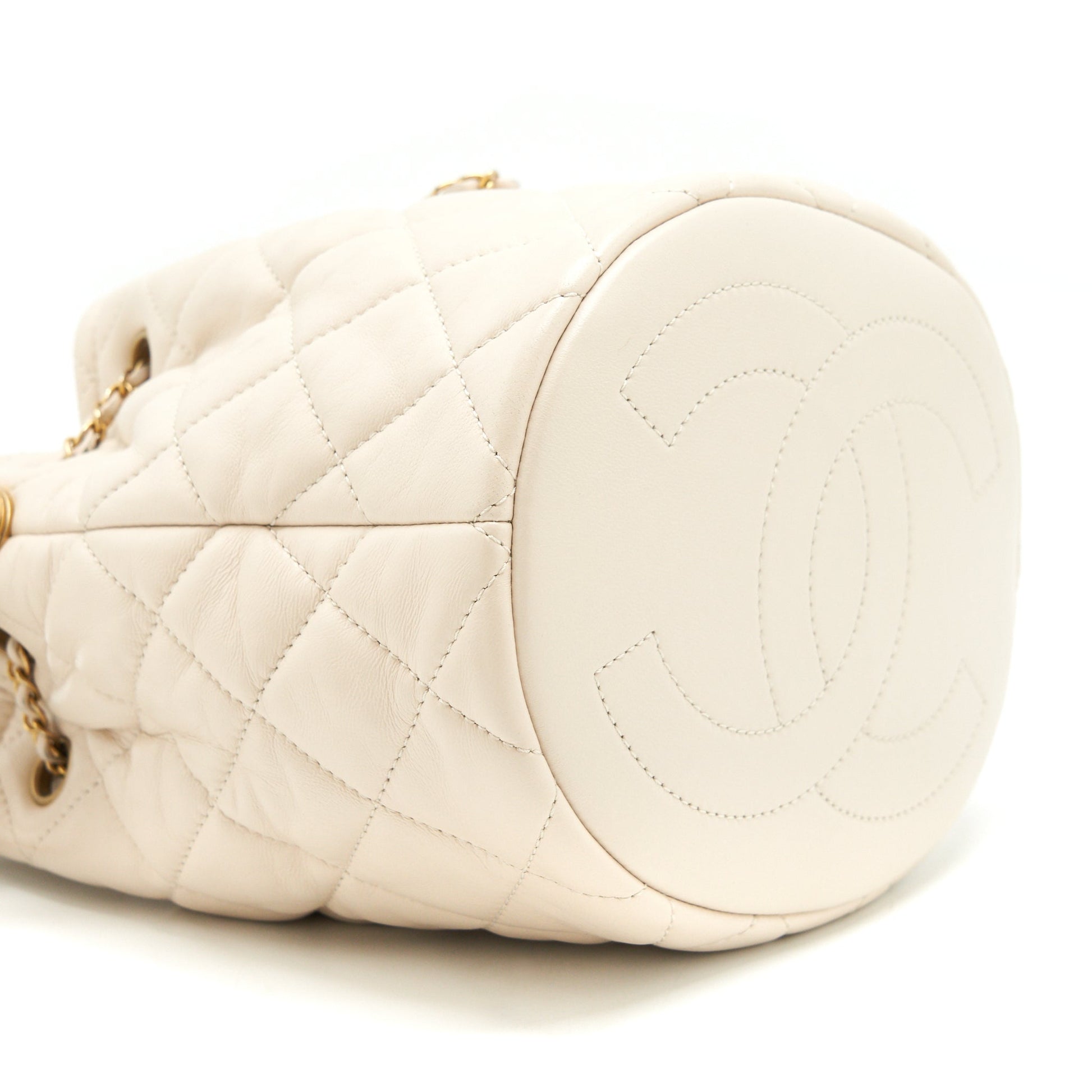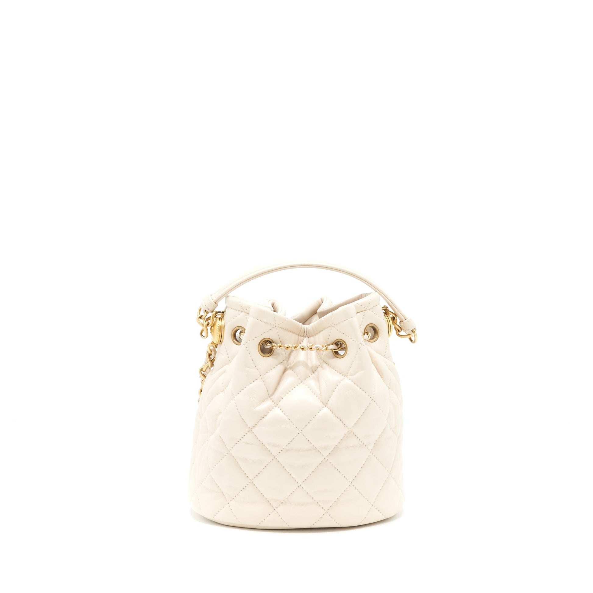 Chanel Button Bucket Crossbody Bag Lambskin White GHW