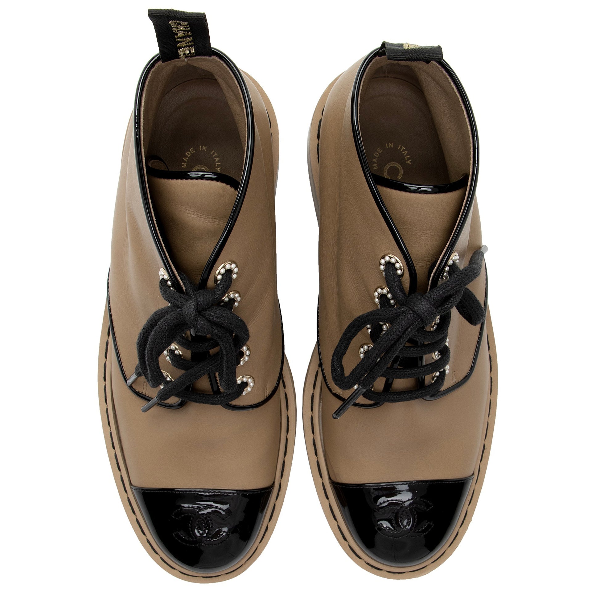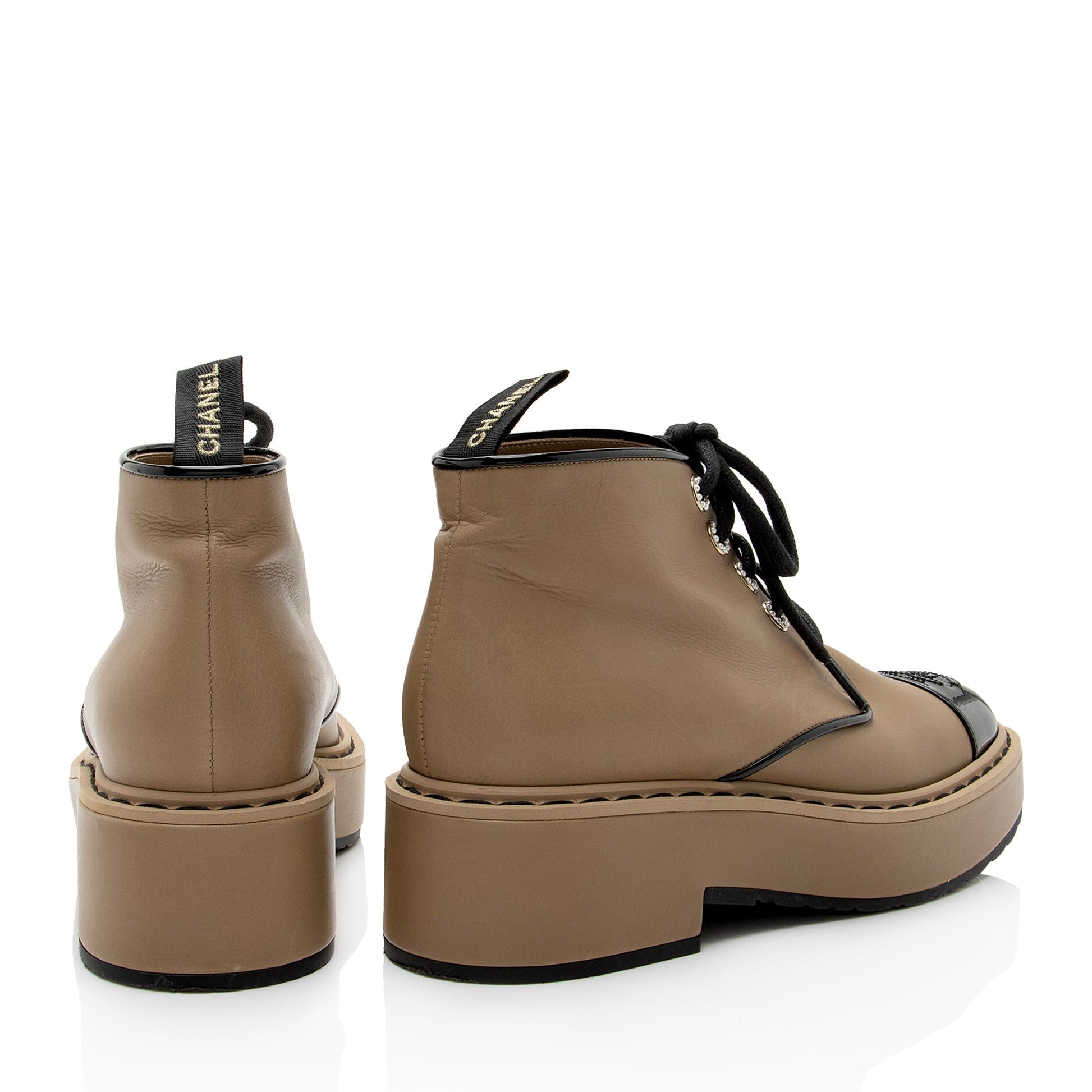 Chanel Calfskin CC Cap Toe Platform Ankle Boots - Size 9 / 39 (SHF-1C54SV)