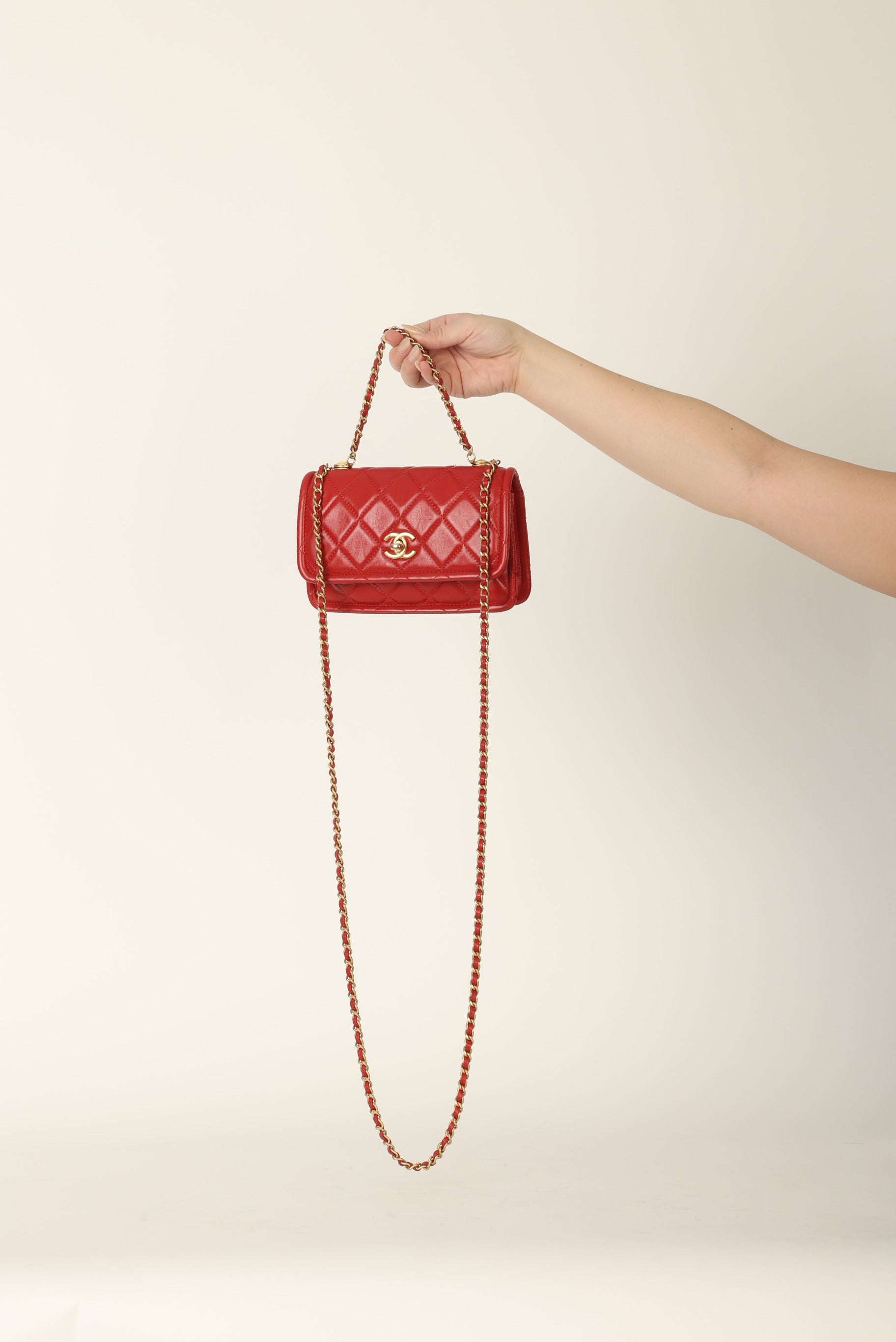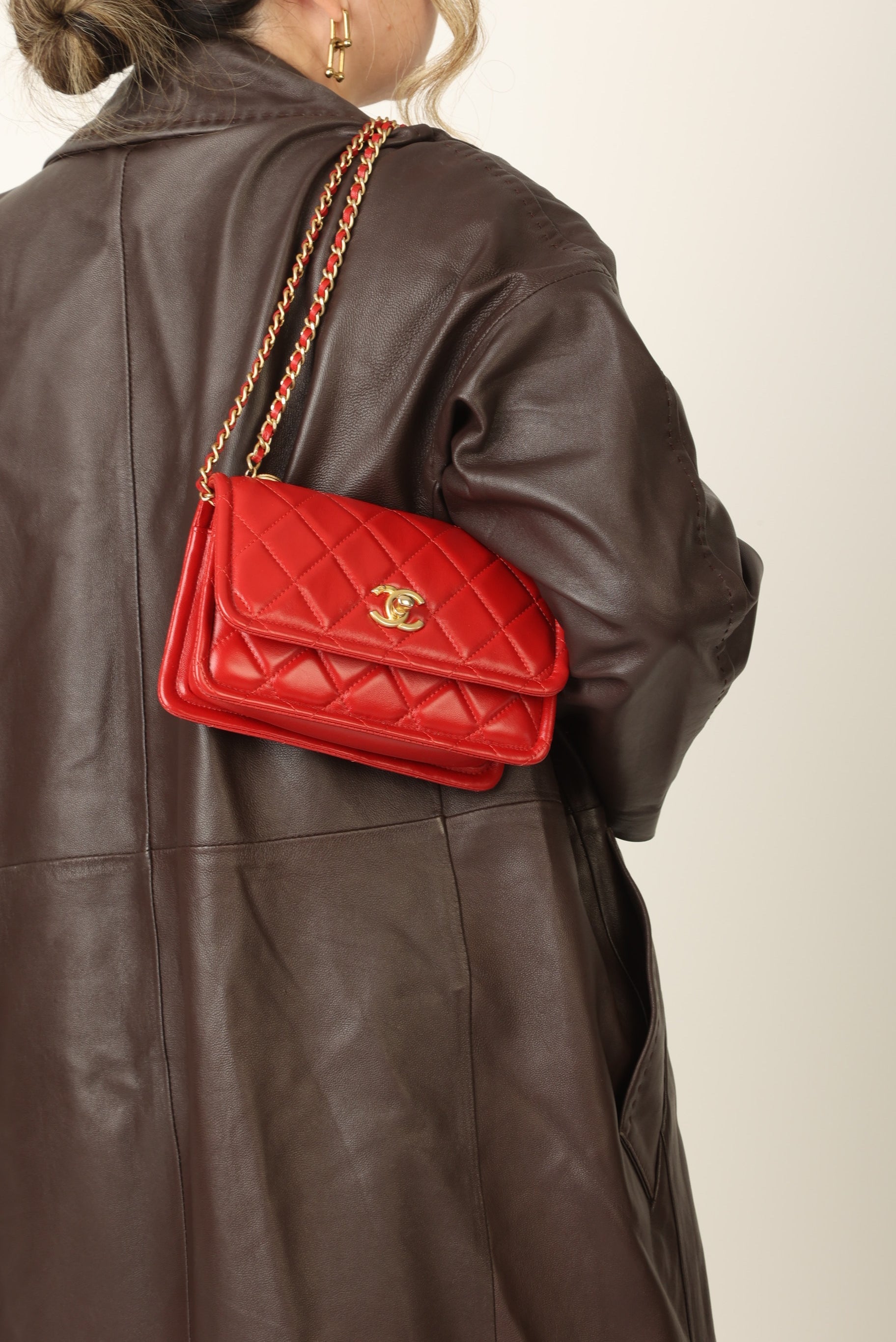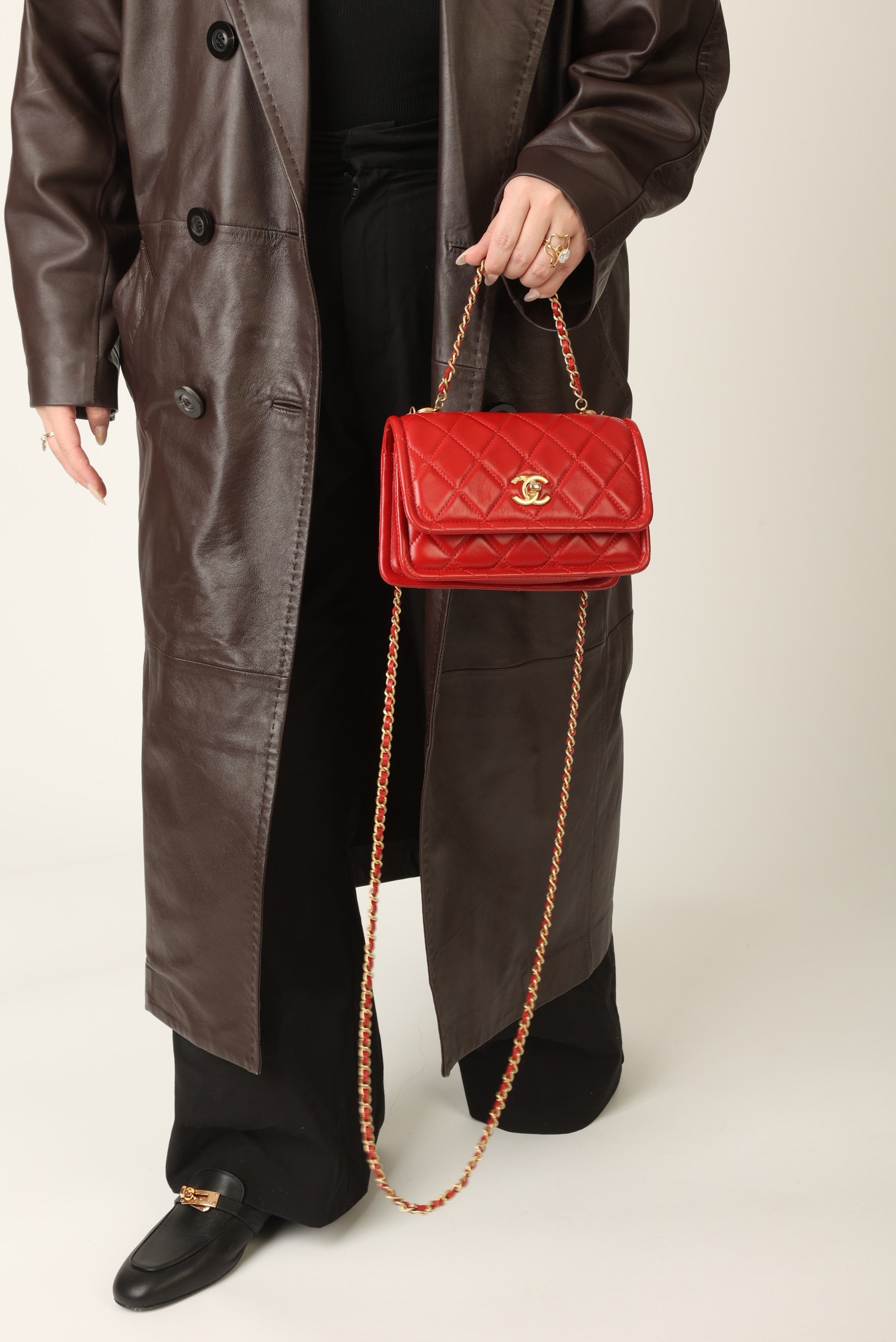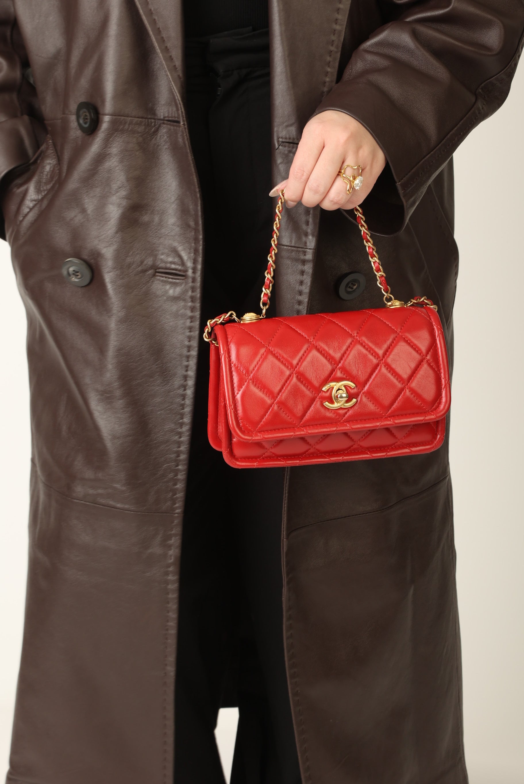 Dropping in the shop is a stunning Chanel Calfskin Chain Flap in cherry red with antique gold hardware. This bag gives vintage vibes without actually being vintage! The gorgeous red is such a stand out color and the details of the bag such as the chain top handle and two CC grommets on the top tie the whole bag together. You can wear this piece as a crossbody, top handle, or play around with the straps to turn it into a short shoulder bag. You can fit your phone, small wallet (or utilize the built-in card holders!), keys, and a few other smaller essentials.?