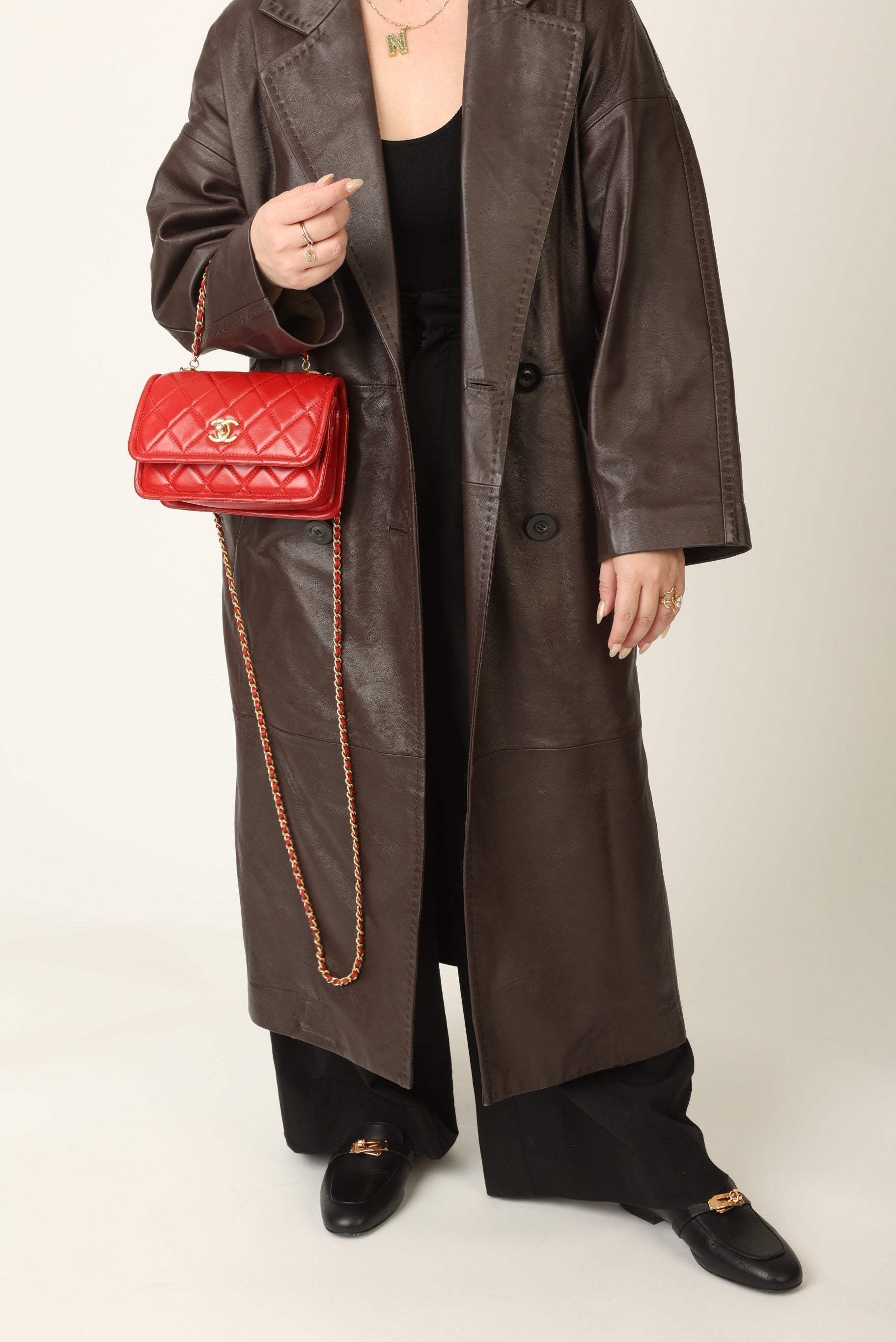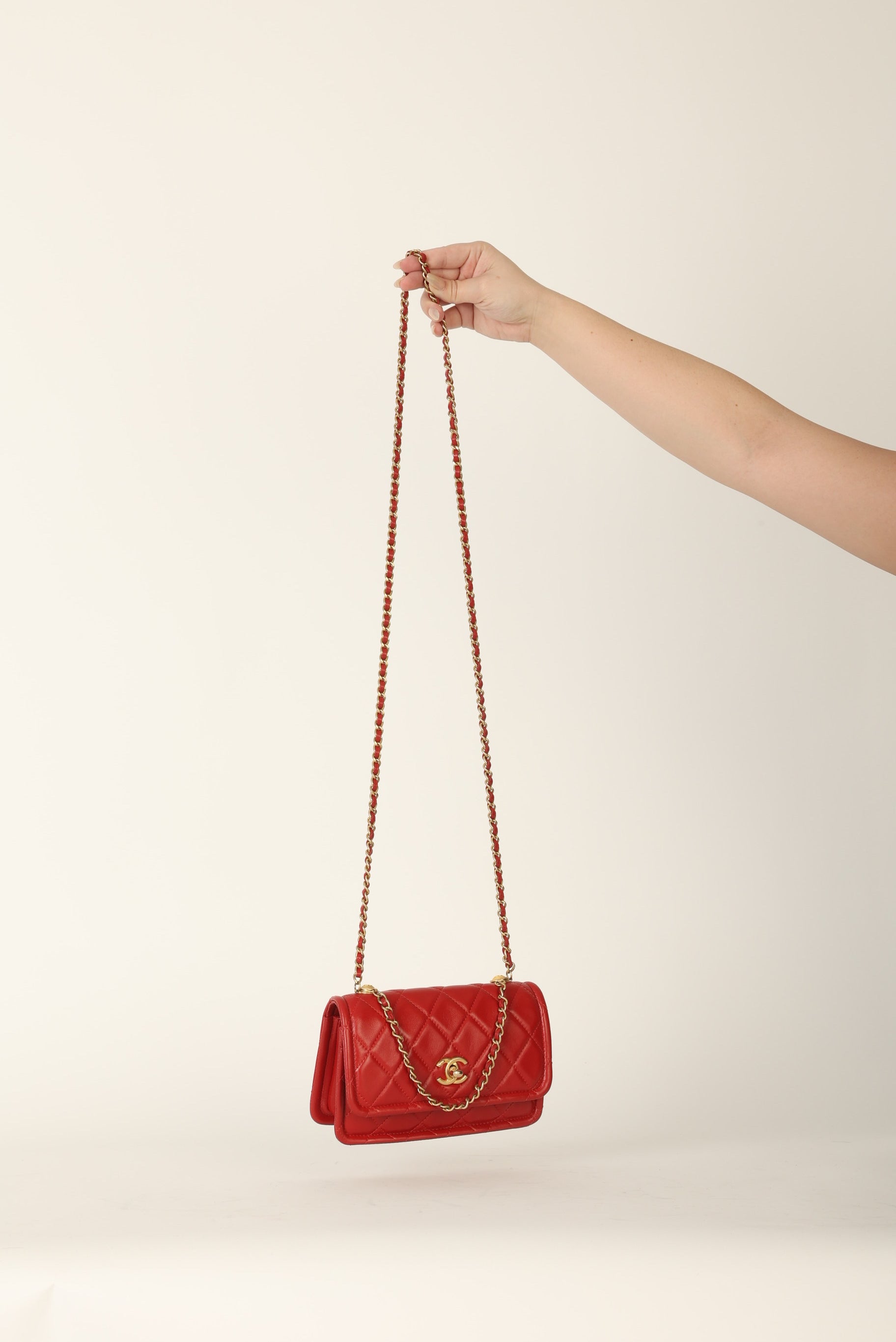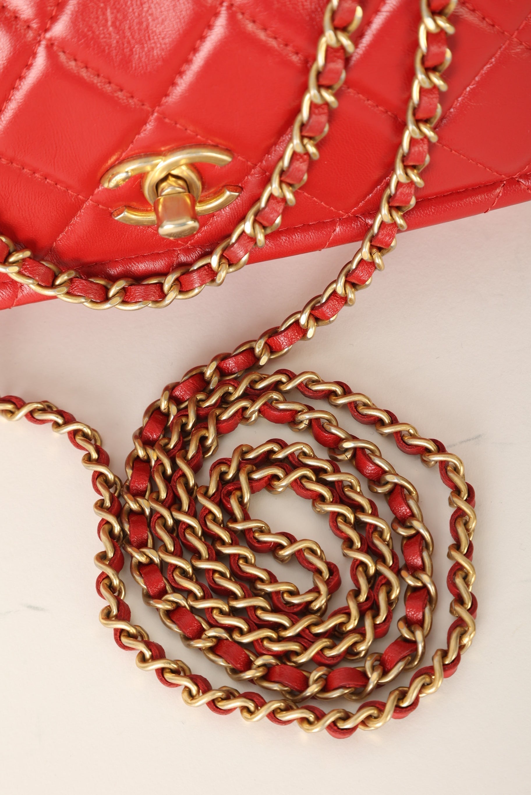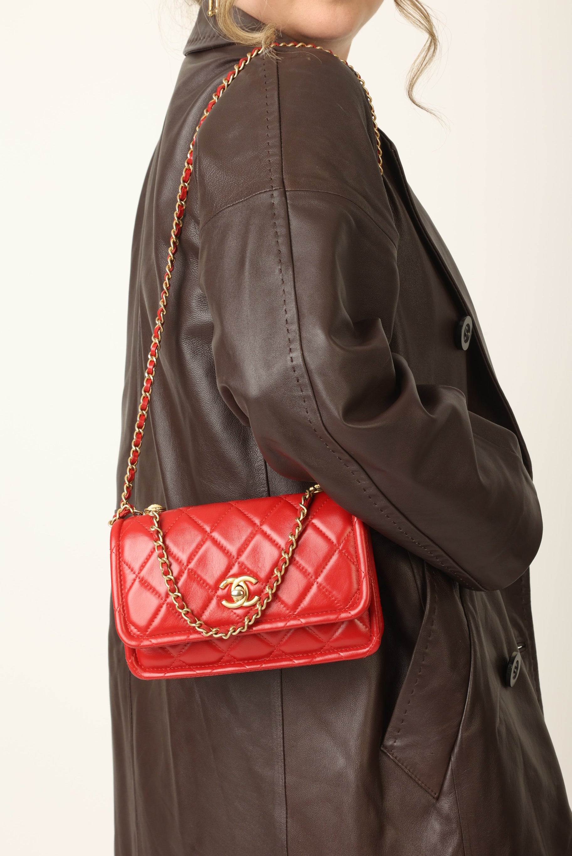 Dropping in the shop is a stunning Chanel Calfskin Chain Flap in cherry red with antique gold hardware. This bag gives vintage vibes without actually being vintage! The gorgeous red is such a stand out color and the details of the bag such as the chain top handle and two CC grommets on the top tie the whole bag together. You can wear this piece as a crossbody, top handle, or play around with the straps to turn it into a short shoulder bag. You can fit your phone, small wallet (or utilize the built-in card holders!), keys, and a few other smaller essentials.?