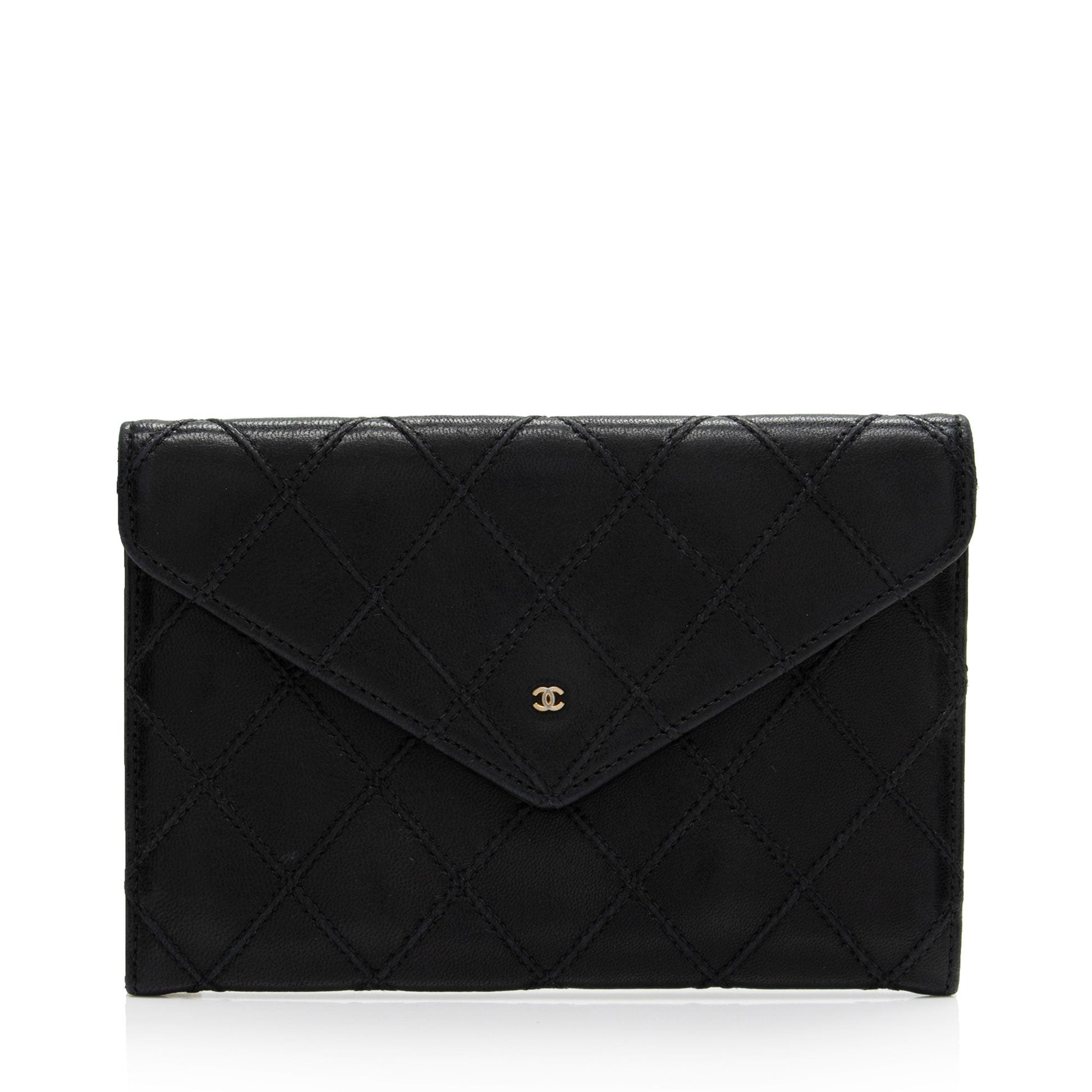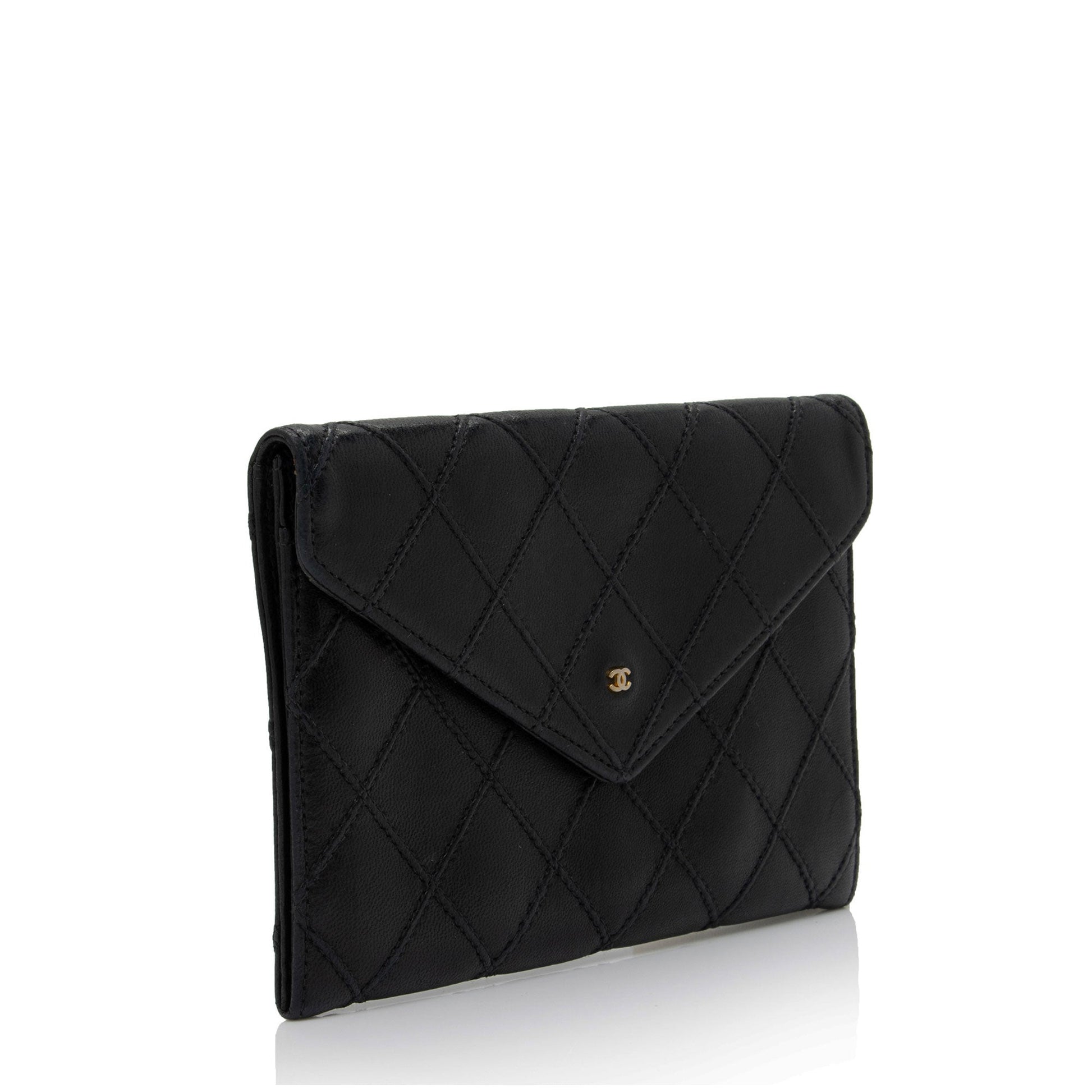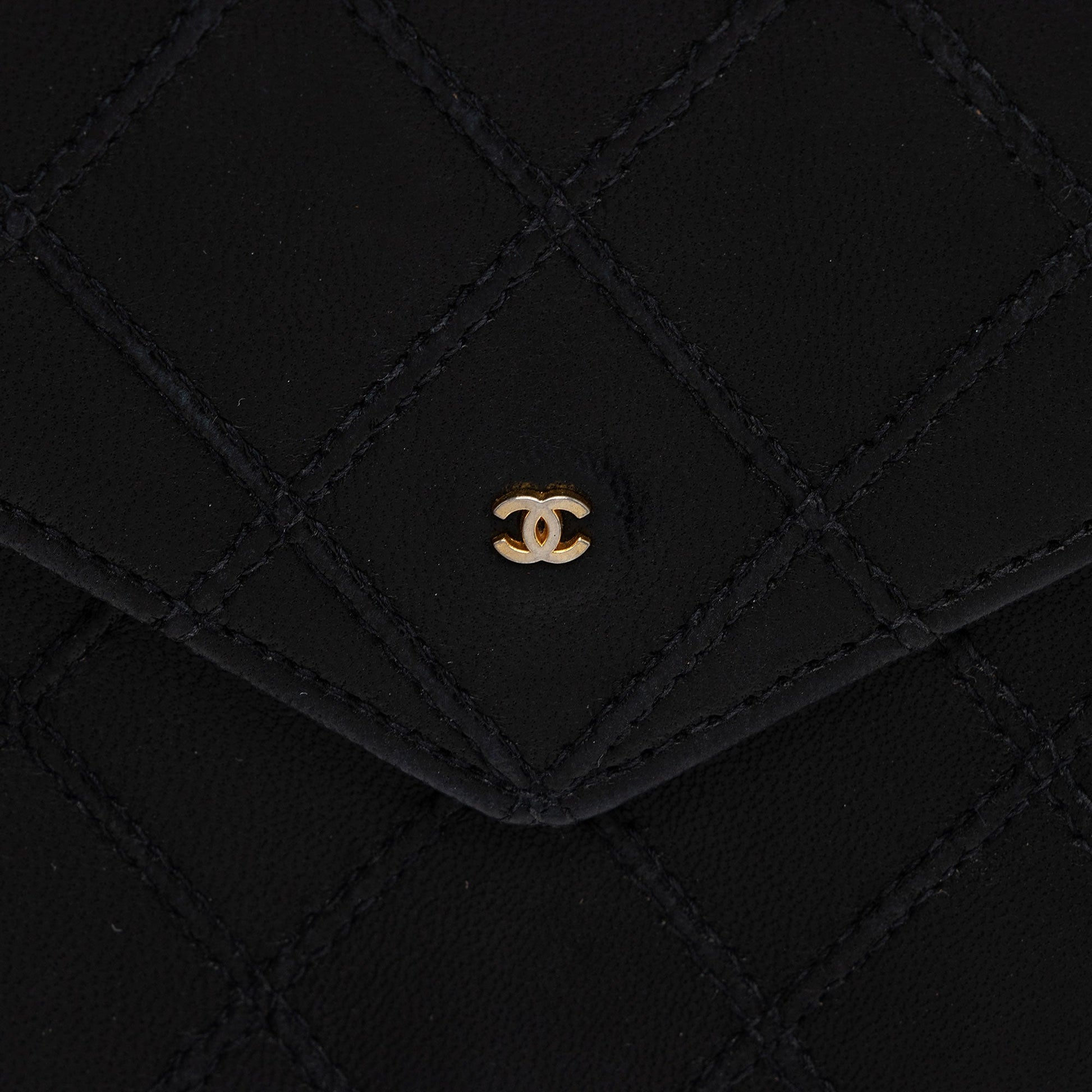 Chanel Calfskin Diamond Wild Stitch Envelope Wallet (SHF-pNxSvK)