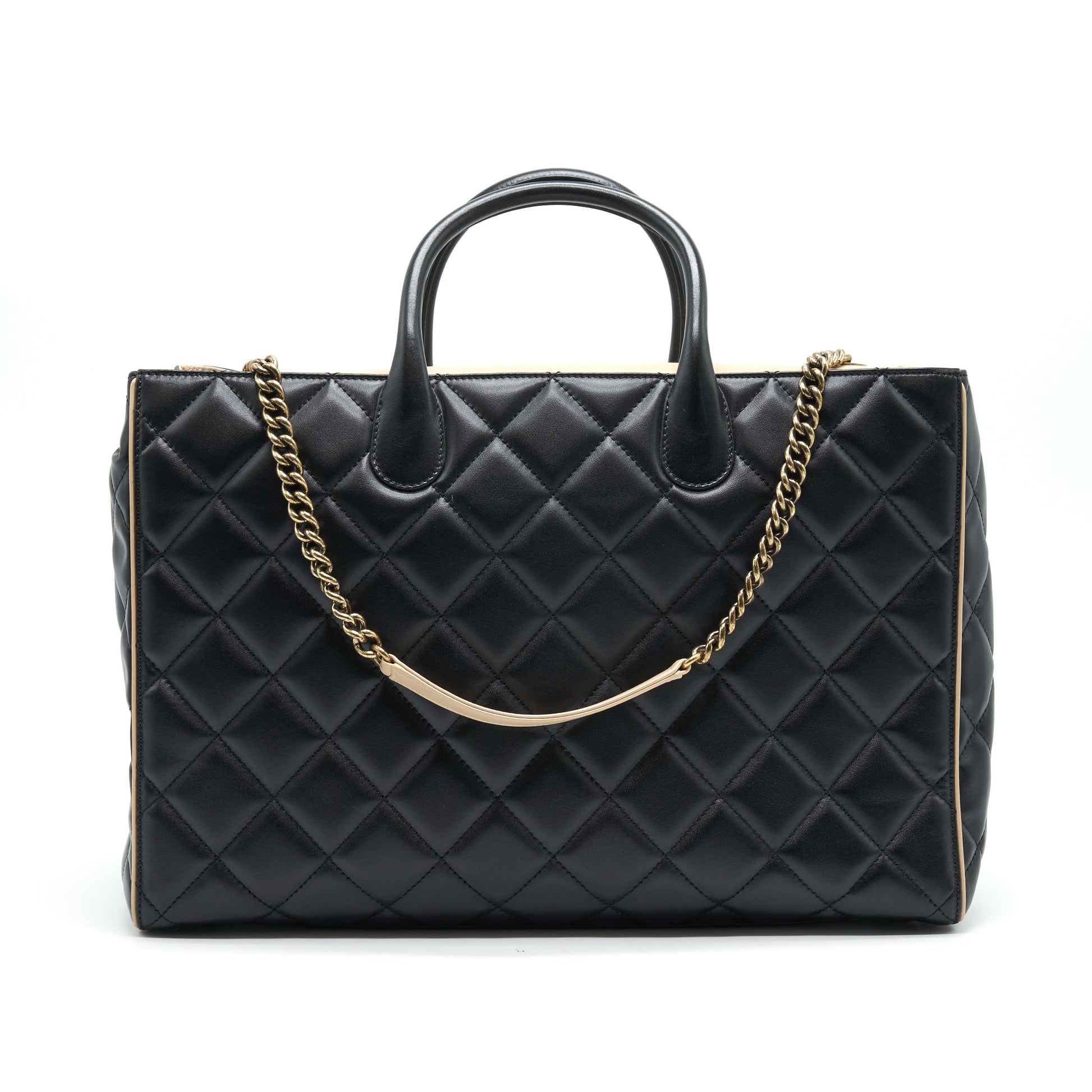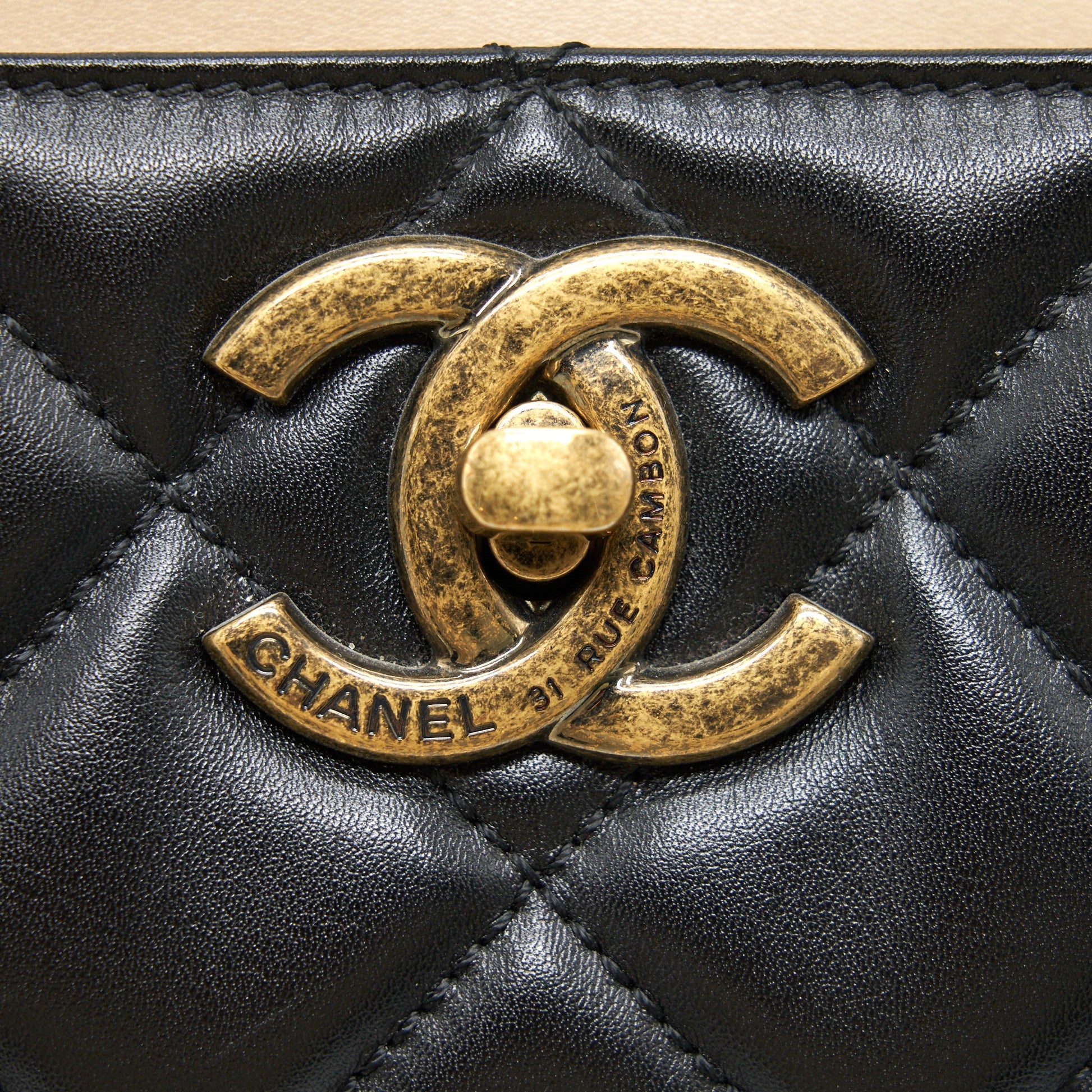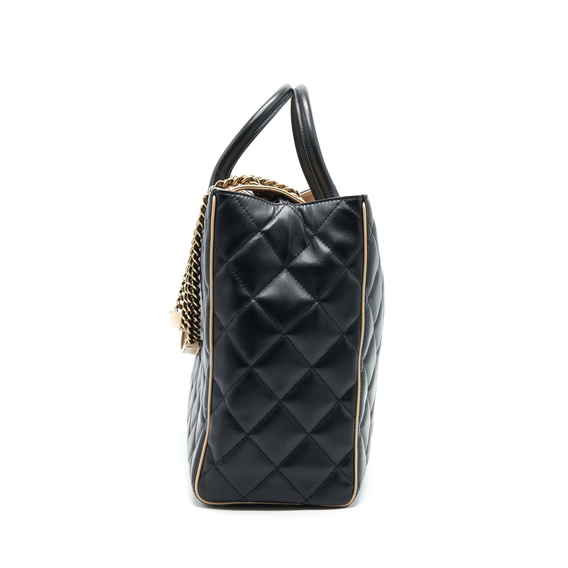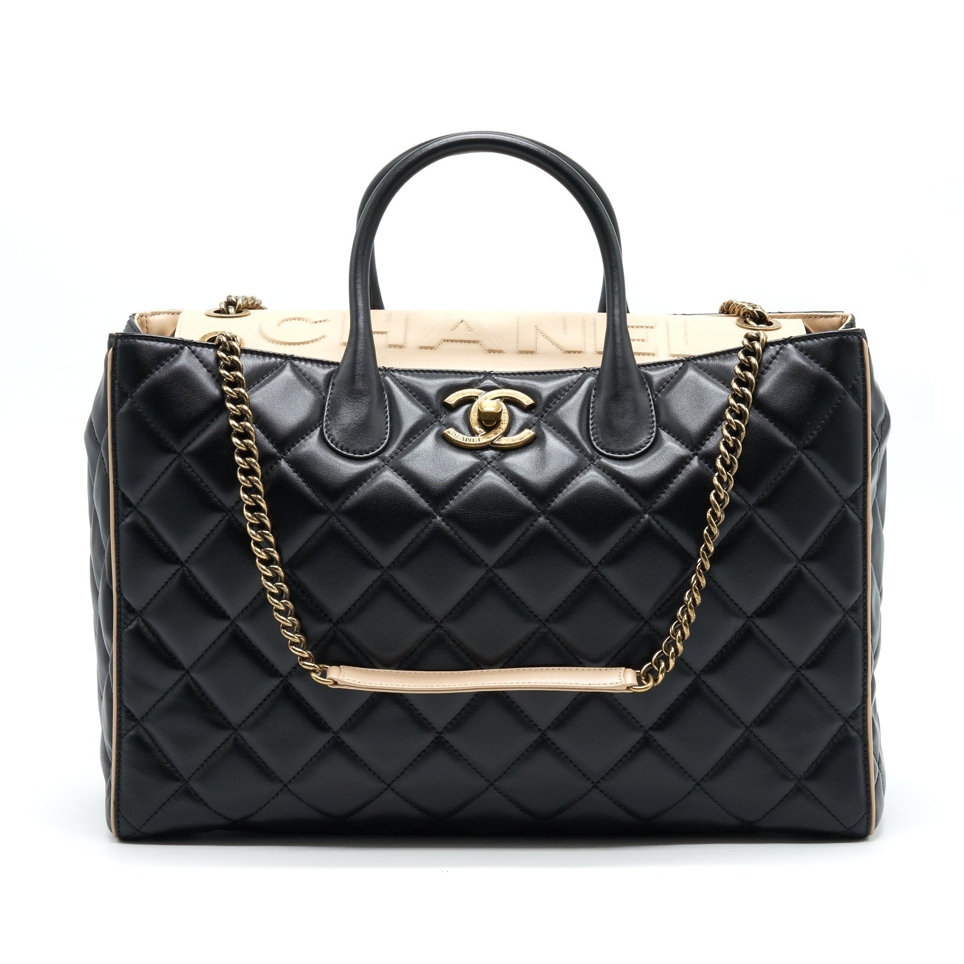 Chanel Calfskin Leather Shopping Bag Black/Beige