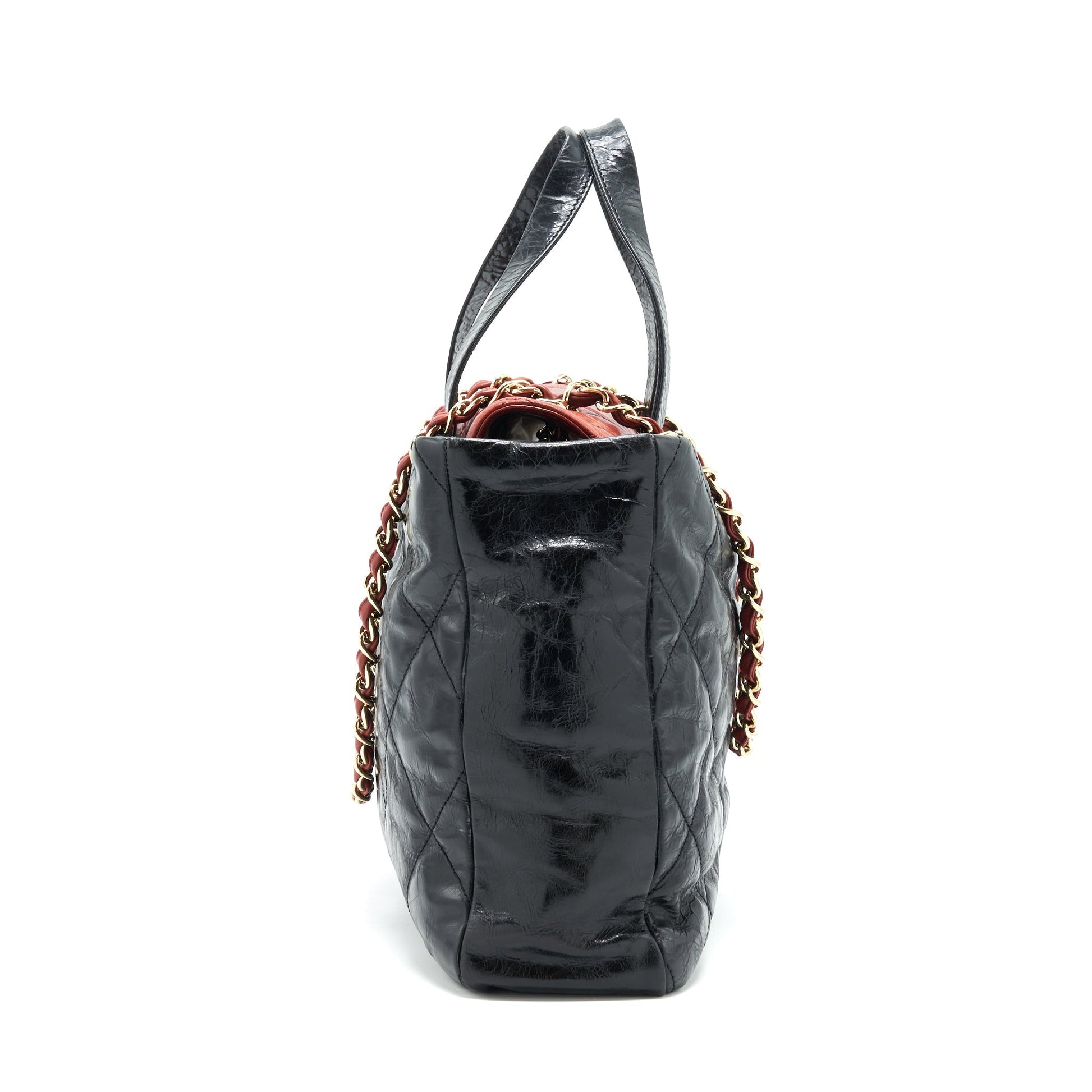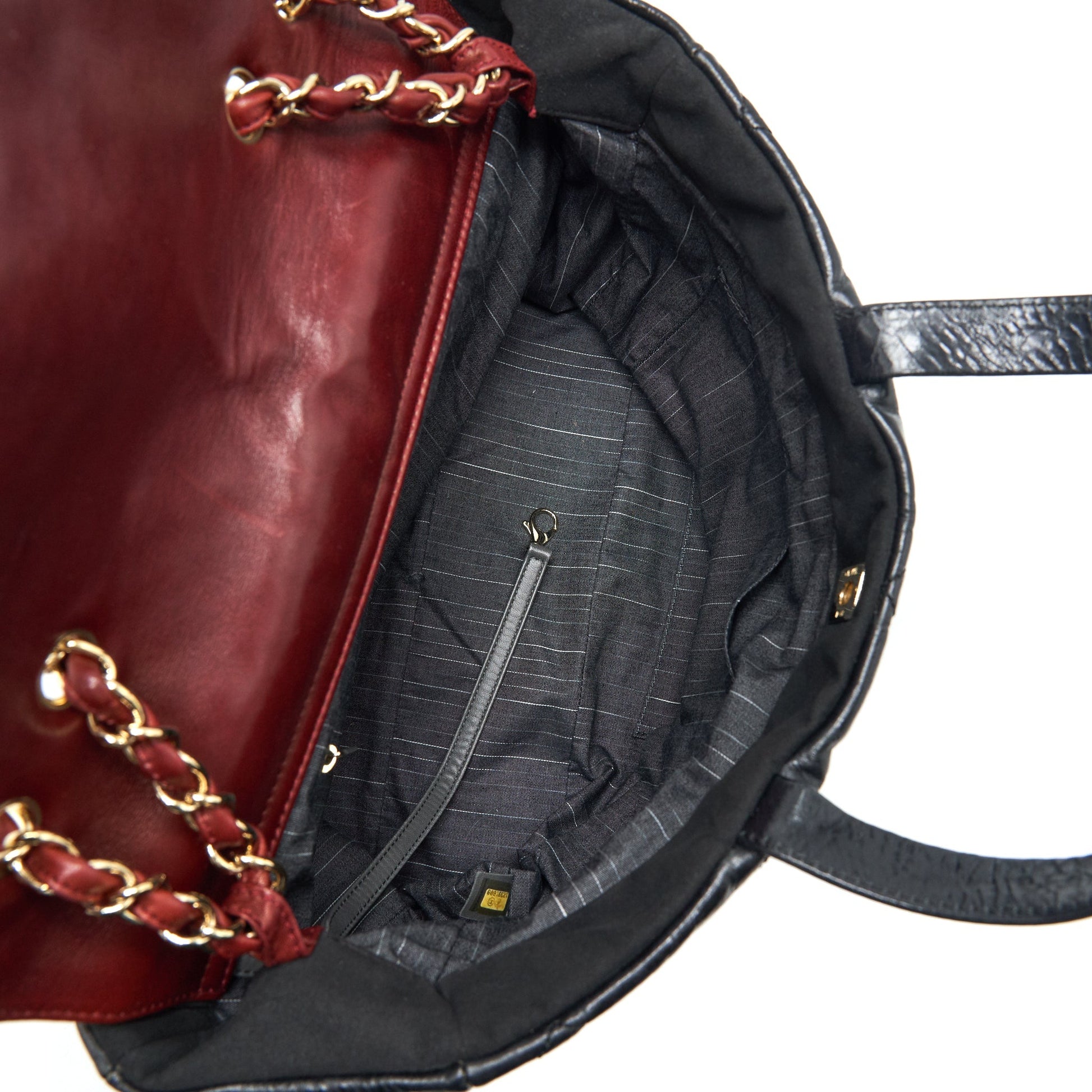 Chanel Calfskin Tote bag with Chain black and Red GHW