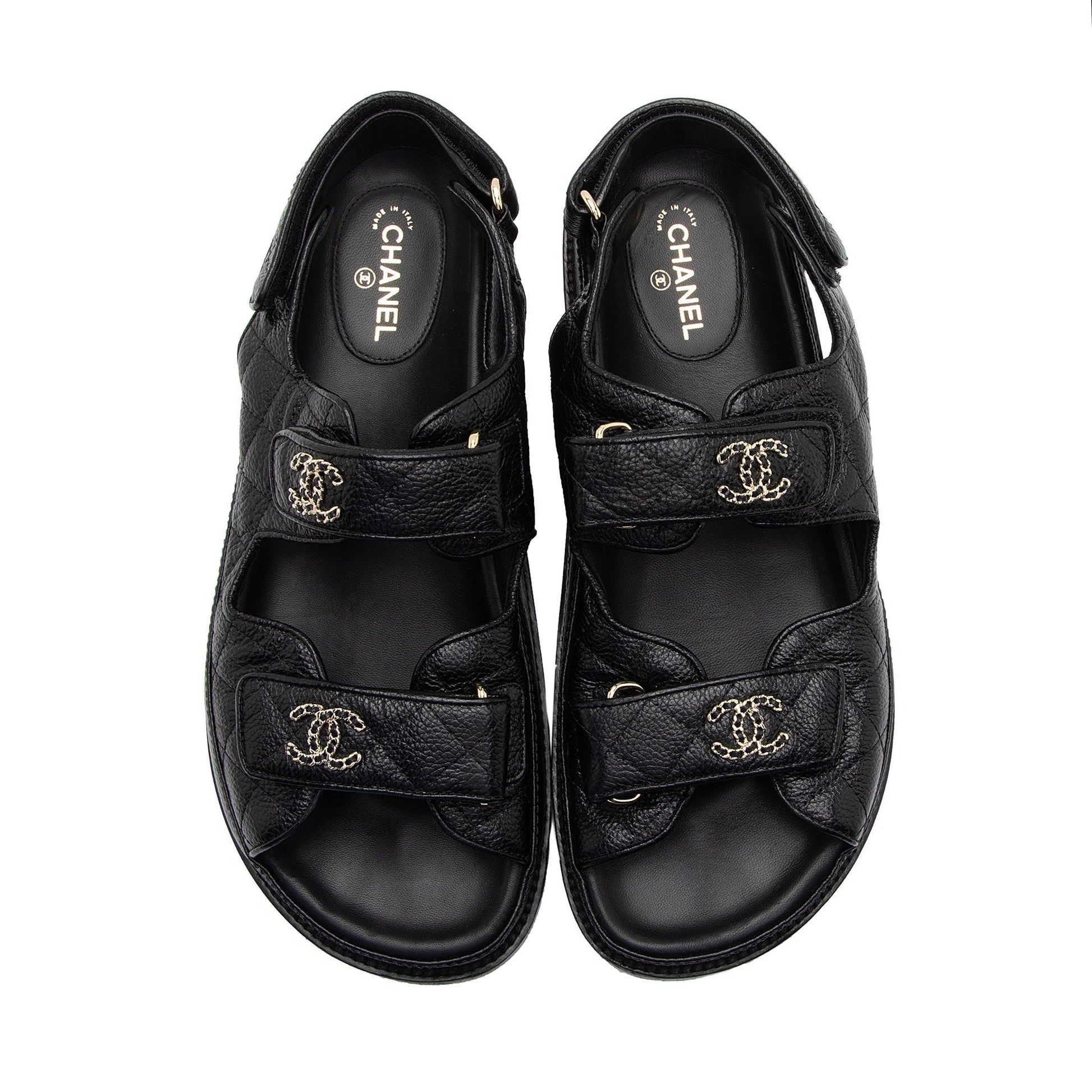 Chanel Calfskin Velcro Dad CC Sandals - Size 10 / 40 (SHF-DL6pXa)